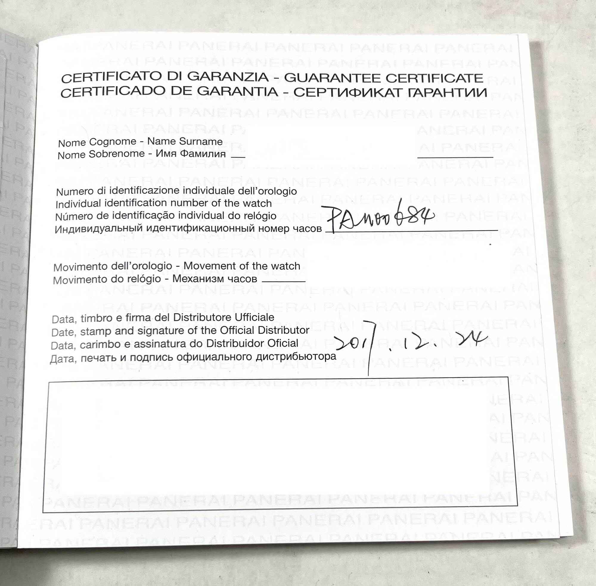 THIS PANERAI IS IN EXCELLENT CONDITION AND COMES WITH ITS BOX, BOOKLETS, PANERAI TOOLS, BEZEL PROTECTOR, AND WARRANTY BOOKLET DATED DECEMBER 24TH, 2017 AS SHOWN IN THE PICTURES ATTACHED. THIS WATCH FEATURES A 42MM 18K ROSE GOLD CASE WITH A BLACK CERAMIC BEZ...