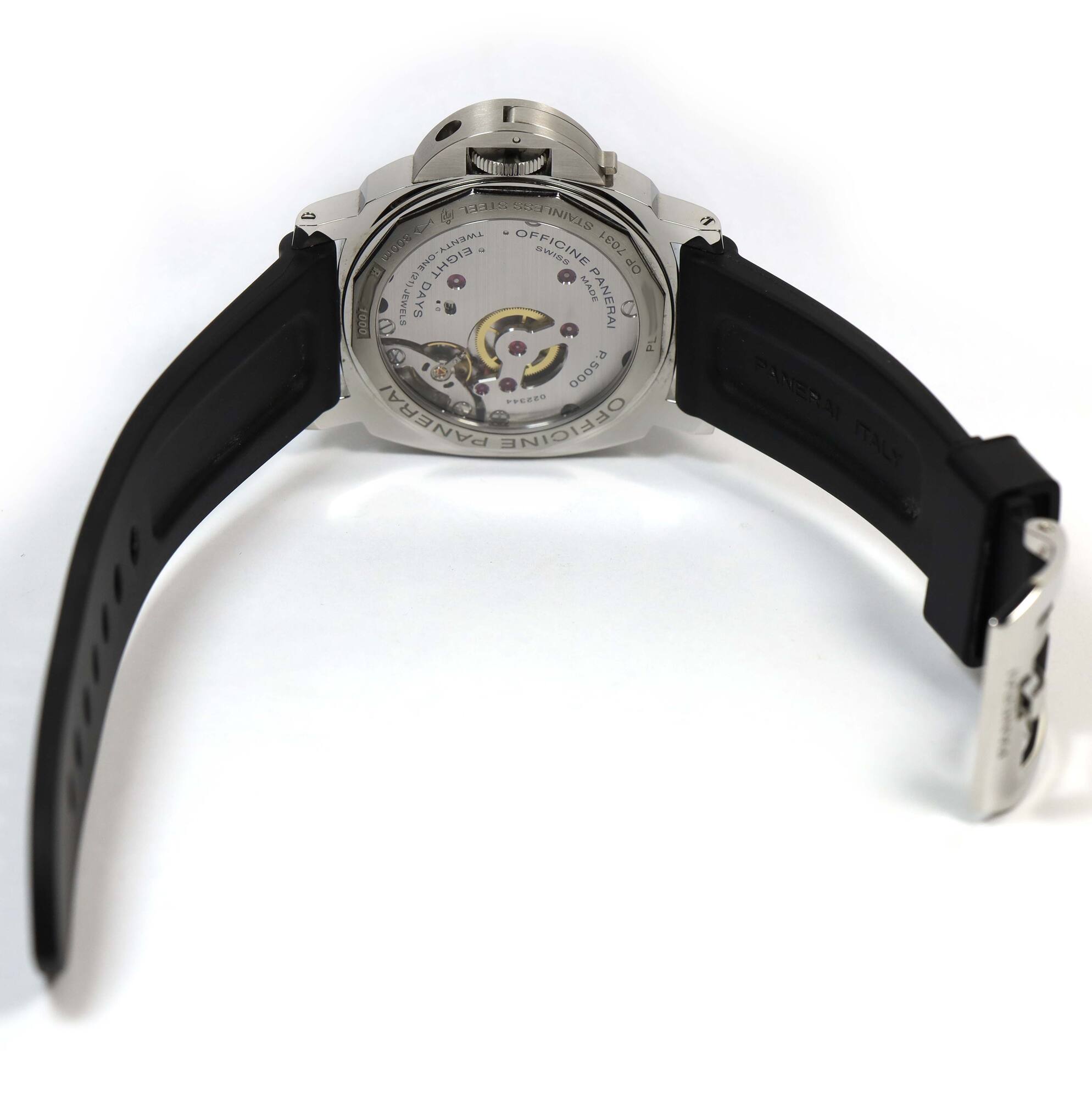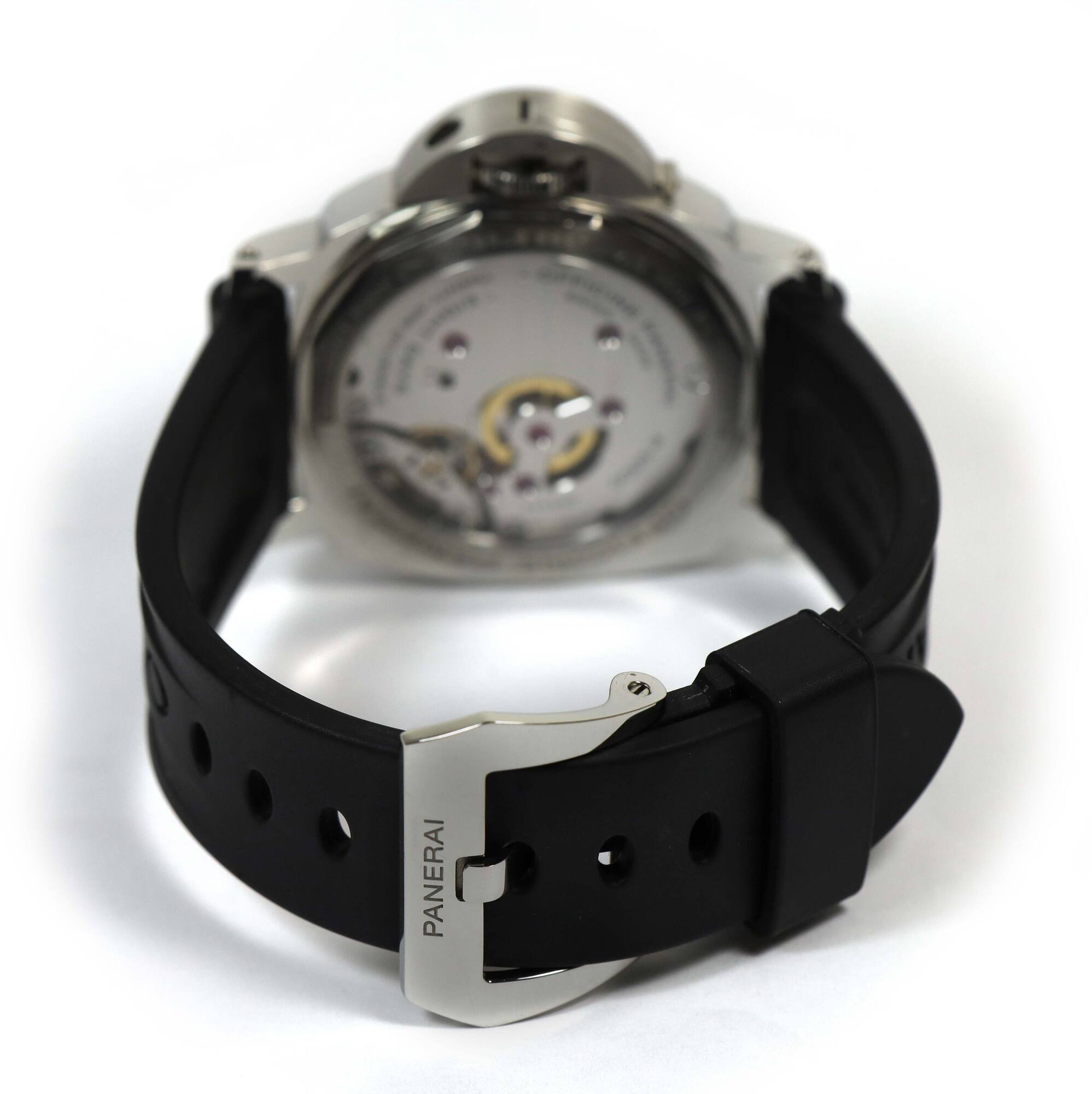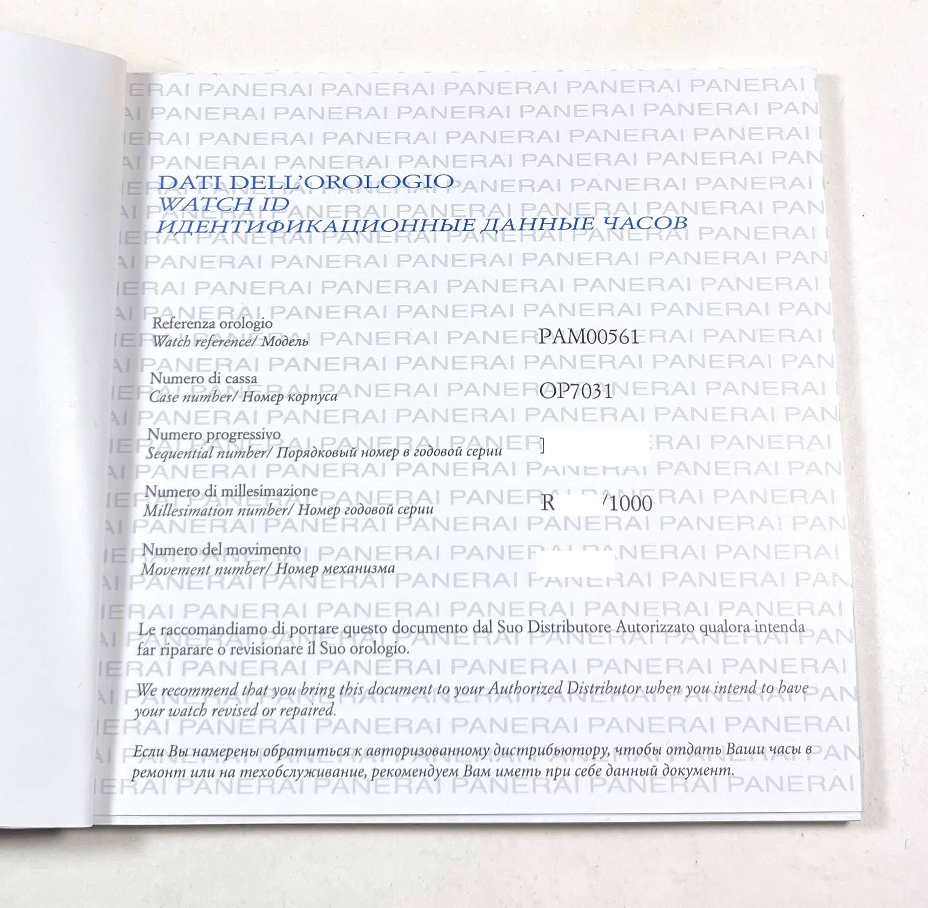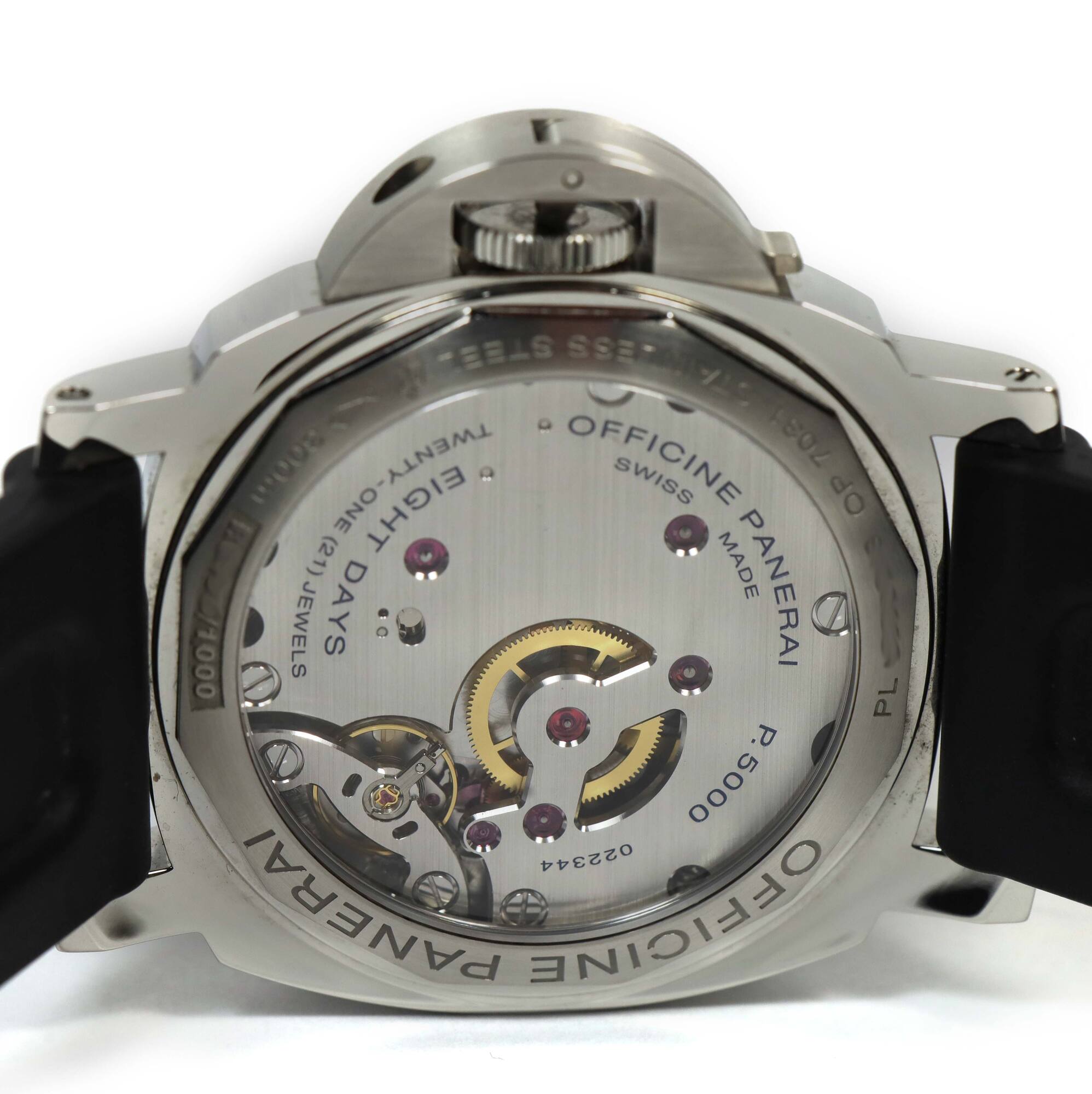 THIS PANERAI IS IN EXCELLENT OVERALL CONDITION SHOWING SOME NORMAL SIGNS OF WEAR ON THE CASE CONSISTENT WITH PREOWNED WATCHES. THIS COMES WITH ITS BOX, BOOKLETS, HANG TAG, PANERAI TOOL, ONE ADDITIONAL BLACK LEATHER STRAP, AND WARRANTY BOOKLET AS SHOWN IN T...