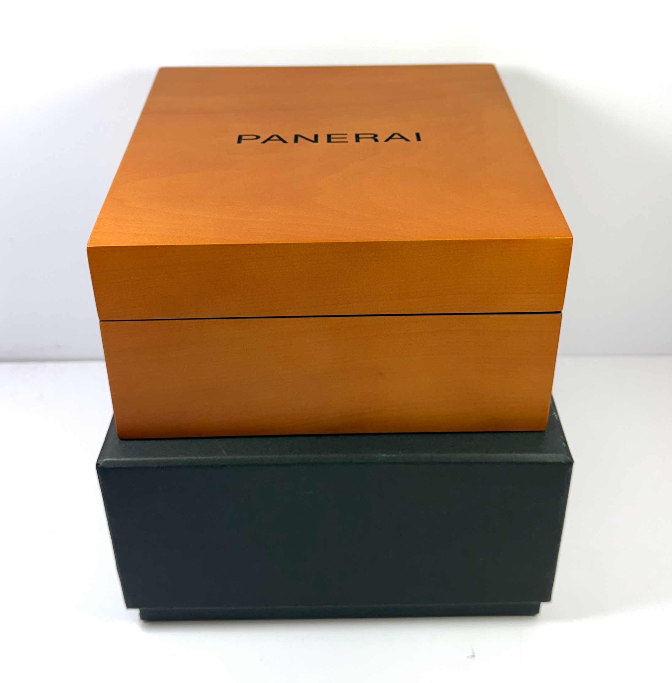THIS PANERAI IS IN EXCELLENT OVERALL CONDITION SHOWING SOME LIGHT SIGNS OF WEAR ON THE CASE CONSISTENT WITH PREOWNED WATCHES. THIS COMES WITH ITS BOX, BOOKLETS, PANERAI TOOL, TWO ADDITIONAL PANERAI STRAPS, AND WARRANTY CARD/PAPER AS SHOWN IN THE PICTURES AT...