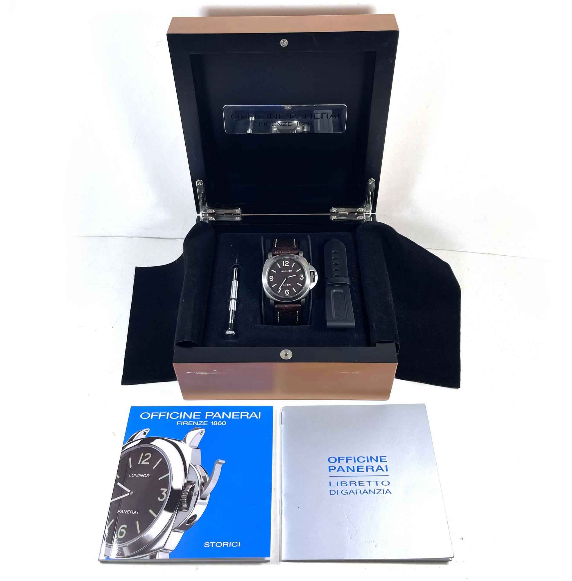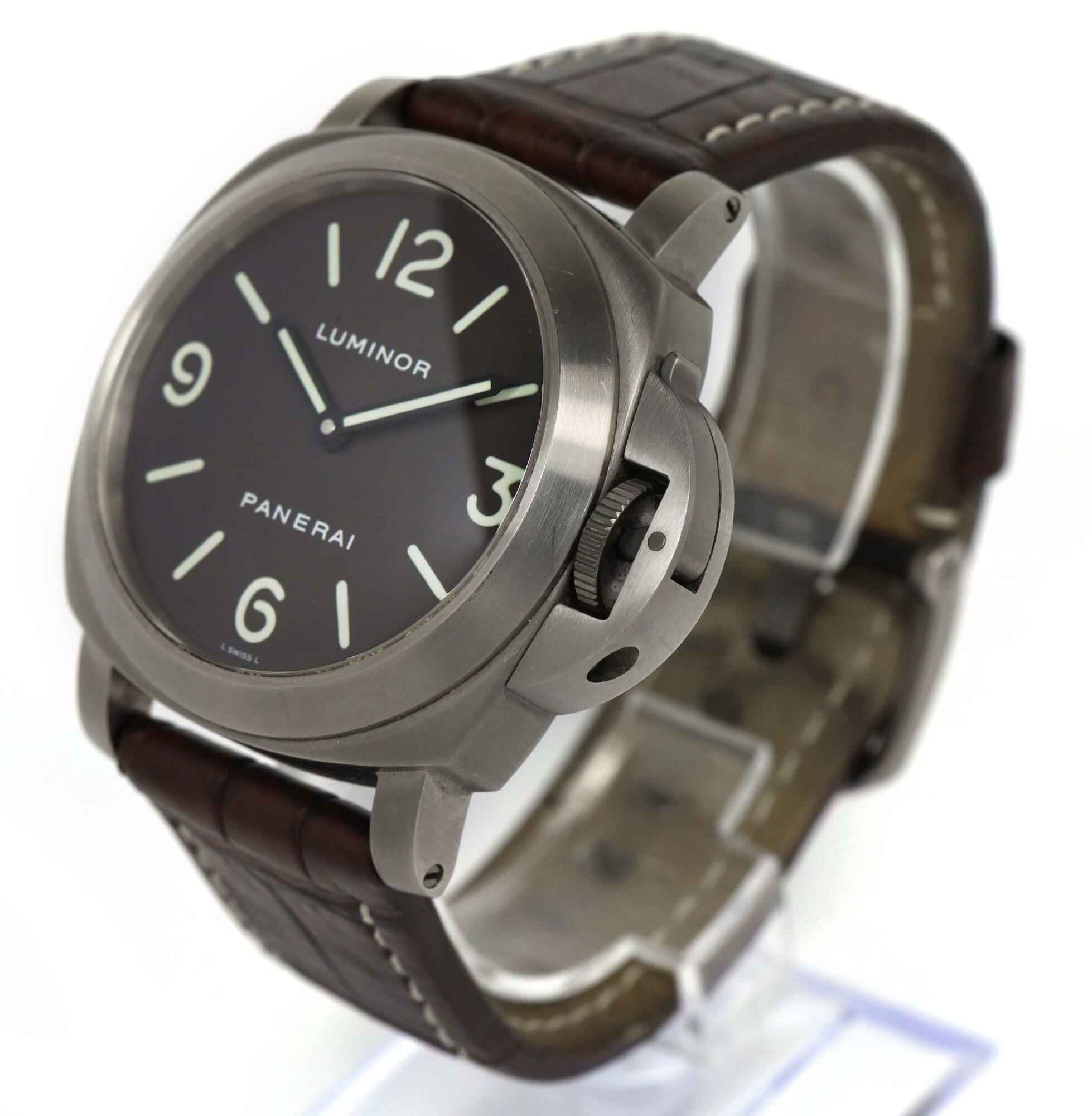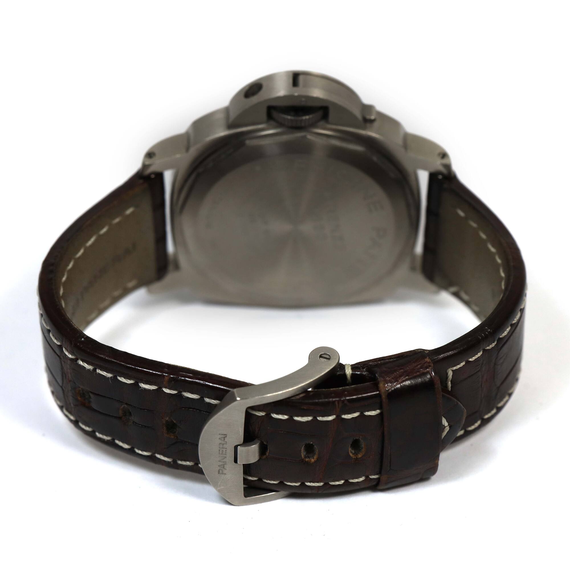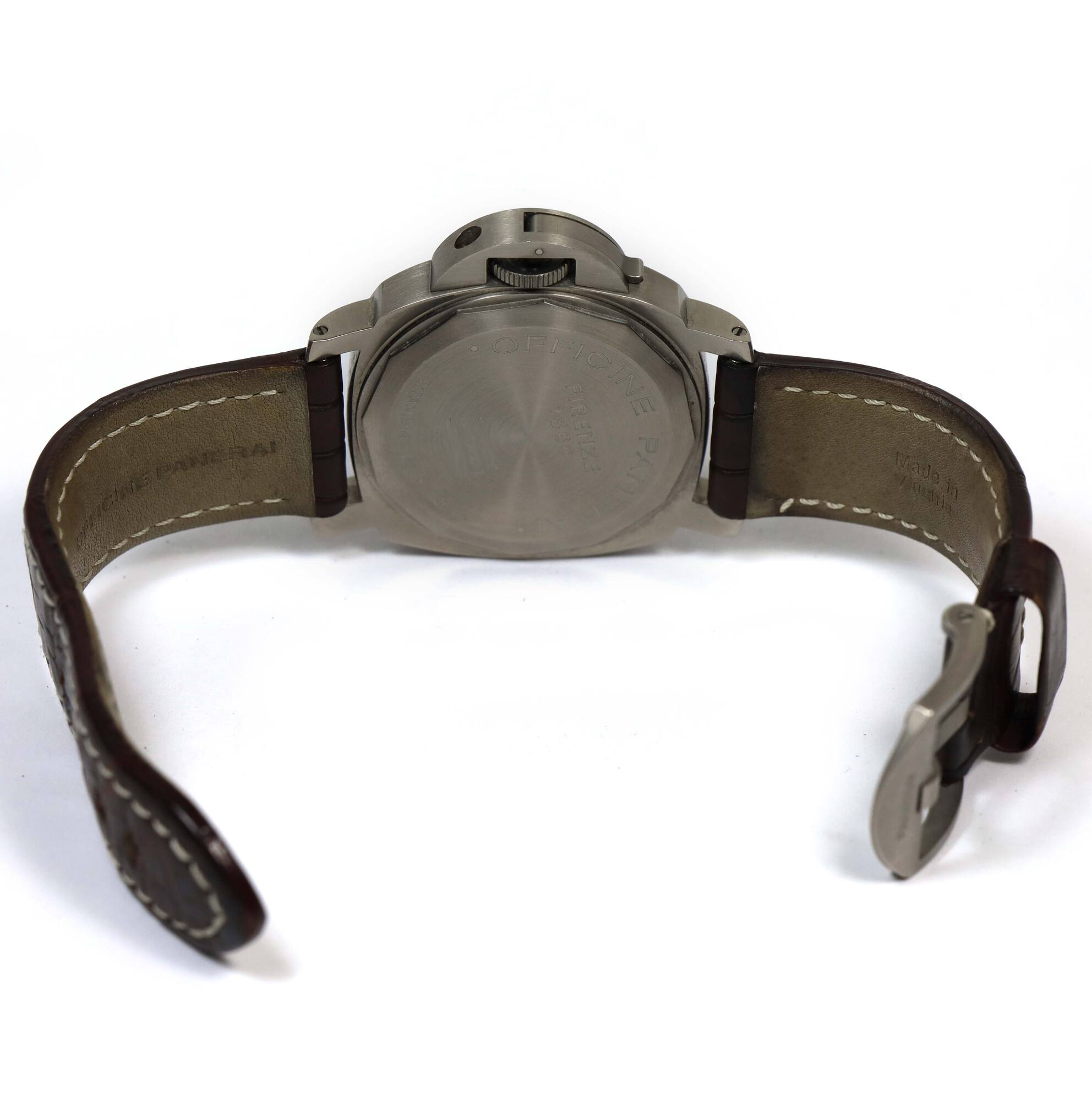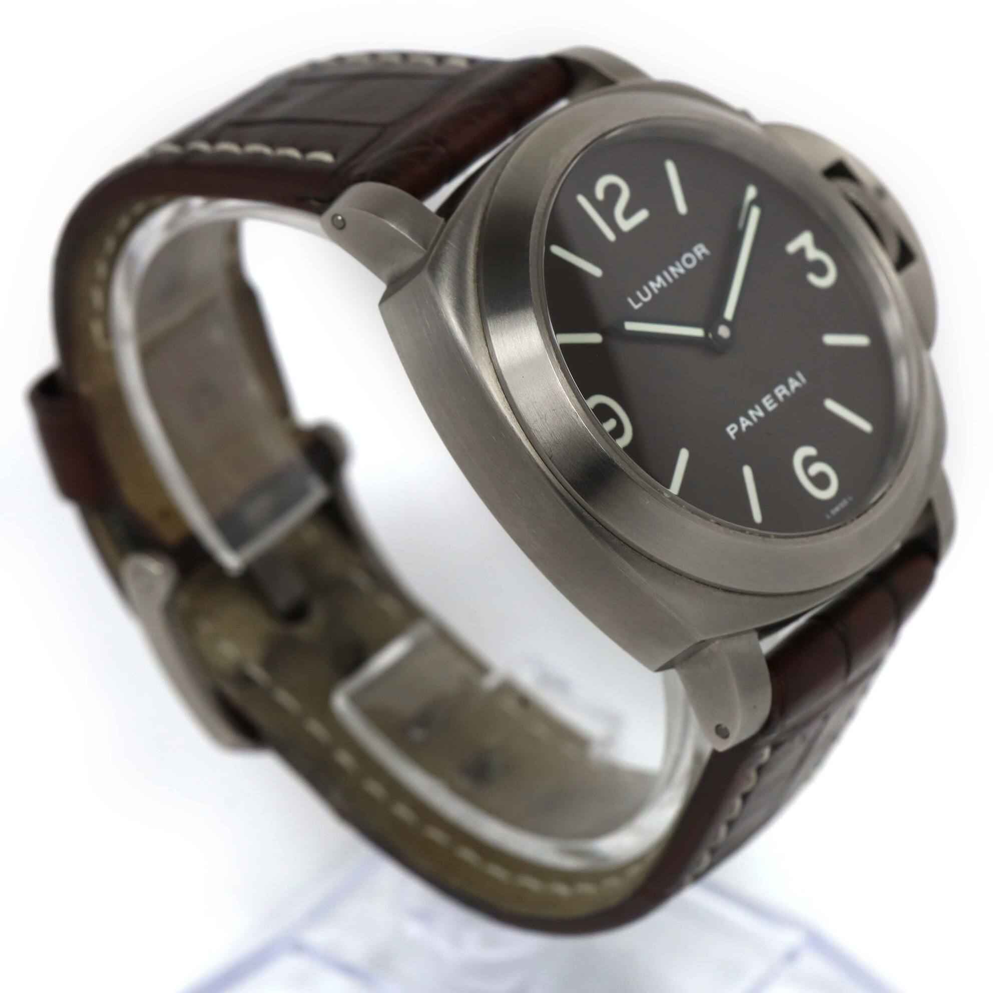 THIS PANERAI IS IN GREAT OVERALL CONDITION AND COMES WITH ITS BOX, BOOKLETS, PANERAI TOOL, AND ONE ADDITIONAL BLACK RUBBER STRAP AS SHOWN IN THE PICTURES ATTACHED. THIS WATCH FEATURES A 44MM TITANIUM CASE THAT SURROUNDS A BROWN DIAL AND COMES ON A BROWN LEA...