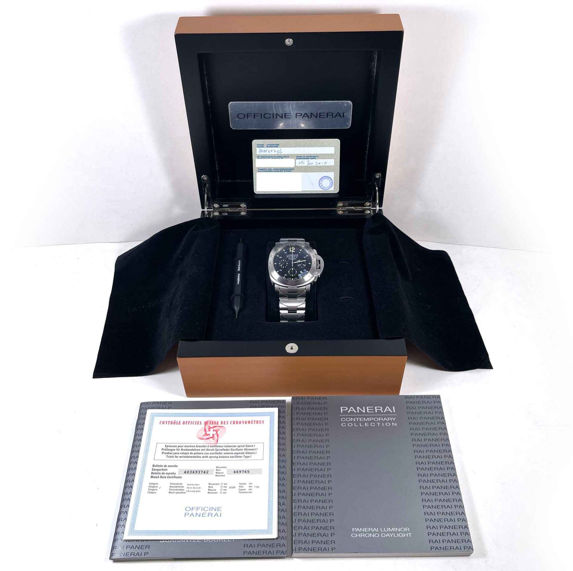 this panerai is in excellent condition and comes with its box, papers, panerai tool, and warranty card dated january 5th, 2010. This watch is in stock and available to ship immediately!