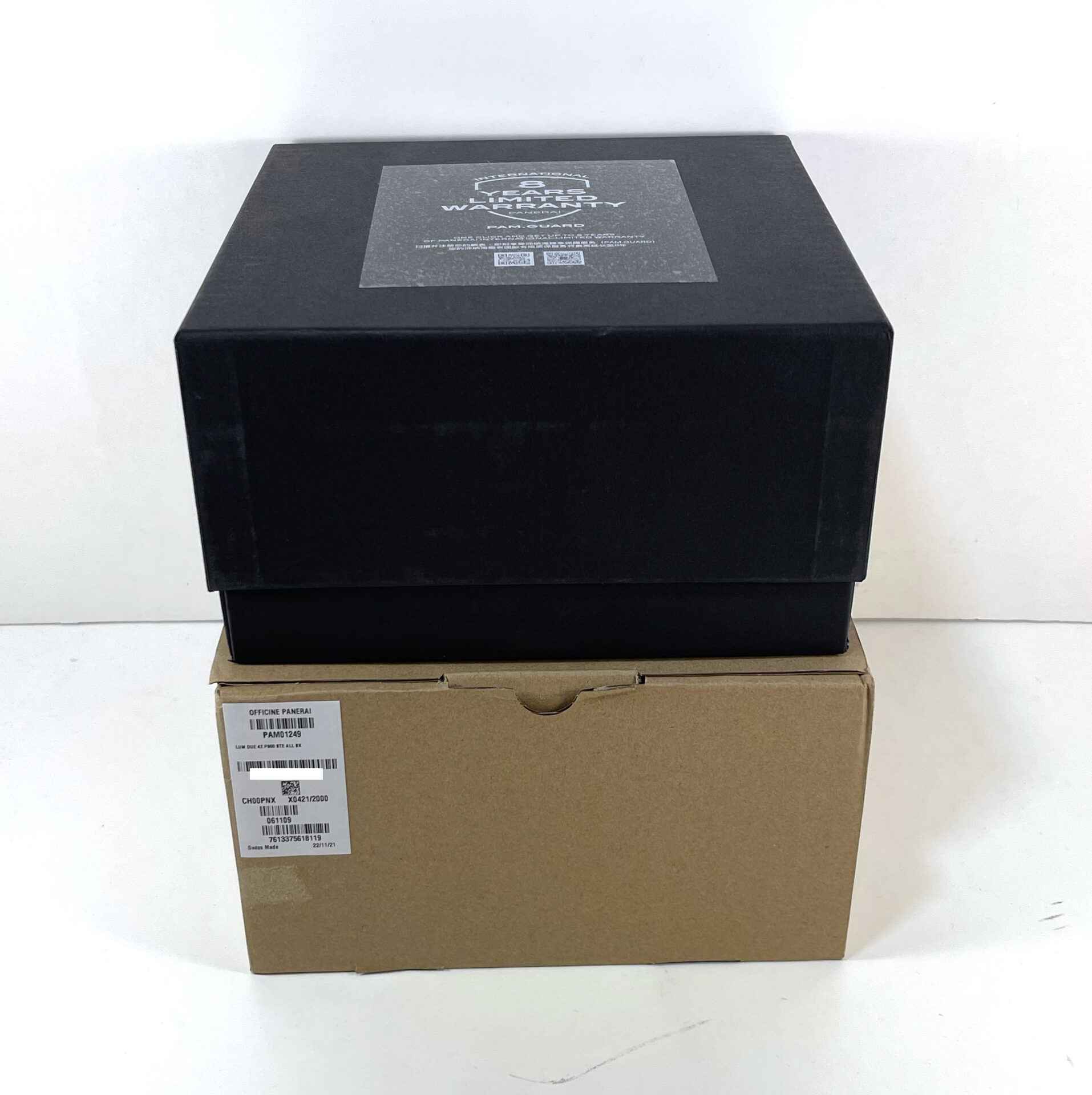 Read Morethis panerai is new and has stickers still on the caseback as shown in the photos attached. This watch comes with box, papers, bezel protector, and warranty card dated january 18th, 2022. This watch is in stock and available to ship immediately!
