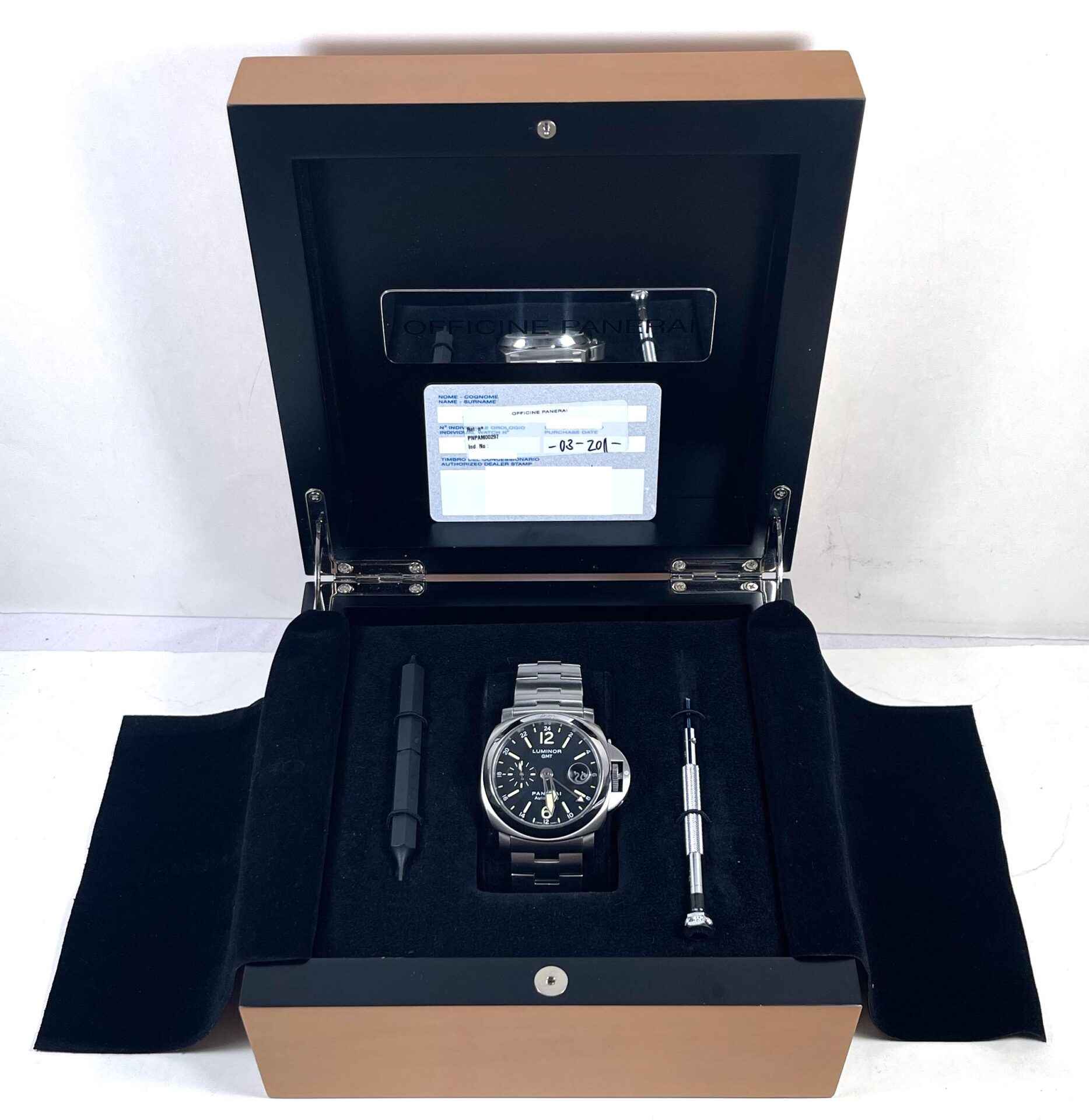 Read Morethis panerai is in excellent condition and comes with its box, panerai tools, and warranty card dated march, 2011. This watch does not include the booklets as this is how it was sold to us. This panerai is missing links and will fit approximately a 7″ wrist as is. This watch is in stock and available to ship immediately!