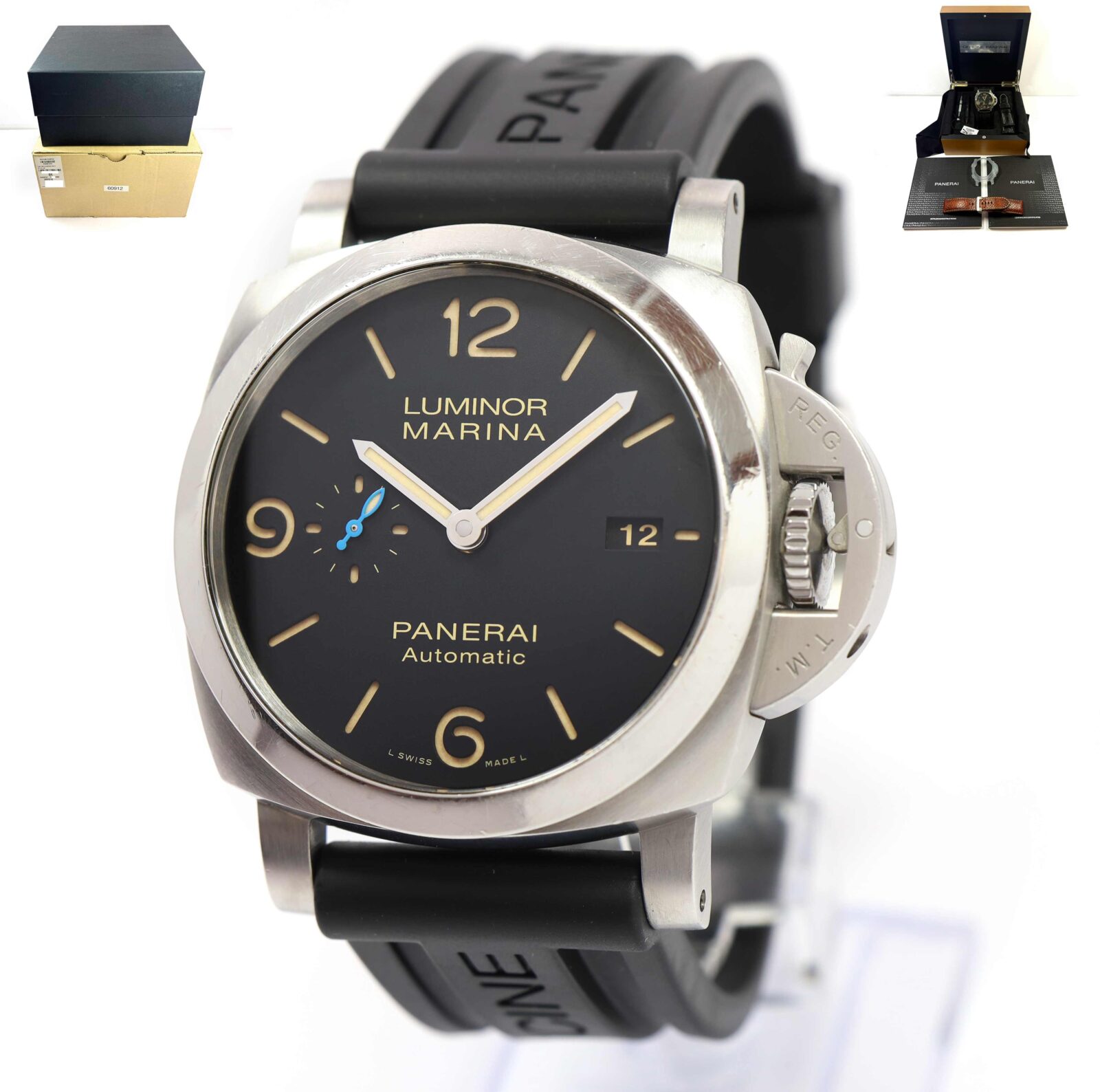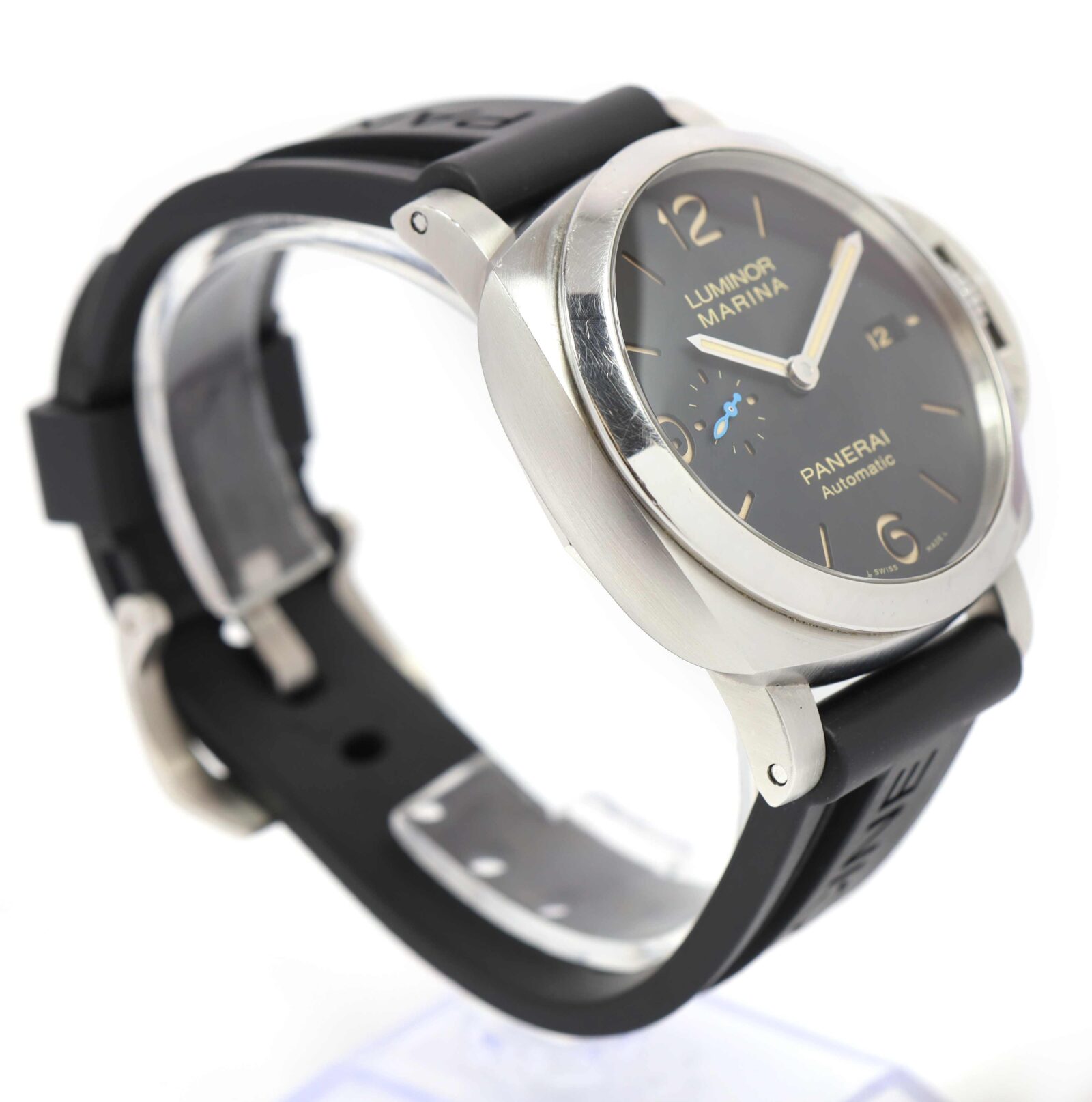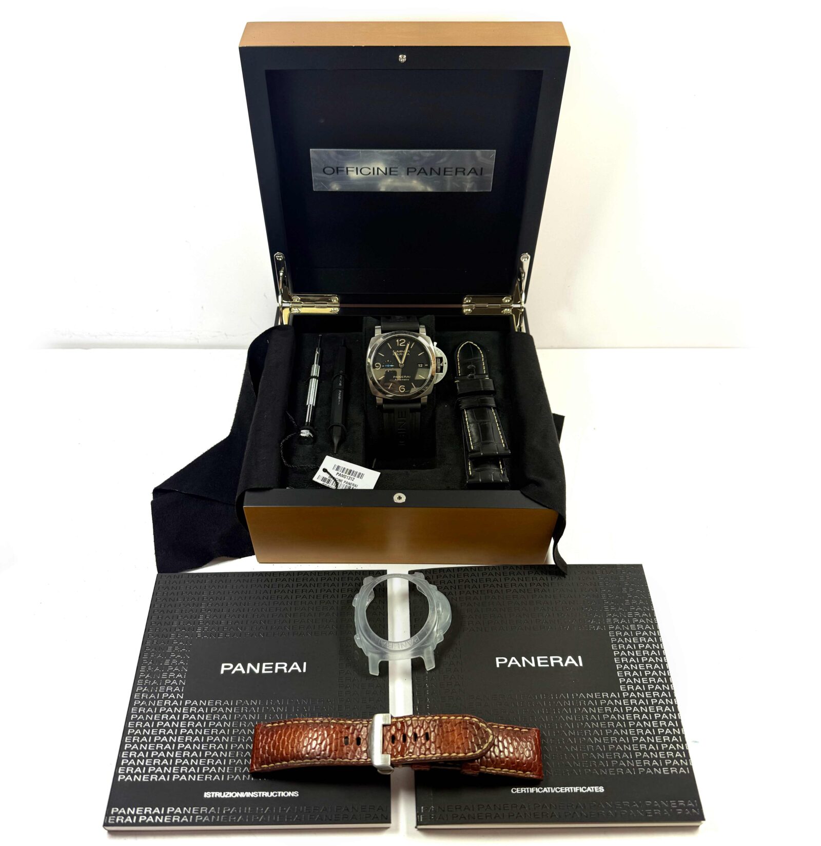 Read Morethis panerai is in good overall condition showing signs of wear on the case consistent with preowned watches. This comes with its box, booklets, bezel protector, two additional straps, panerai tools, and warranty booklet dated september 9th, 2017 as shown in the pictures attached. This watch is in stock and available to ship immediately!