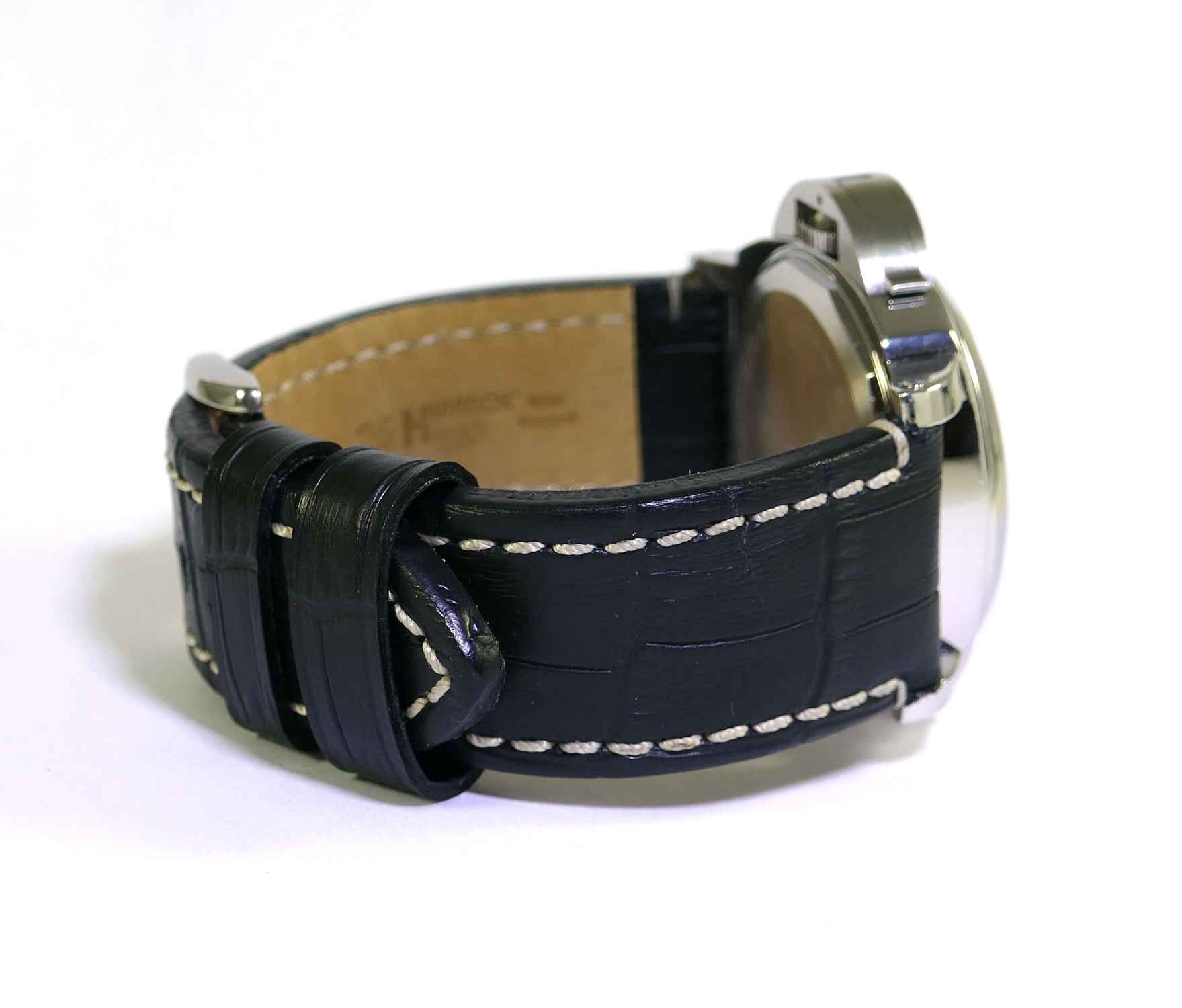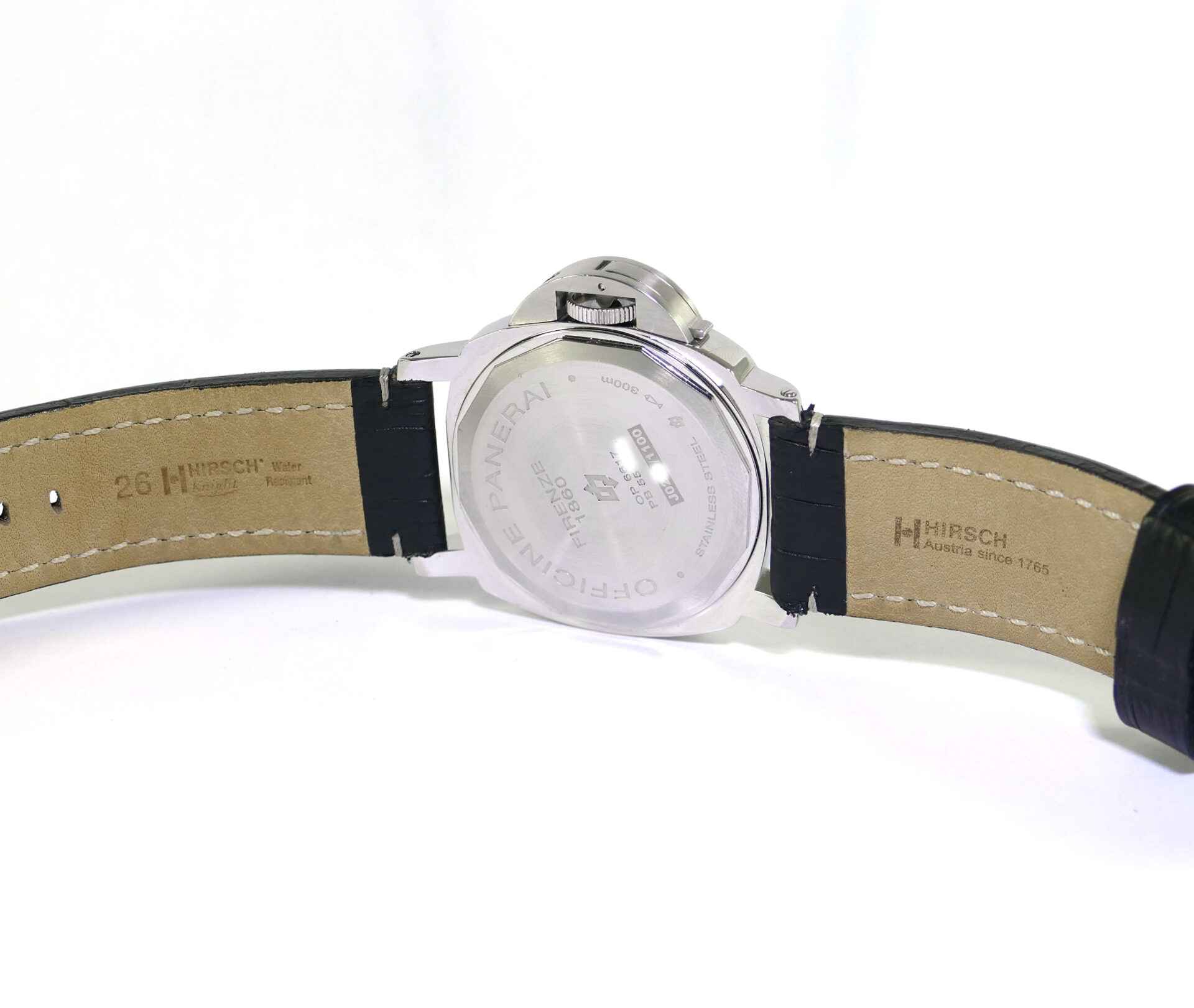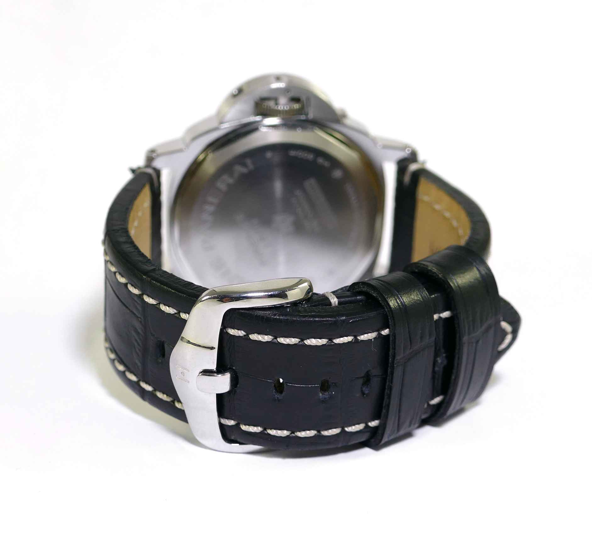 Read Morethis panerai watch is in nice overall conditioning is running accurately. The leather strap and buckle are not made by panerai, they are made by a high-quality strap manufacturer called hirsch. The strap is mint. The original box and papers are not included.