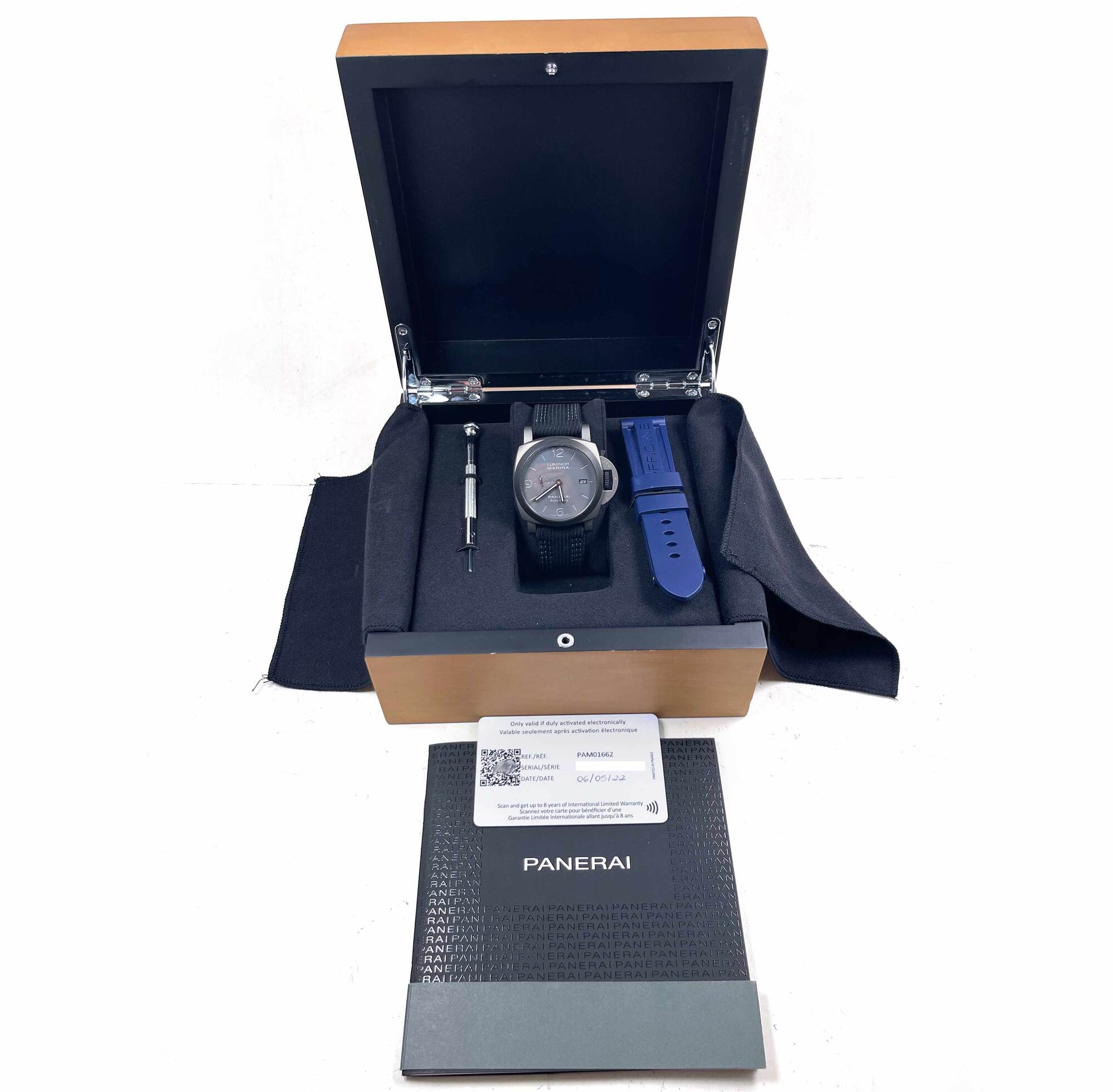 Read Morethis panerai is in great condition showing some minor signs of wear on the crystal, it has faint scratches that is difficult to see with the naked eye. This comes with its box, booklet, one additional blue panerai rubber strap, panerai tool, and warranty card dated june 5th, 2022 as shown in the pictures attached. This watch is in stock and available to ship immediately!
