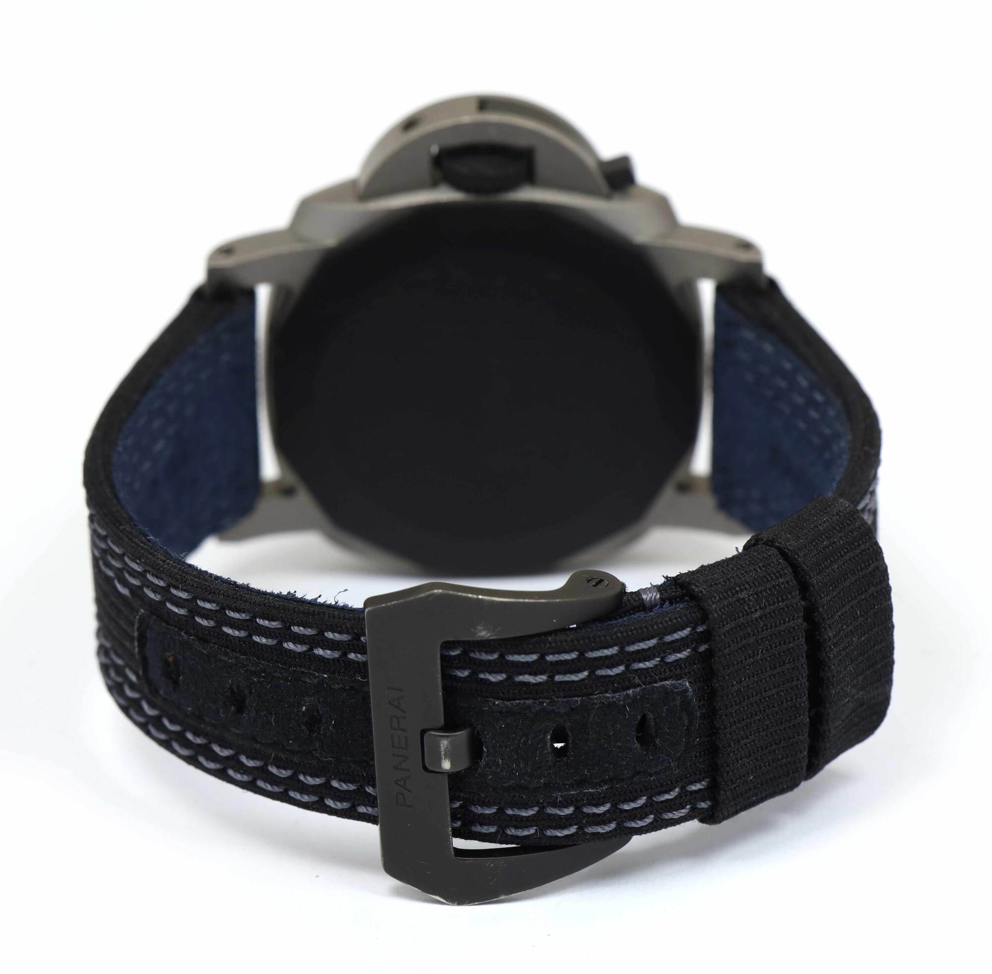 THIS PANERAI IS IN GREAT CONDITION SHOWING SOME MINOR SIGNS OF WEAR ON THE CRYSTAL, IT HAS FAINT SCRATCHES THAT IS DIFFICULT TO SEE WITH THE NAKED EYE. THIS COMES WITH ITS BOX, BOOKLET, ONE ADDITIONAL BLUE PANERAI RUBBER STRAP, PANERAI TOOL, AND WARRANTY CA...