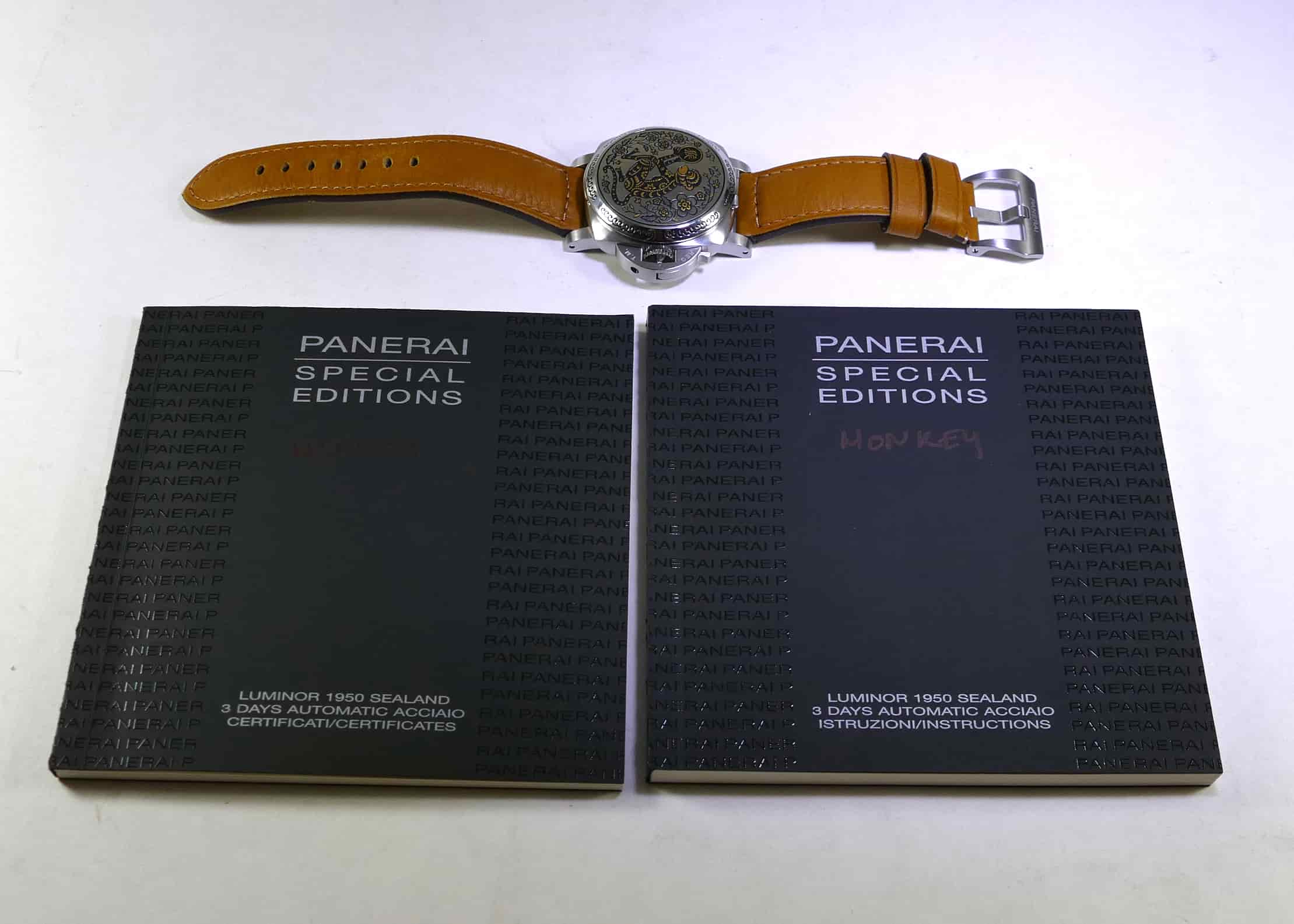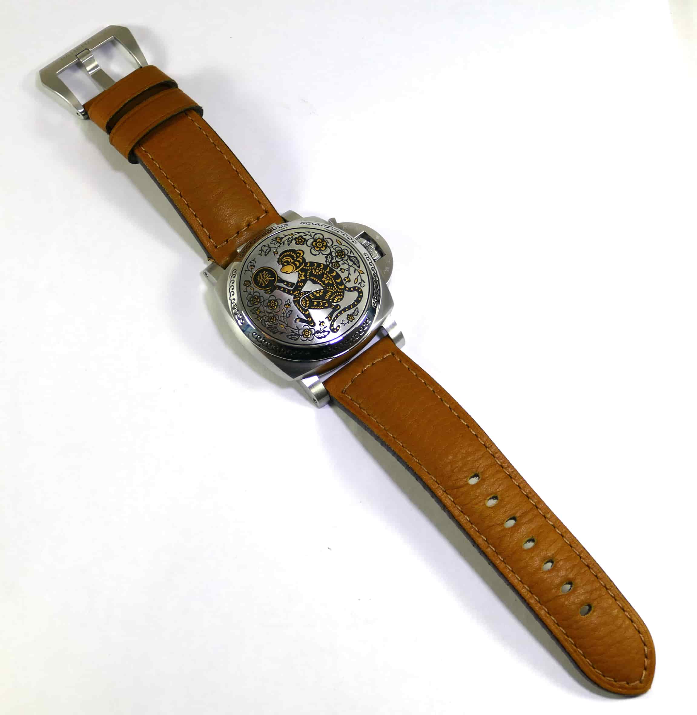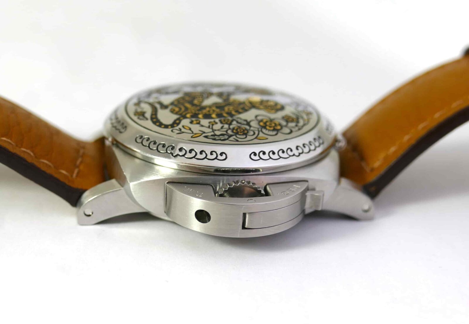 Read Morethis panerai watch is in near-mint condition, and appears hardly worn. It comes with its original paperwork, however the original box is not included. This is a truly special piece of art, and is even more stunning in person. The original msrp of this watch is $23,600.