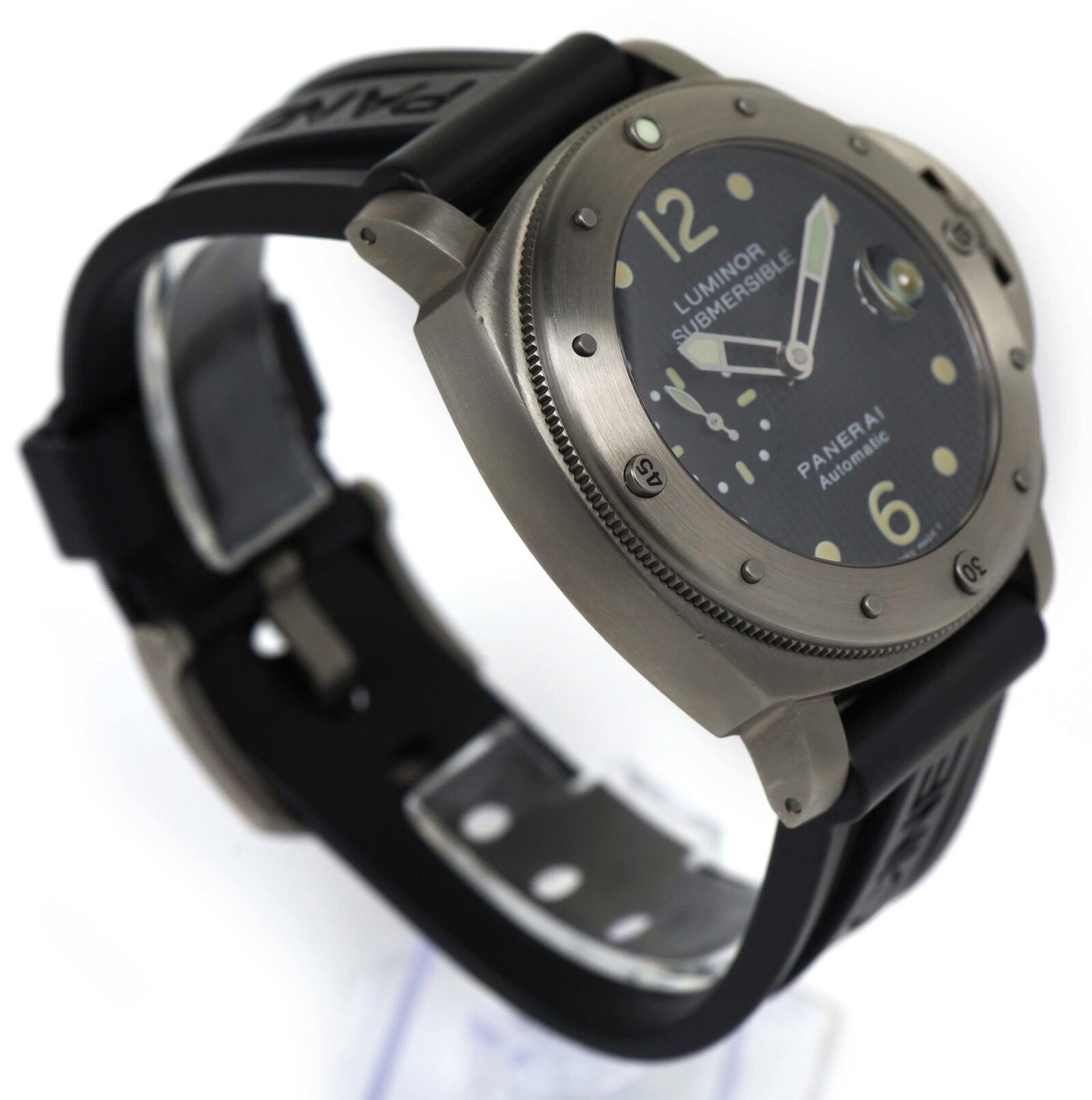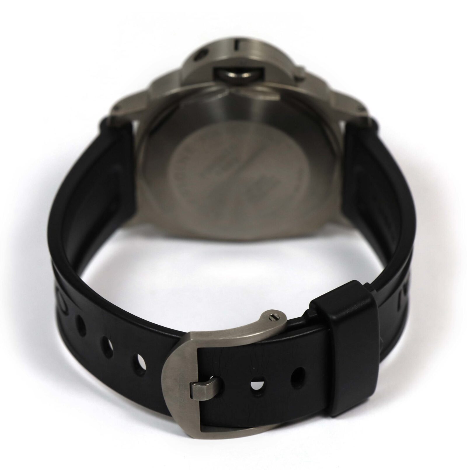 THIS PANERAI WATCH IS IN EXCELLENT CONDITION AND COMES AS WATCH ONLY AS SHOWN IN THE PICTURES ATTACHED. THIS WATCH FEATURES A 44MM TITANIUM CASE SURROUNDING A BLACK DIAL AND COMES ON A BLACK RUBBER PANERAI STRAP WITH A TITANIUM TANG BUCKLE. THE WATCH FUNCTI...