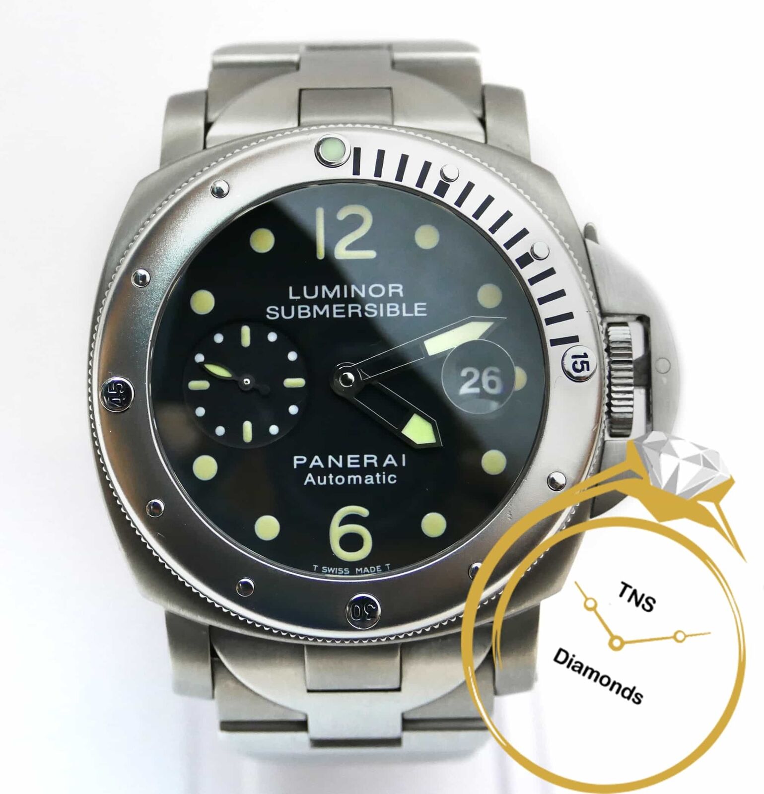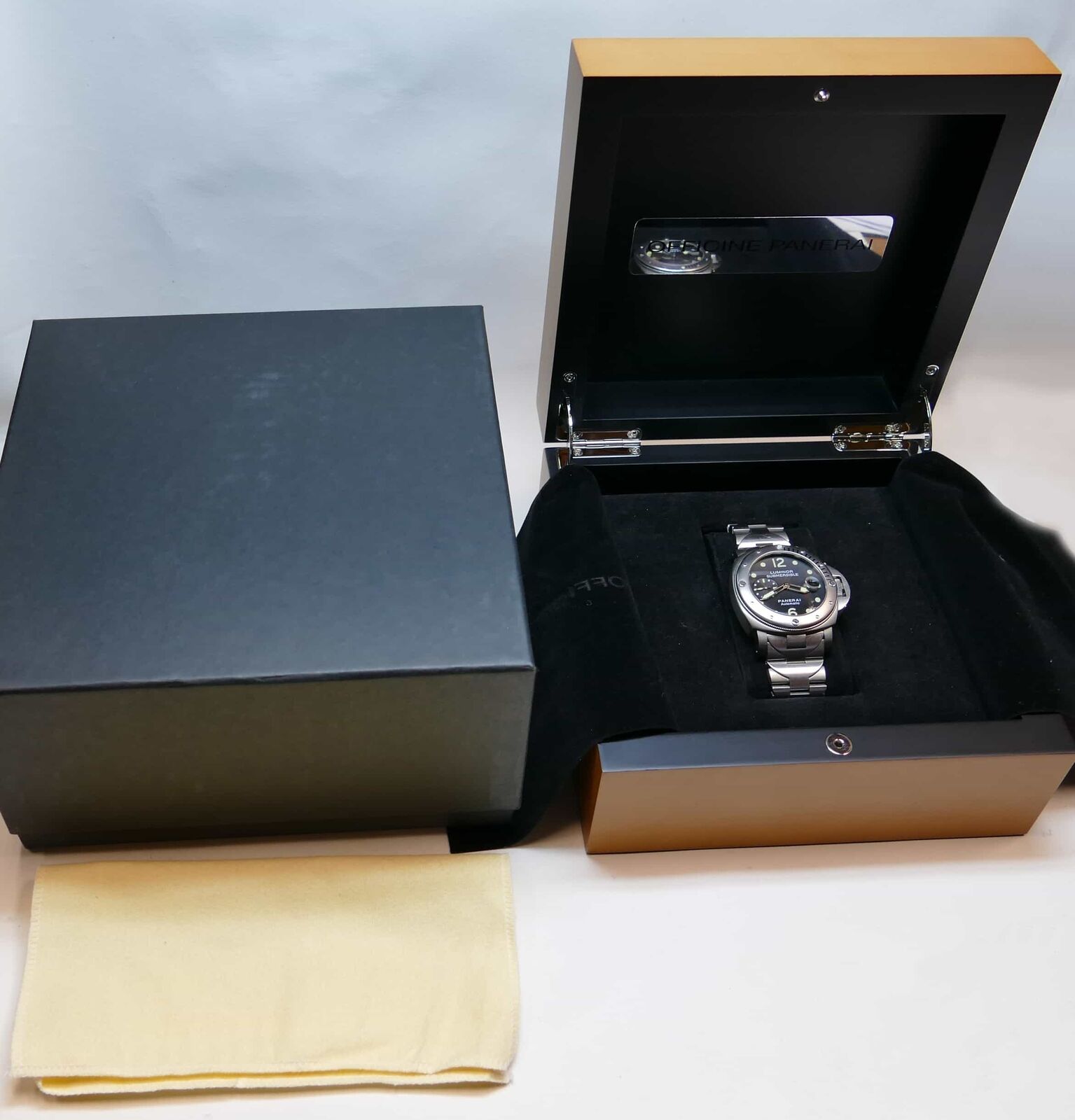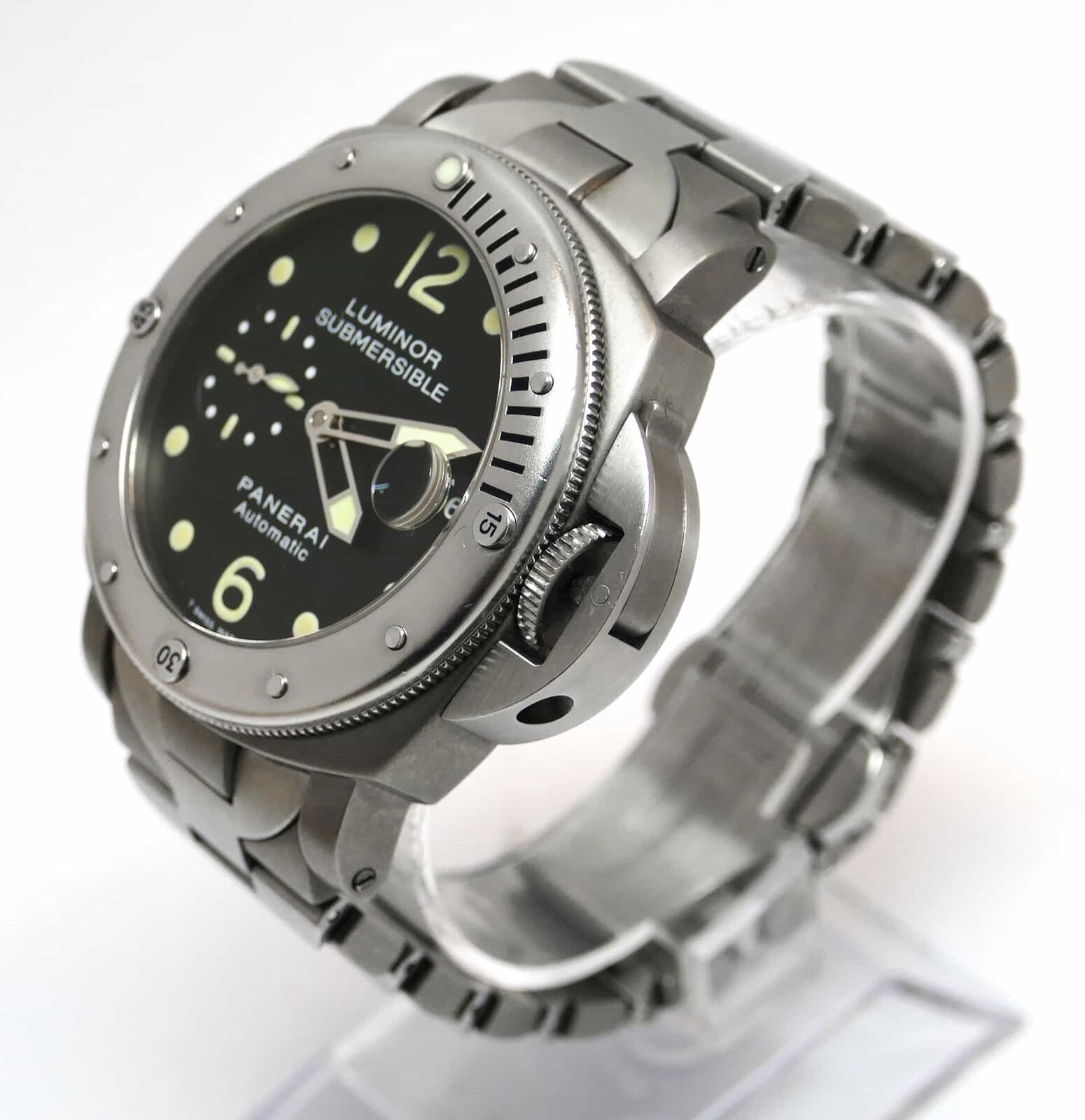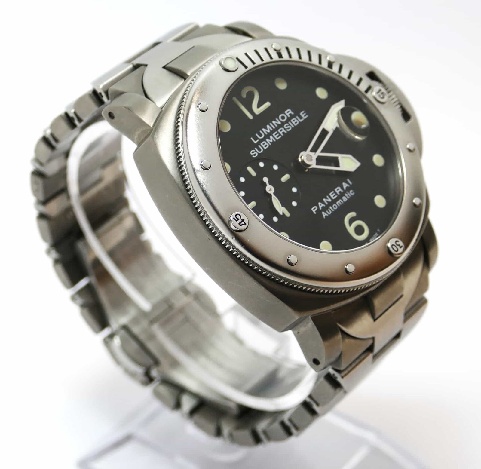 Read Morethis panerai luminor subsmersible watch is in nice overall condition and comes with its original box, but does not come with original papers. The turning bezel has some play, it properly rotates and clicks into each position, but within each position it can be wiggles a couple millimeters. It does not wiggle when being worn, only when intentionally turning it. The bracelet will fit up to 7.75 inch wrist.