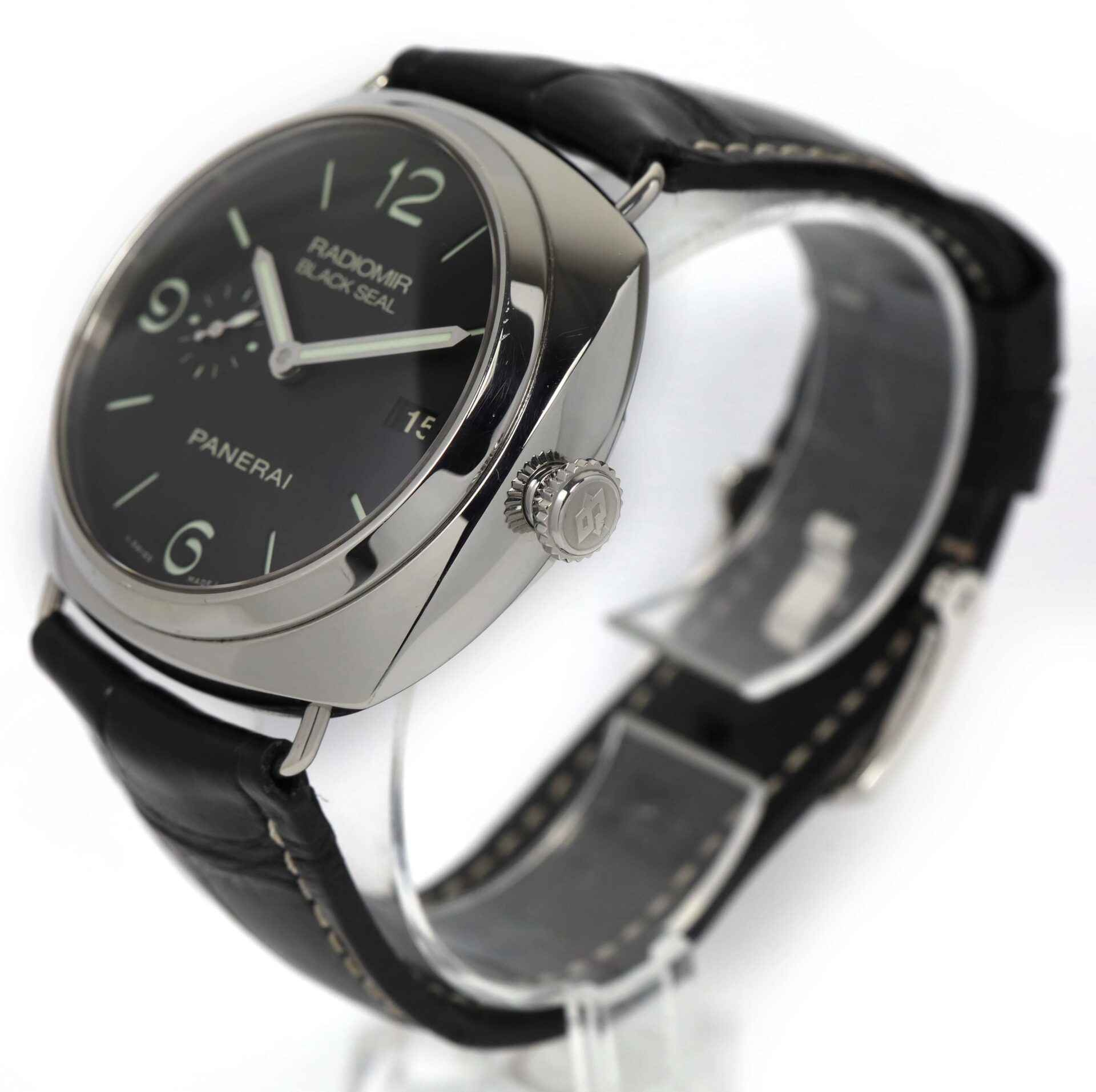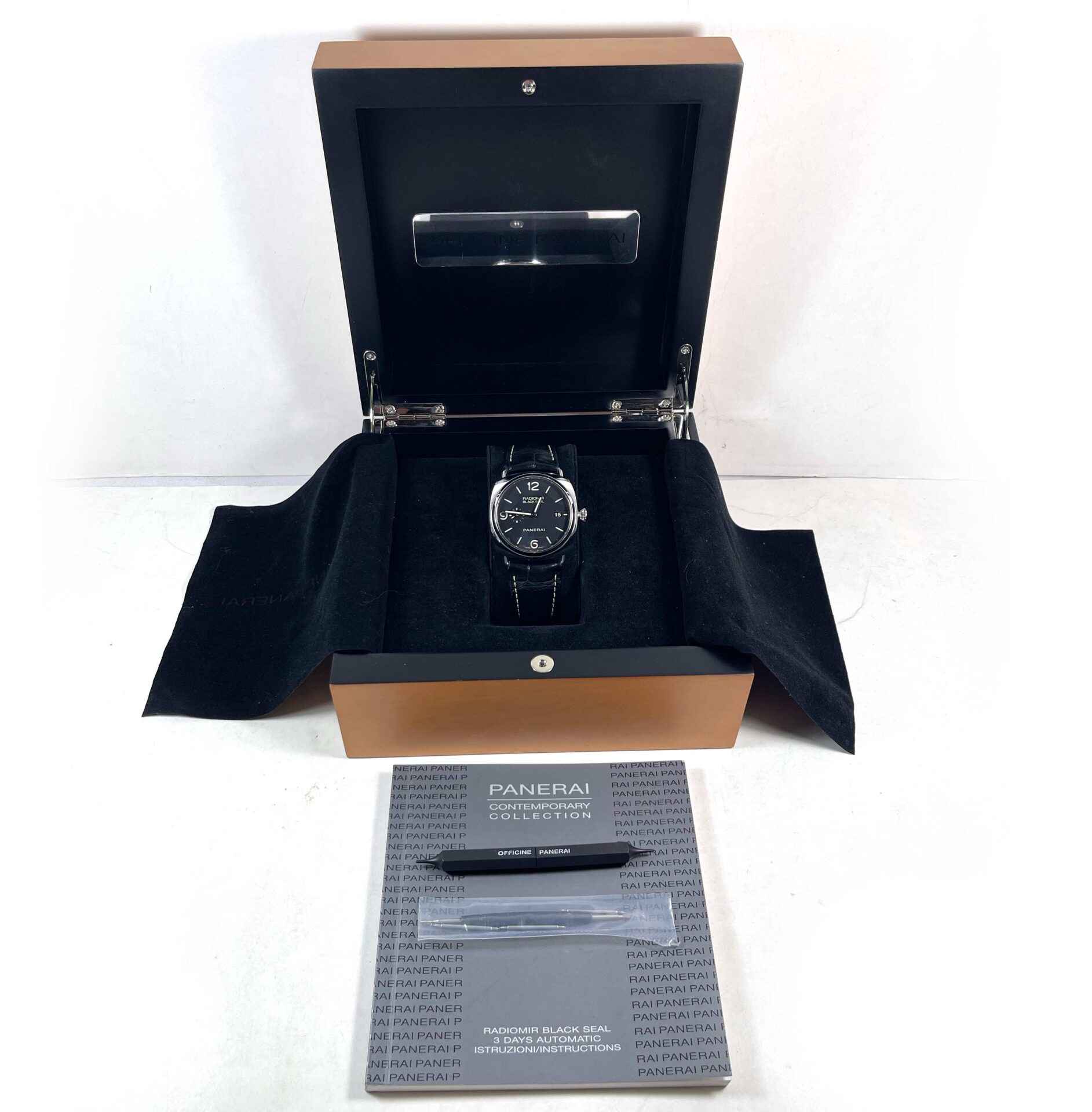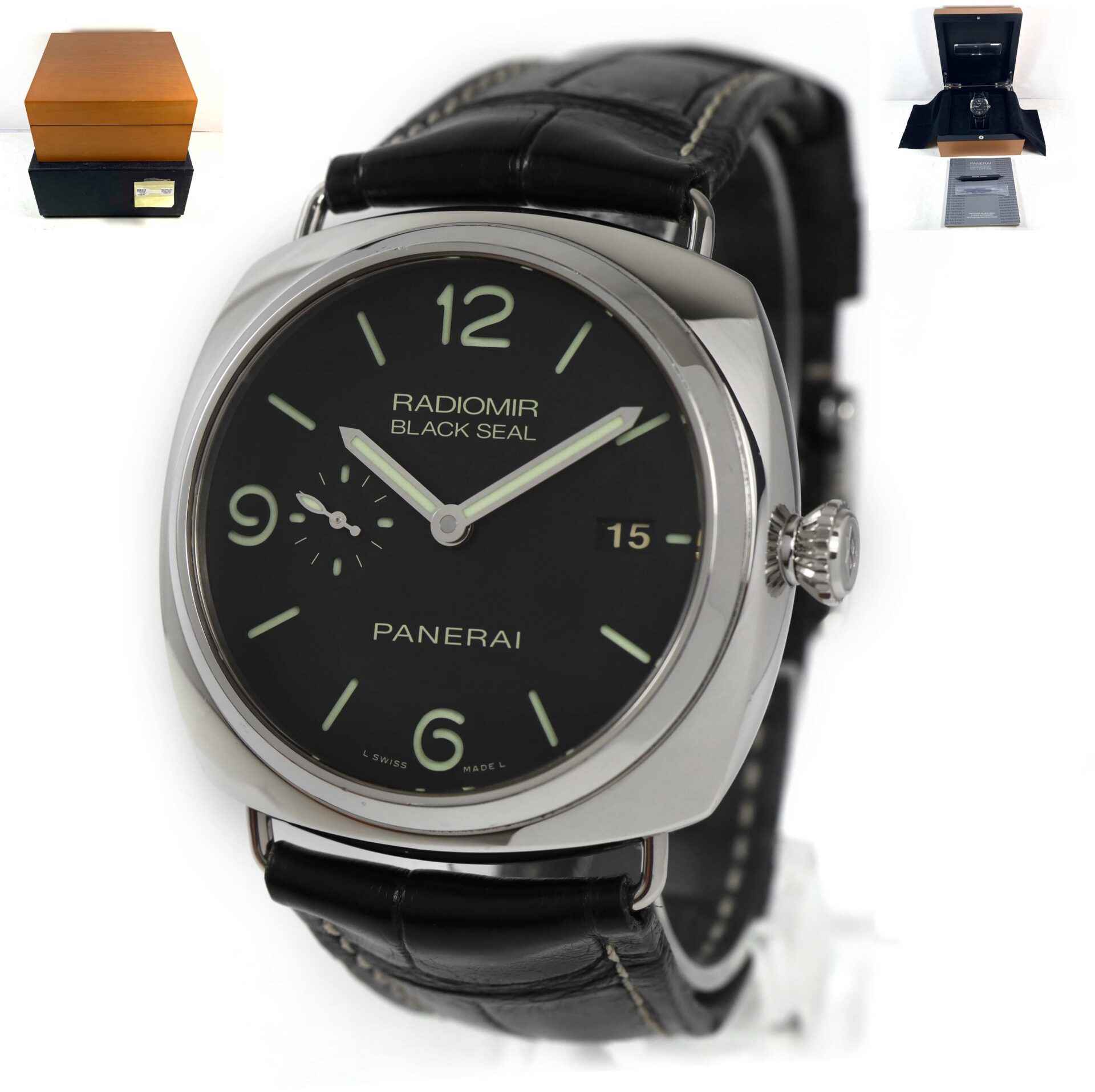 Read Morethis panerai is in excellent condition and comes with its box, booklet, and panerai tools as shown in the pictures attached. This watch features a 45mm stainless steel case that surrounds a black dial and comes on a black leather strap. This watch is in stock and available to ship immediately!