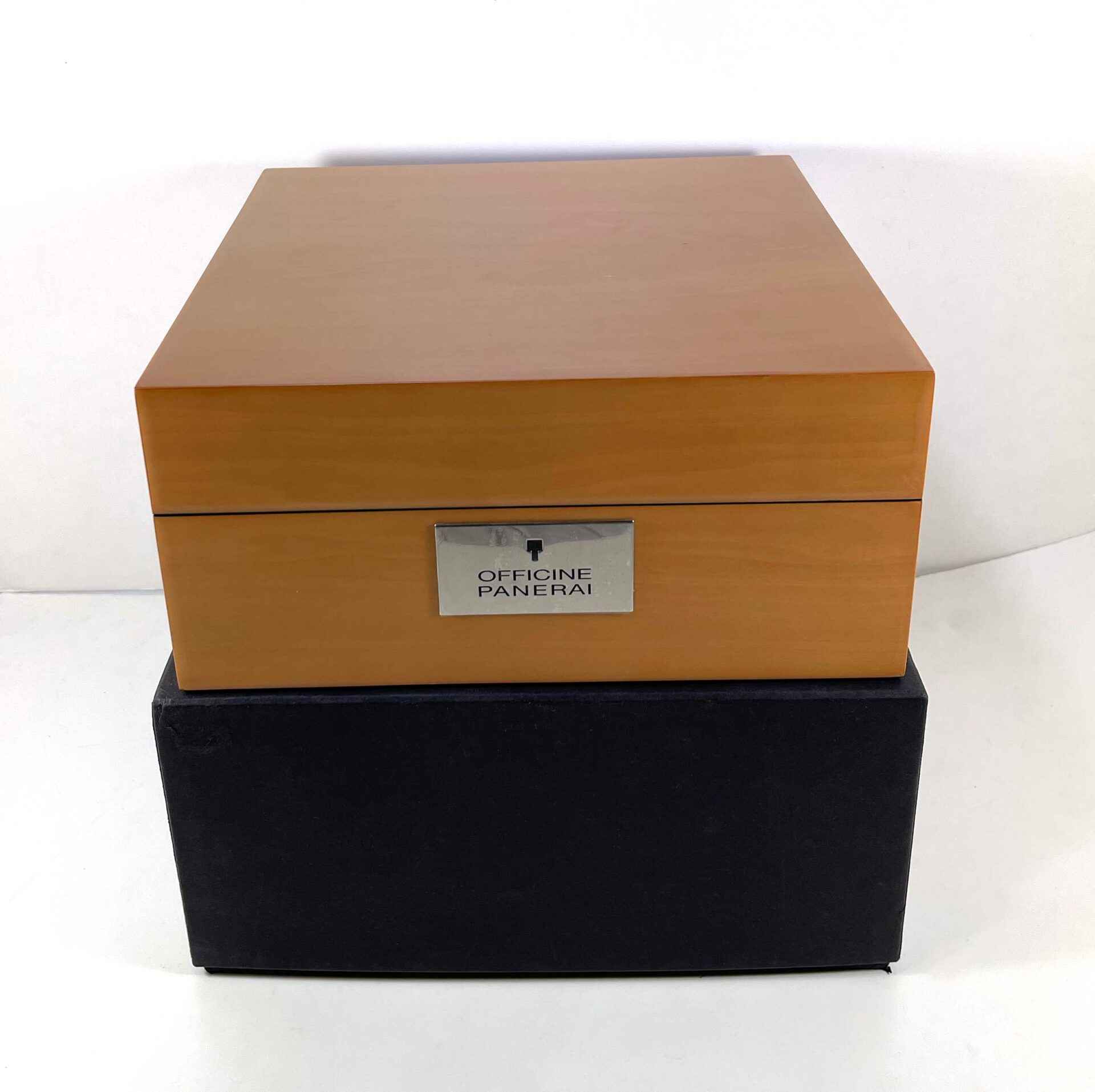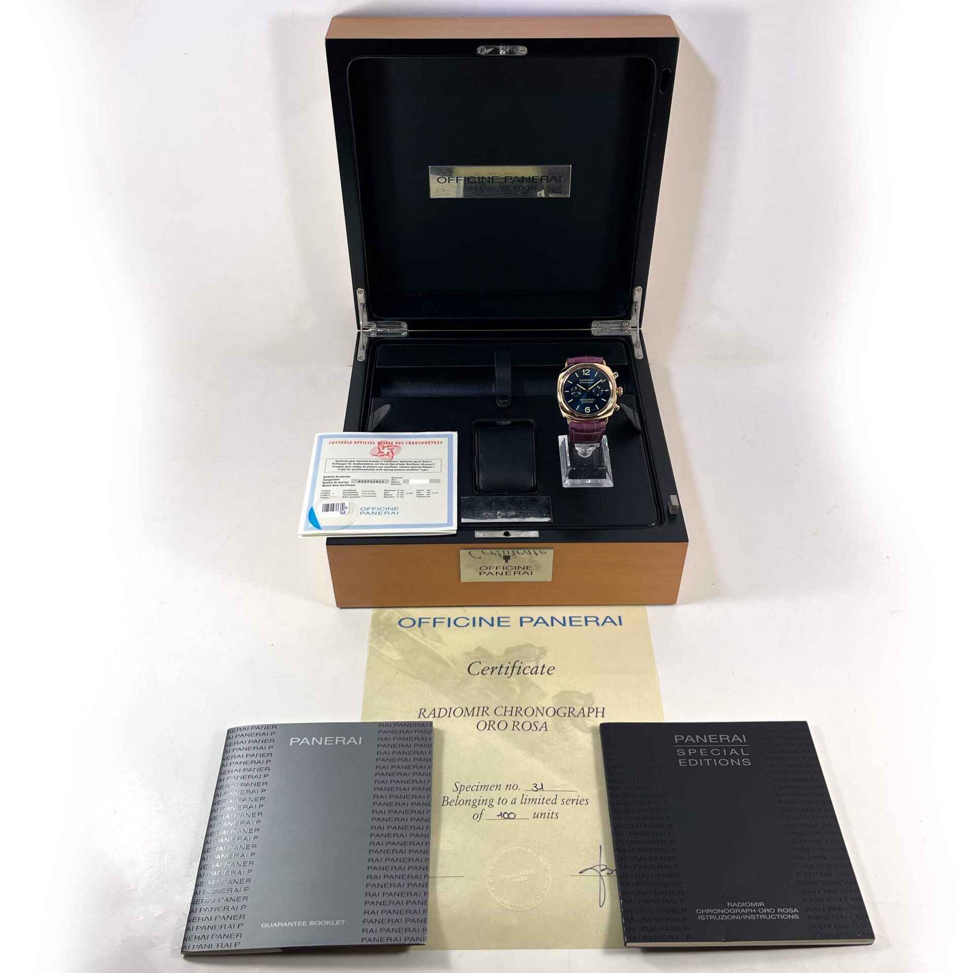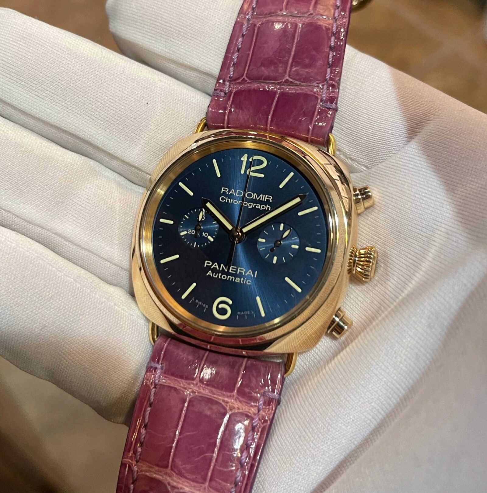 Read Morethis panerai is in excellent condition and comes with its box, papers, and warranty papers. This watch is part of a limited release with only 100 pieces produced. We ordered a new blue leather strap for this watch and will update this listing once it arrives! this watch is in stock and available to ship immediately.