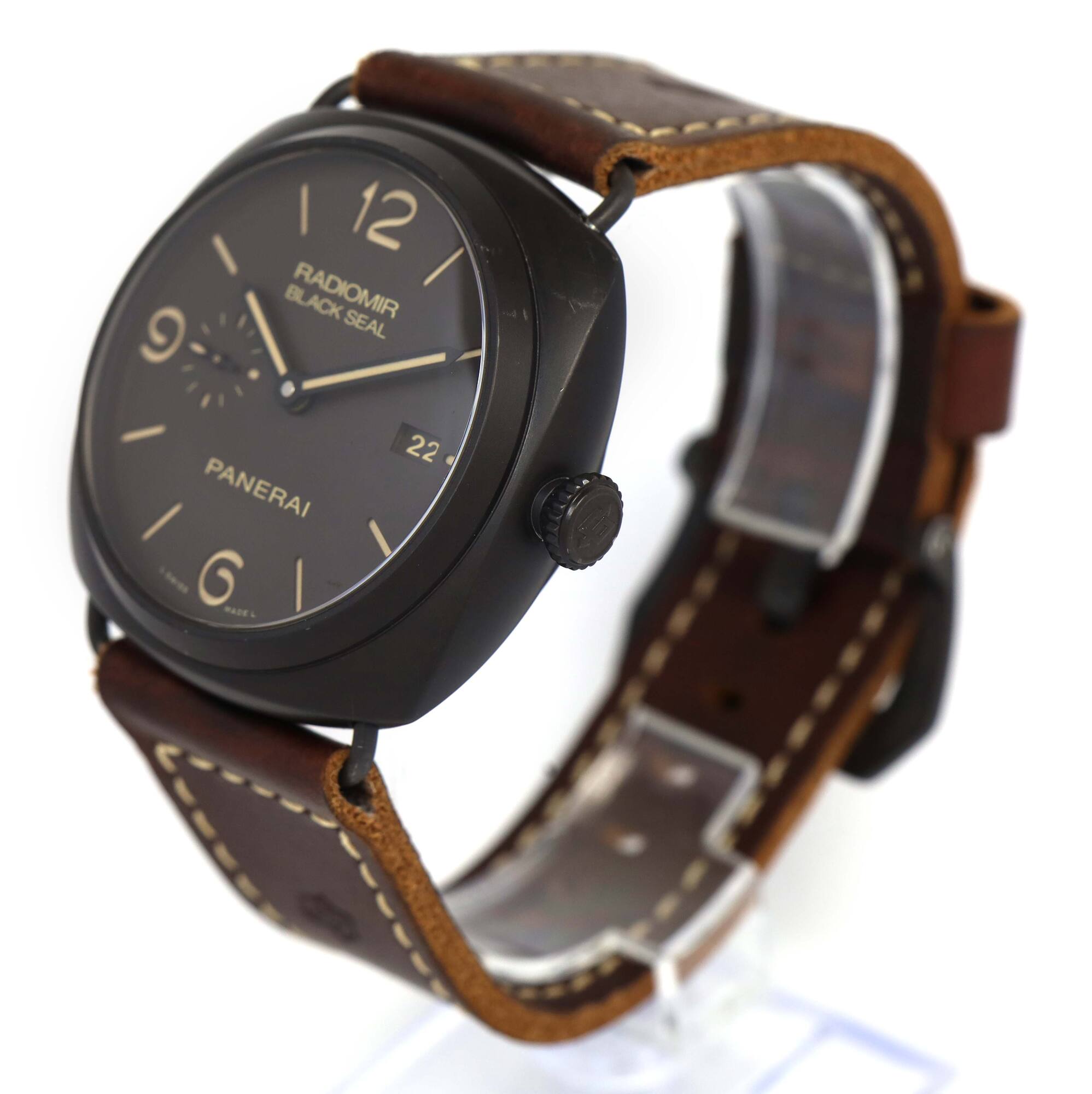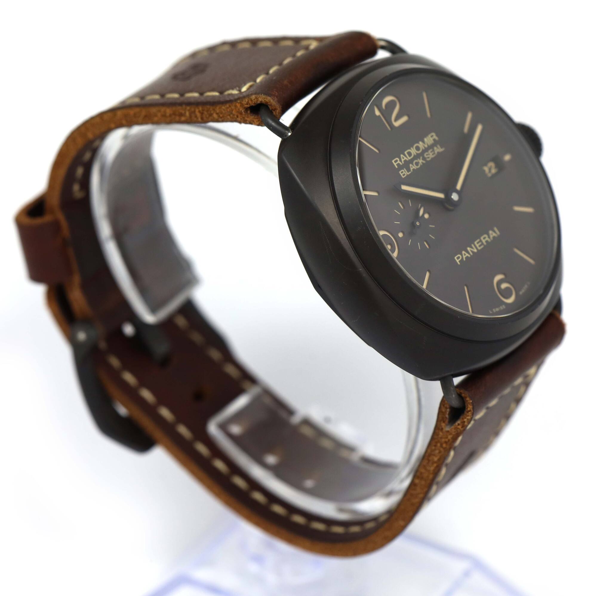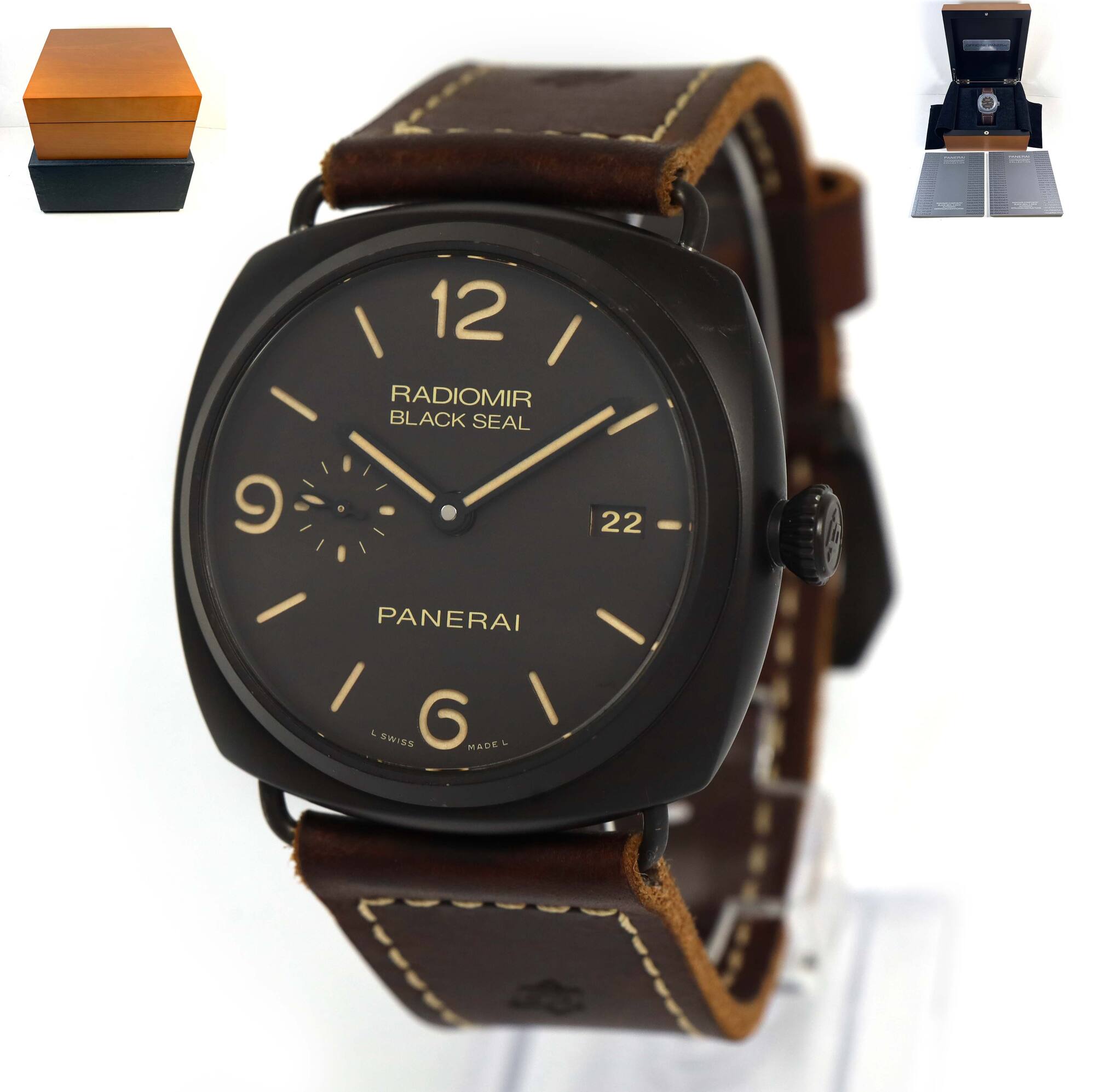 THIS PANERAI IS IN VERY GOOD OVERALL CONDITION AND COMES WITH ITS BOX, BOOKLETS, AND WARRANTY BOOKLET AS SHOWN IN THE PICTURES ATTACHED. THIS WATCH SHOWS SOME SIGNS OF WEAR ON THE CASE INCLUDING PART OF THE BLACK CERAMIC COATING ON THE TOP RIGHT LUG, PLEASE...