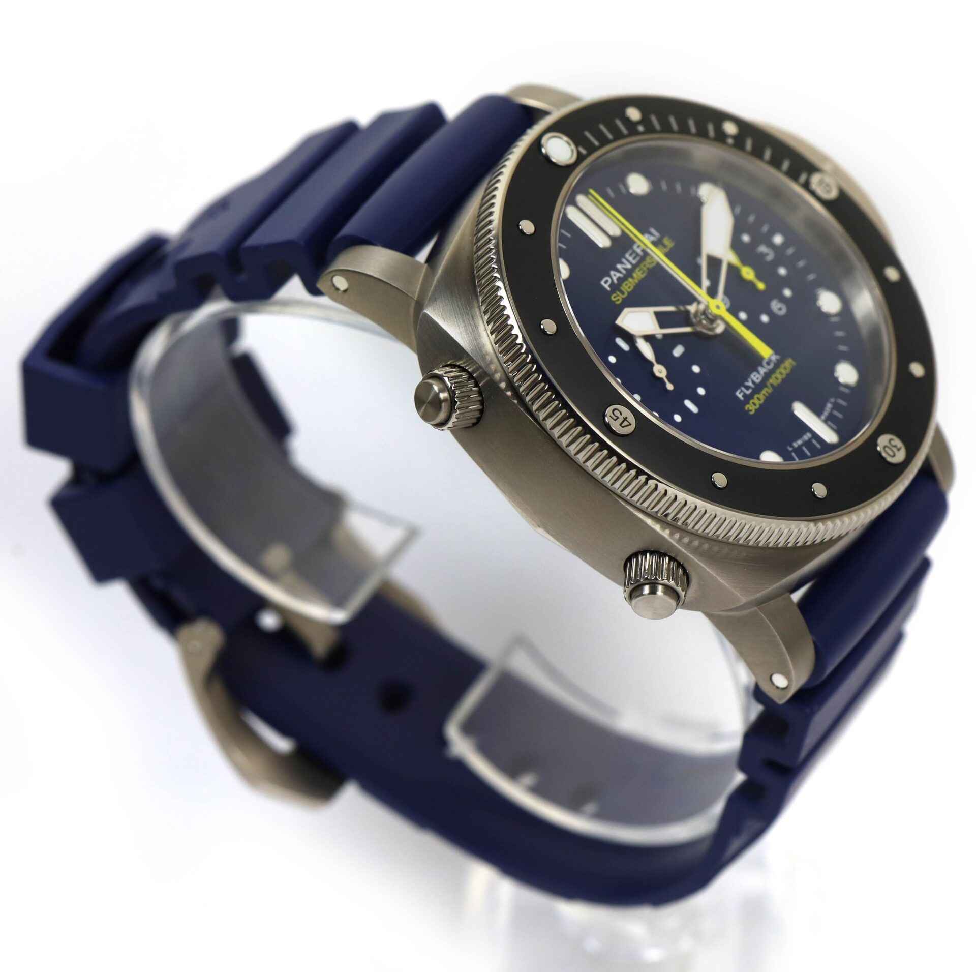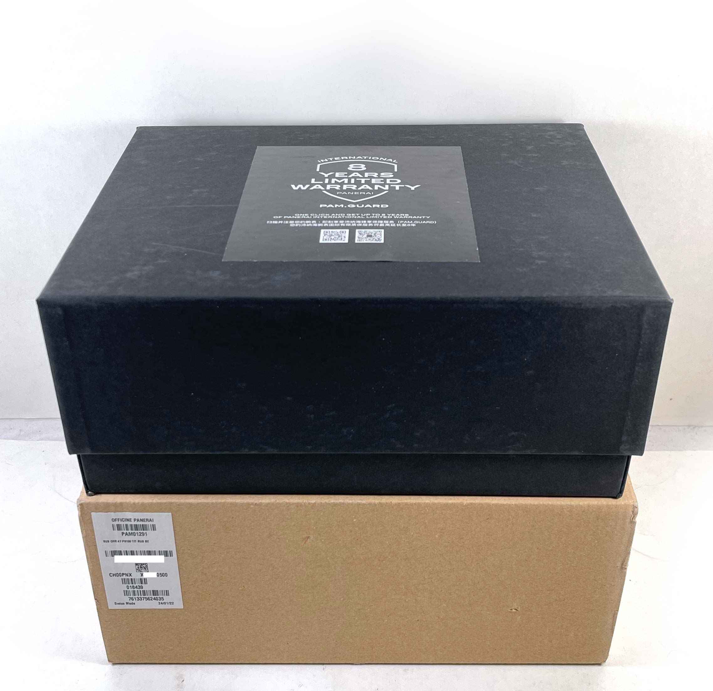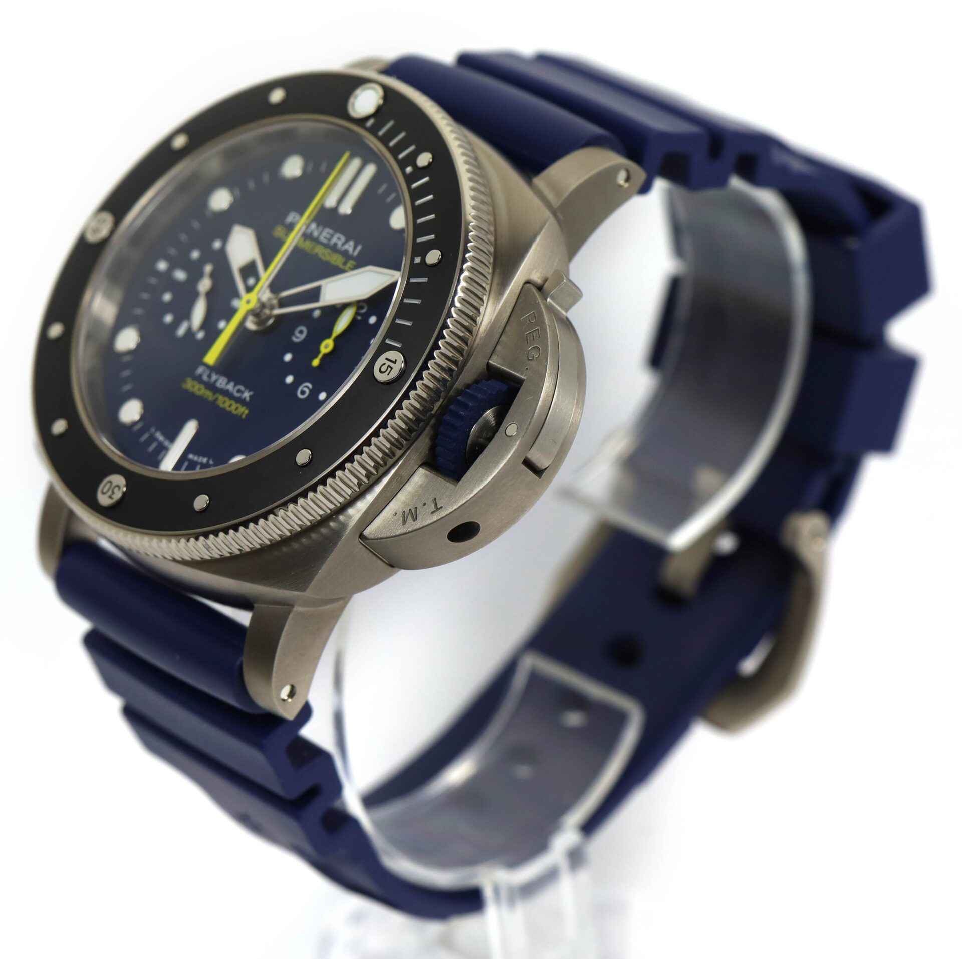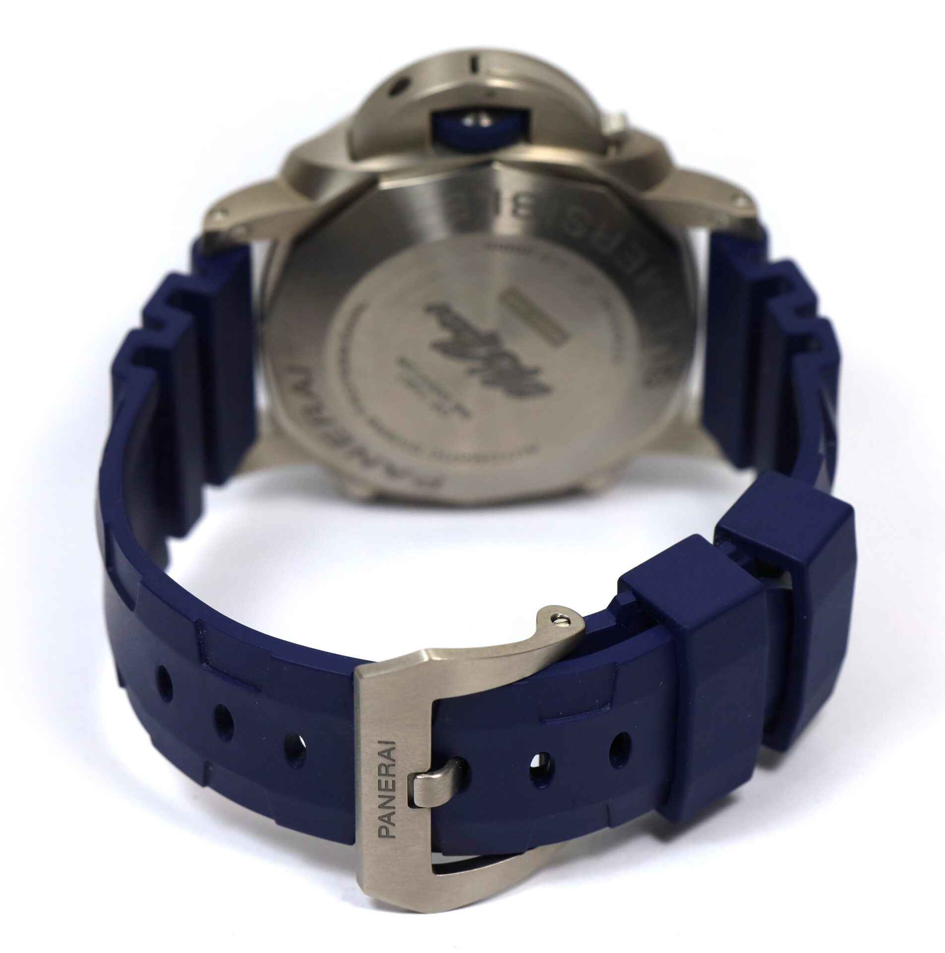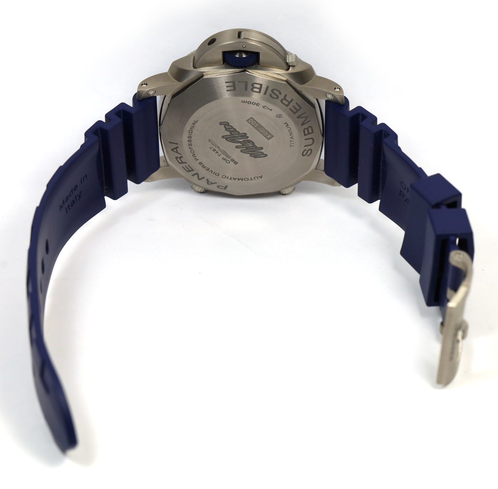 This Panerai is in mint condition and comes with its box, booklet, bezel protector, Panerai tools, one additional blue camouflage strap, and warranty card as shown in the pictures attached. This watch features a 47mm tit...