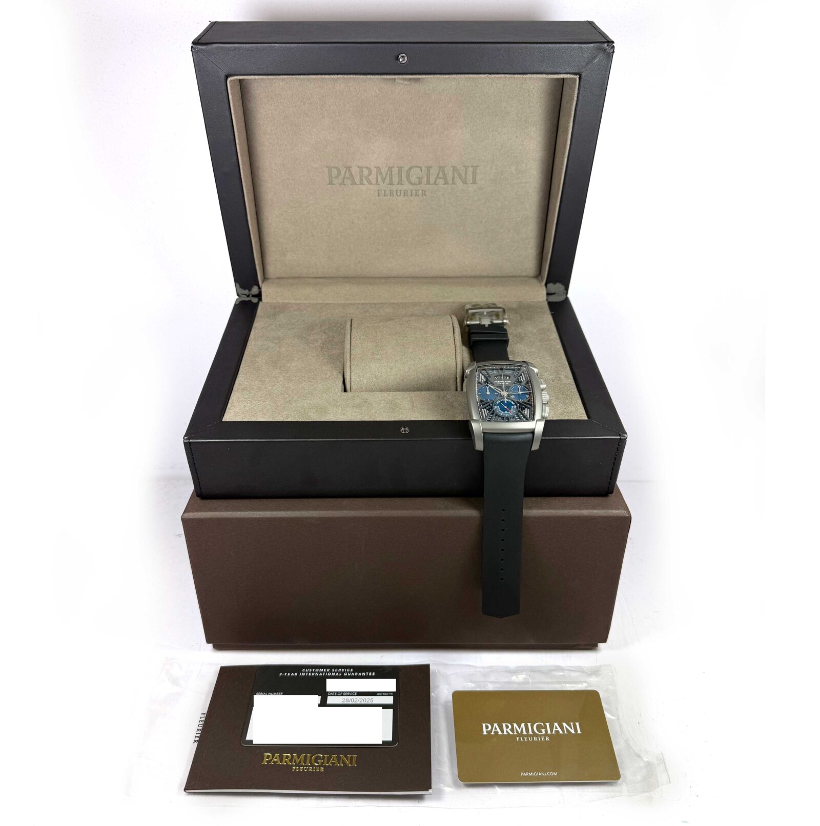 This watch is in like new condition and comes with its box, booklet, 2025 Parmigiani service card, and warranty card as shown in the pictures attached. This watch was serviced by Parmigiani on February 28th, 2025. This watch is in stock and available to shi...