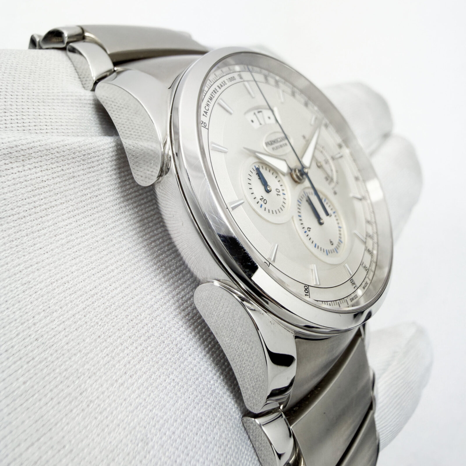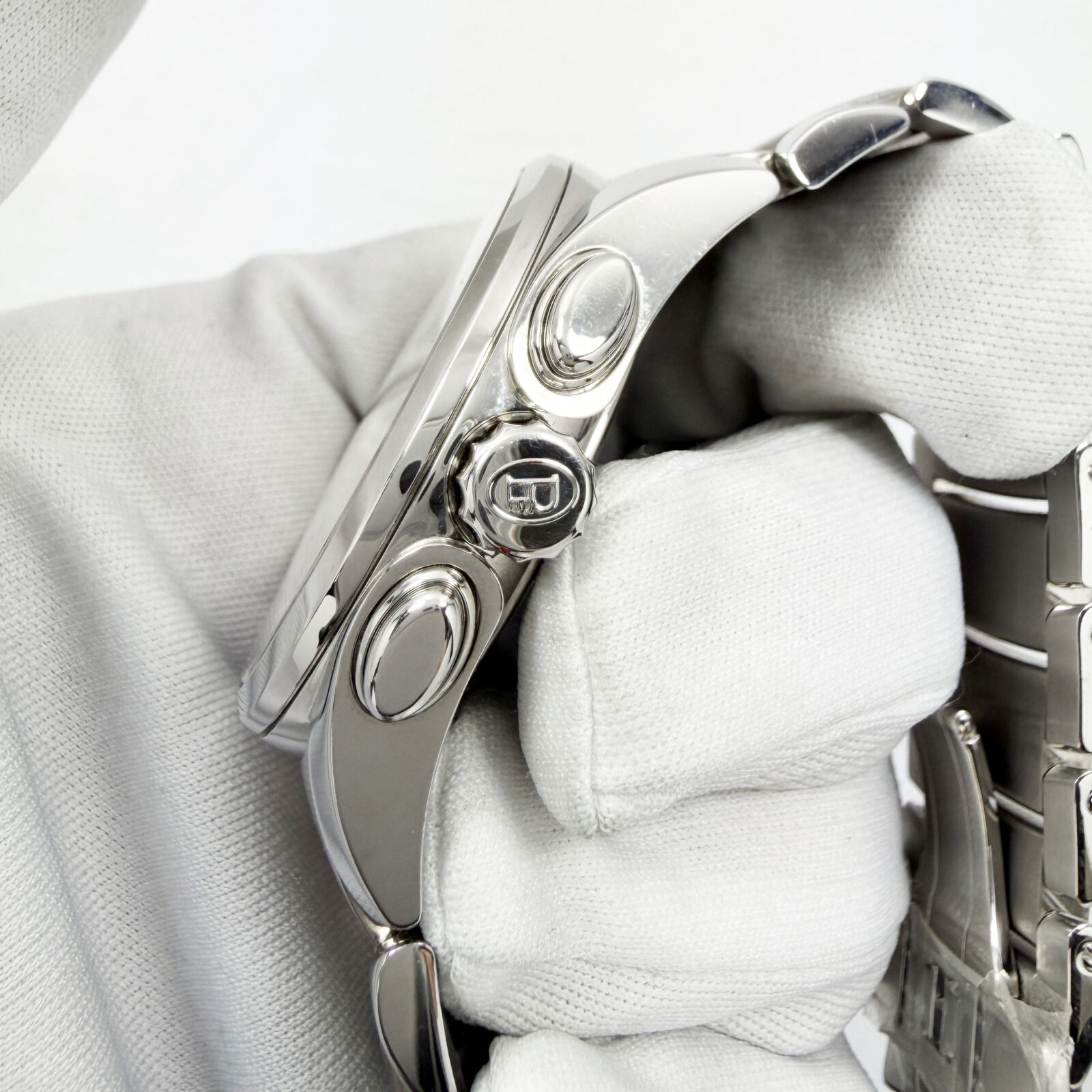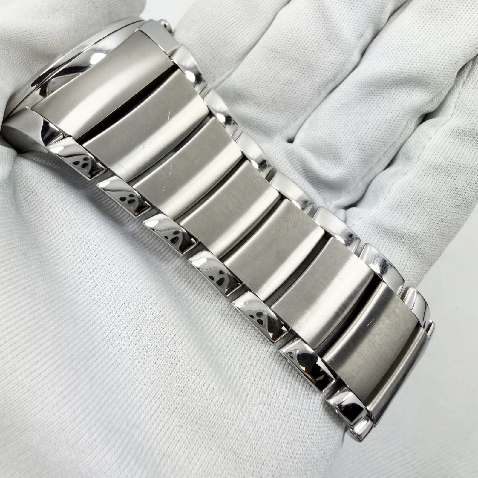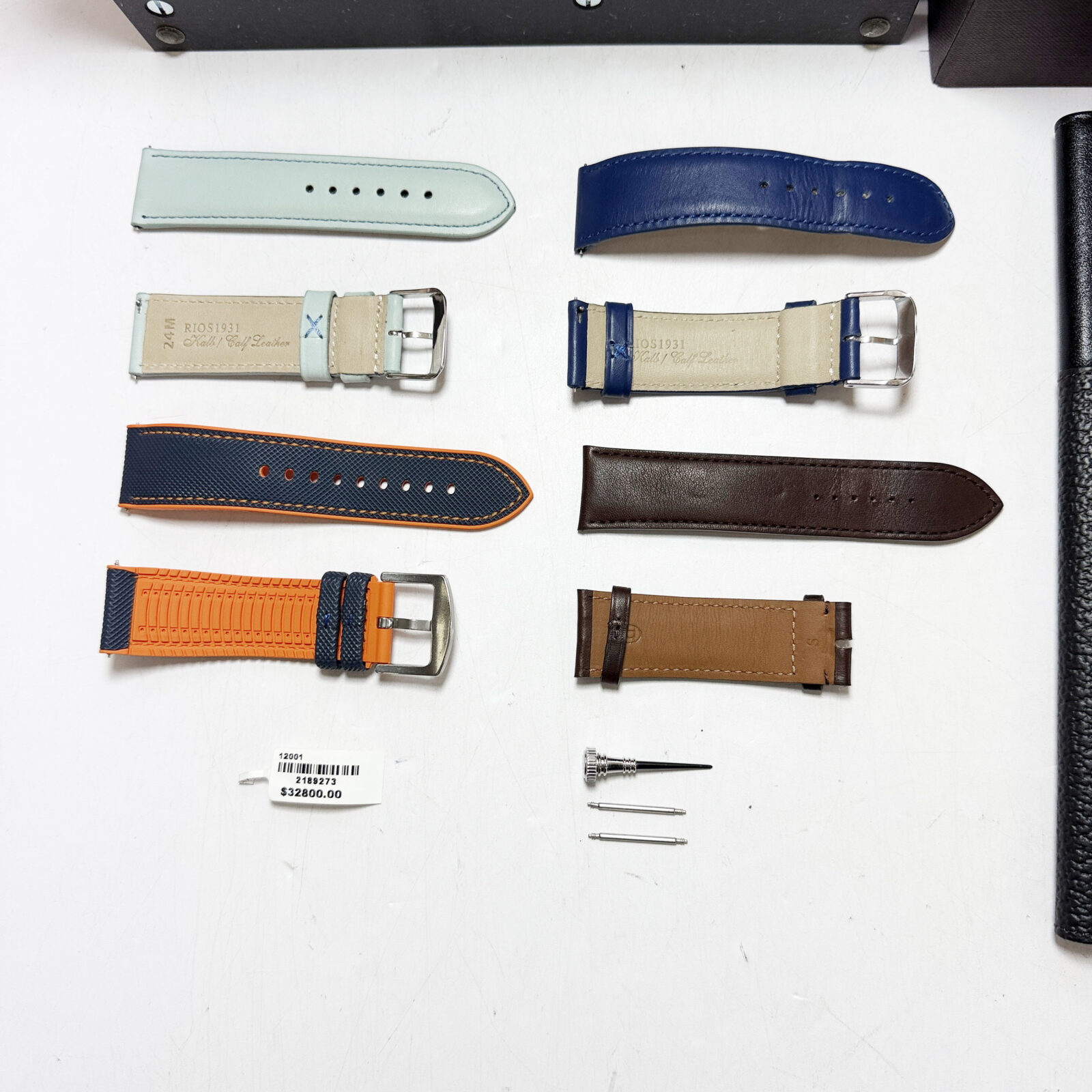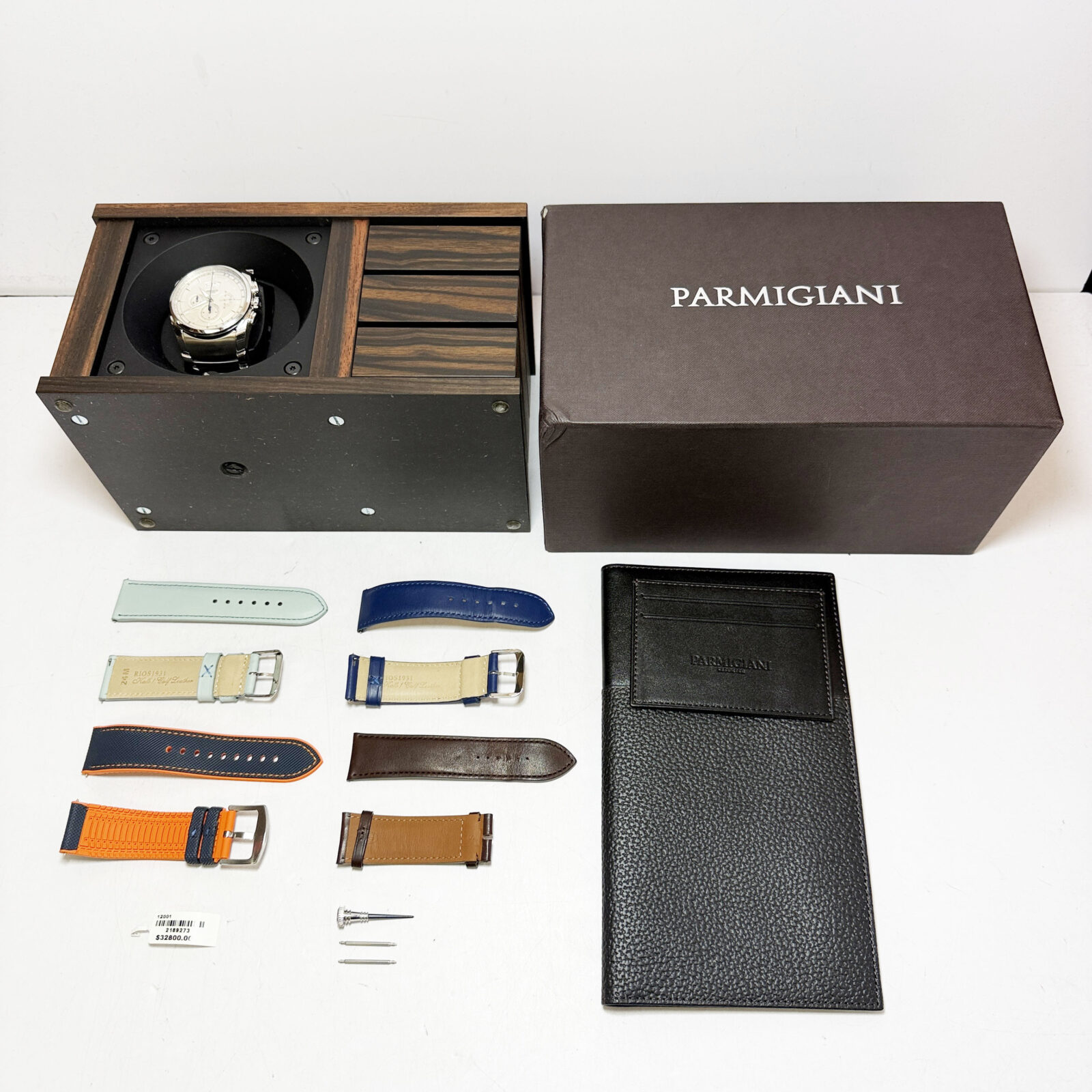 This Parmigiani Fleurier watch comes with its box, hangtag, extra straps, and pusher tool. The photos shown are of the exact watch being sold and accurately represent its condition. This watch is in stock and ready to ship immediately!