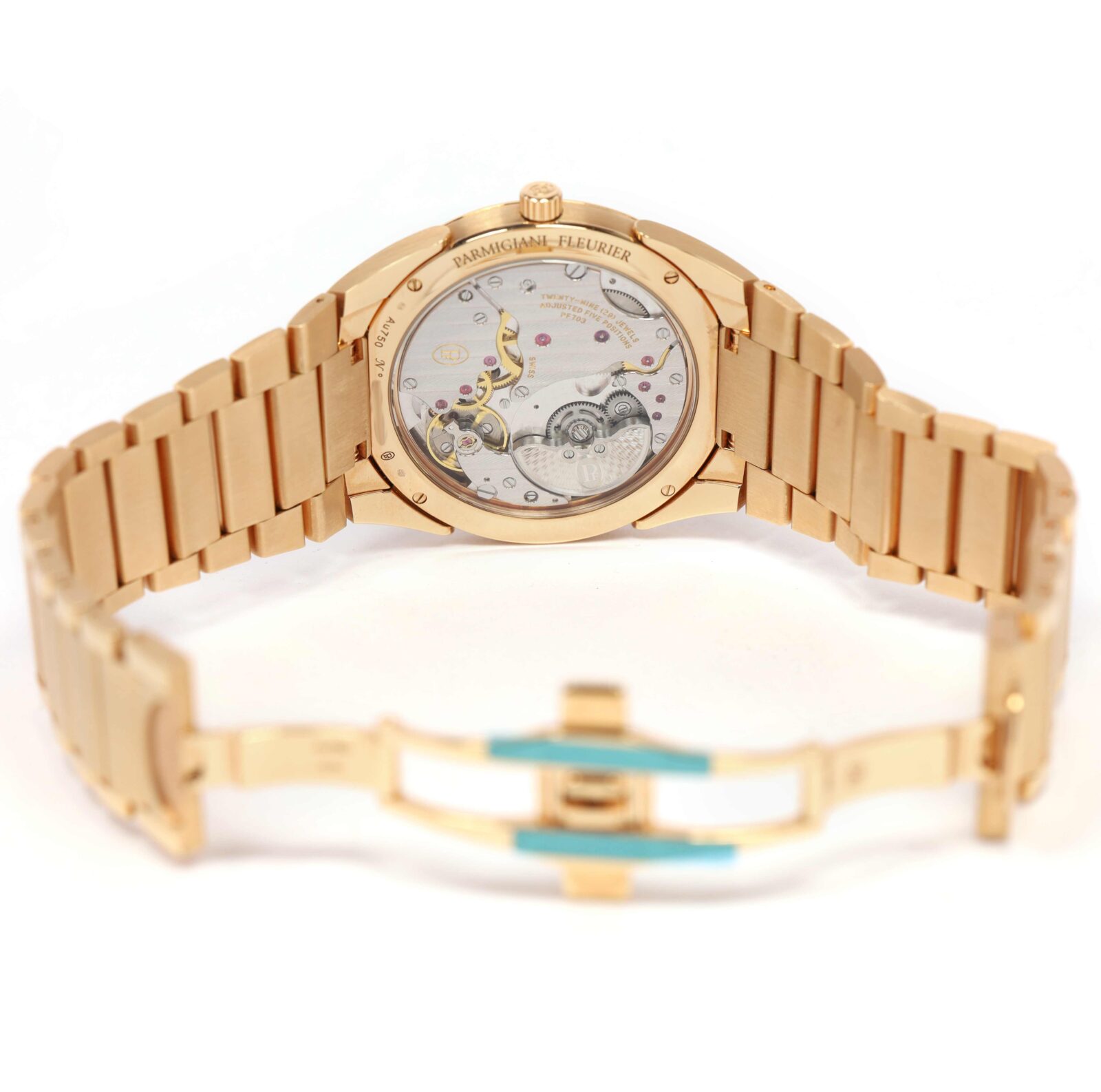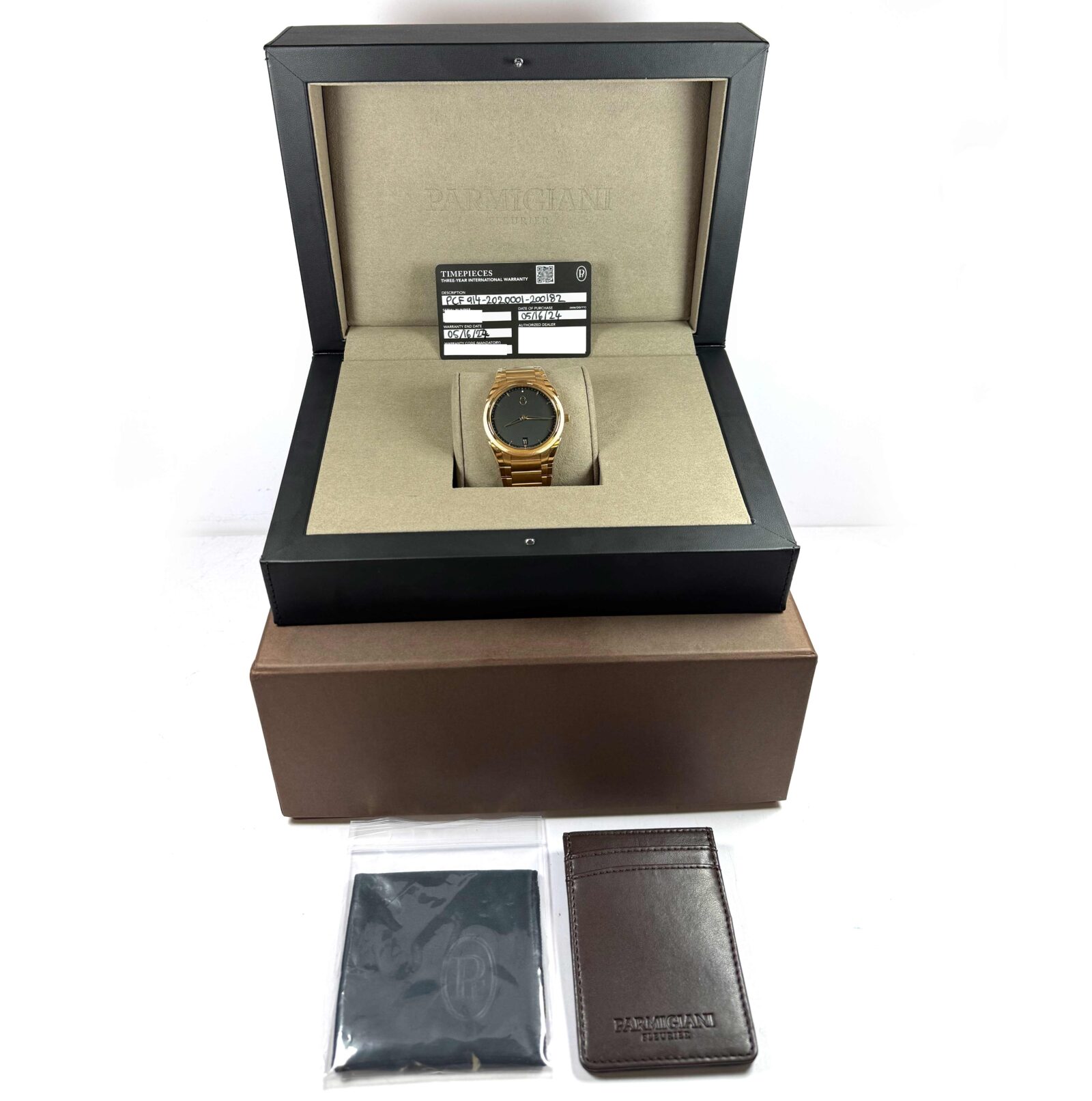 THIS PARMIGIANI WATCH IS IN MINT CONDITION AND COMES WITH ITS BOX, PARMIGIANI BRANDED CLOTH/WALLET, AND WARRANTY CARD DATED MAY 16TH, 2024 AS SHOWN IN THE PICTURES ATTACHED. THIS WATCH IS IN STOCK AND AVAILABLE TO SHIP IMMEDIATELY!