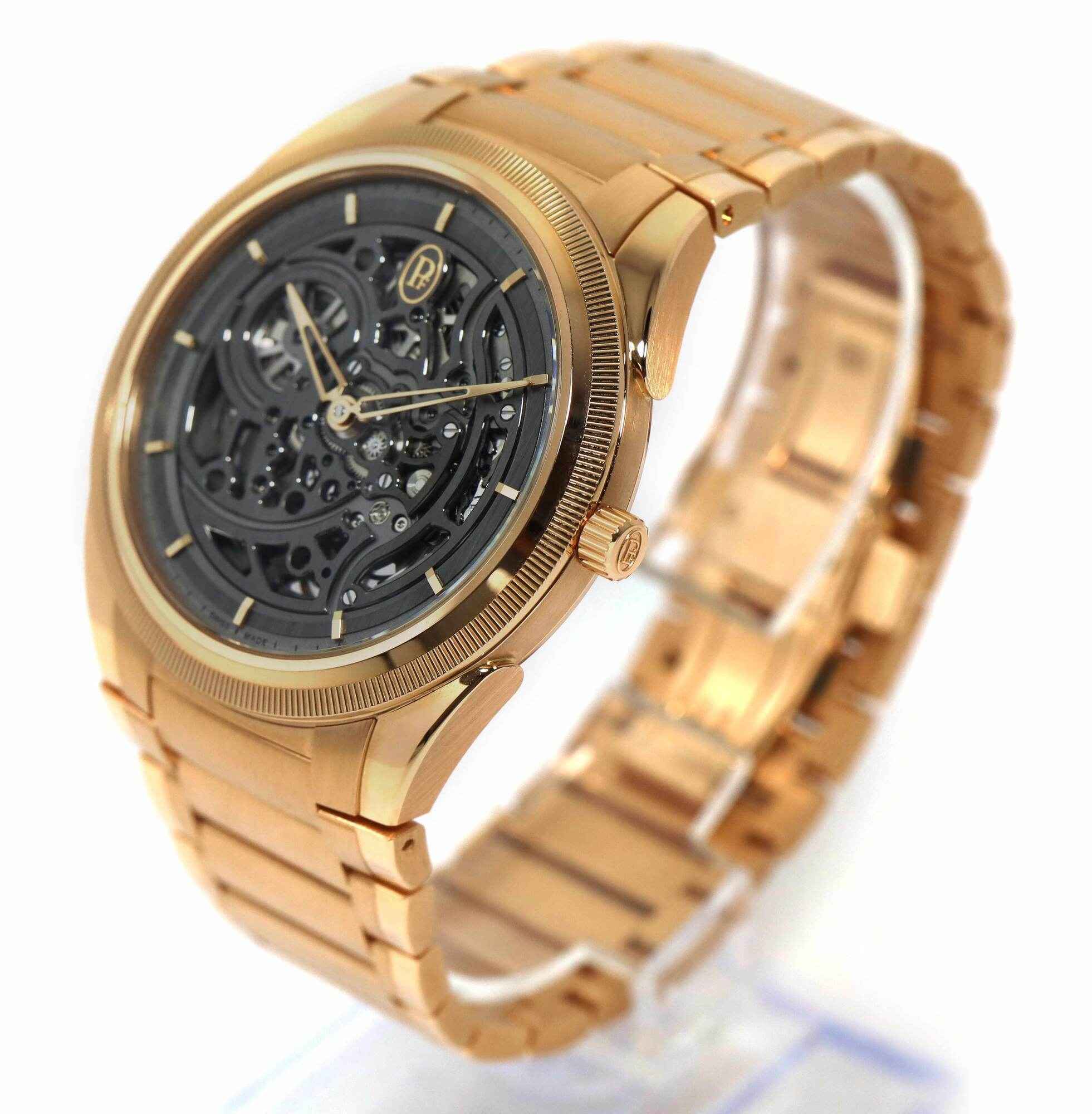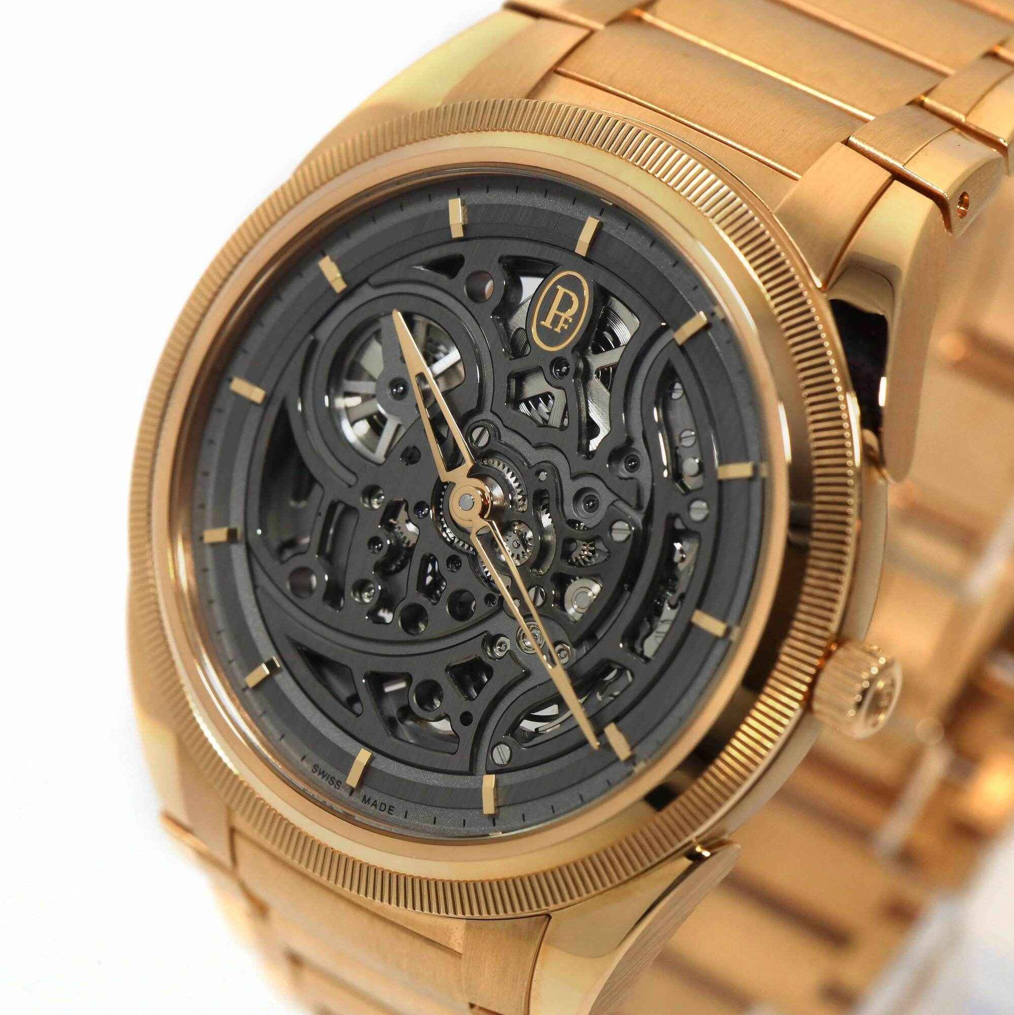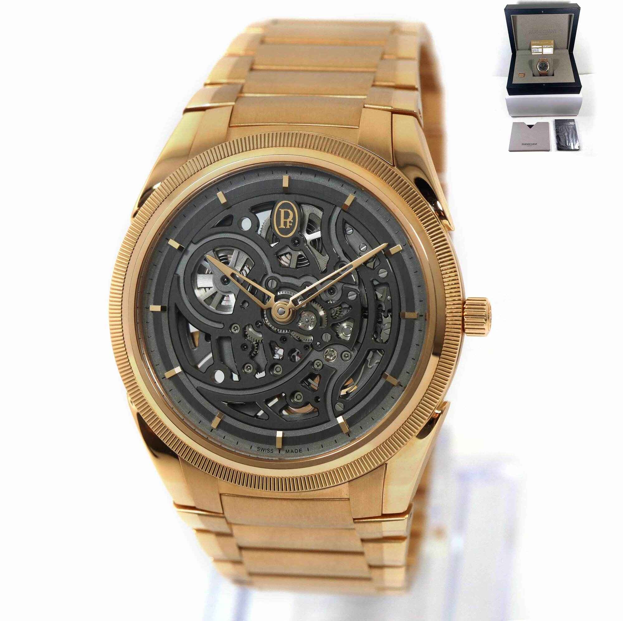 Read Morethis parmigiani is in 9.9/10, unpolished condition and comes with its box, spare links, parmigiani branded wallet/microfiber cloth, and warranty card dated november 30th, 2022 as shown in the pictures attached. This watch features a 40mm 18k rose gold case that surrounds a black skeleton dial and comes on a rose gold bracelet. This watch is in stock and available to ship immediately!