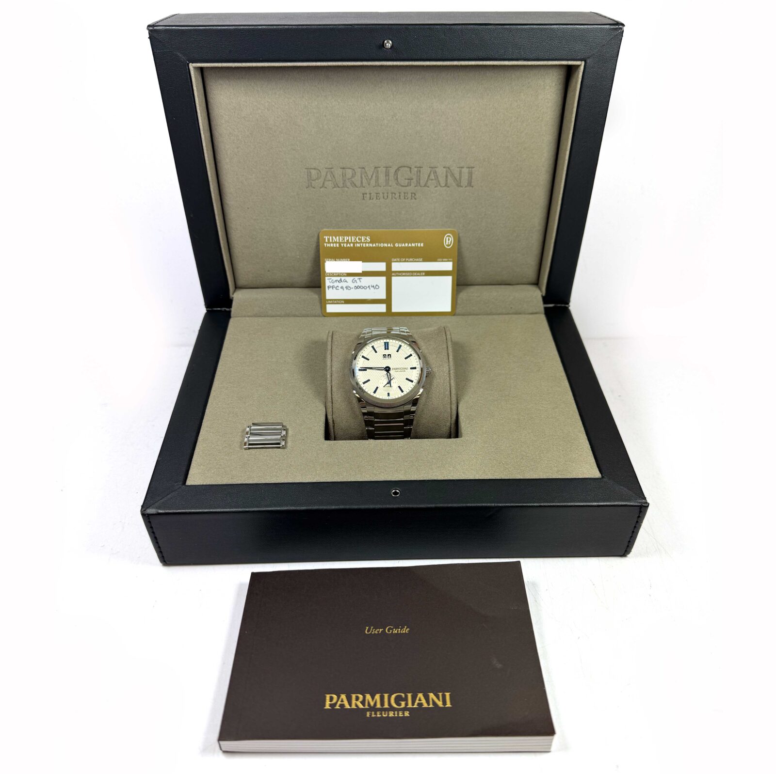 This Parmigiani watch is in excellent overall condition showing some light signs of surface wear consistent with preowned watches. This comes with its box, booklet, spare links, and warranty card as shown in the pictures attached. This Parmigiani watch is p...