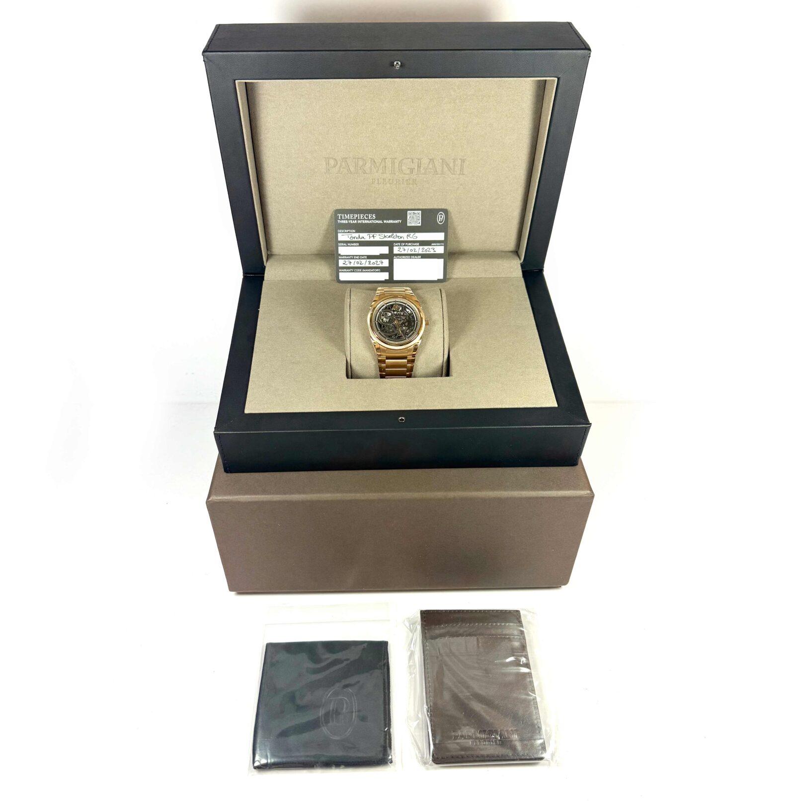 THIS PARMIGIANI WATCH IS IN MINT OVERALL CONDITION AND COMES WITH ITS BOX, PARMIGIANI BRANDED WALLET, AND WARRANTY CARD DATED FEBRUARY 27TH, 2023 AS SHOWN IN THE PICTURES ATTACHED. THIS WATCH IS IN STOCK AND AVAILABLE TO SHIP IMMEDIATELY!