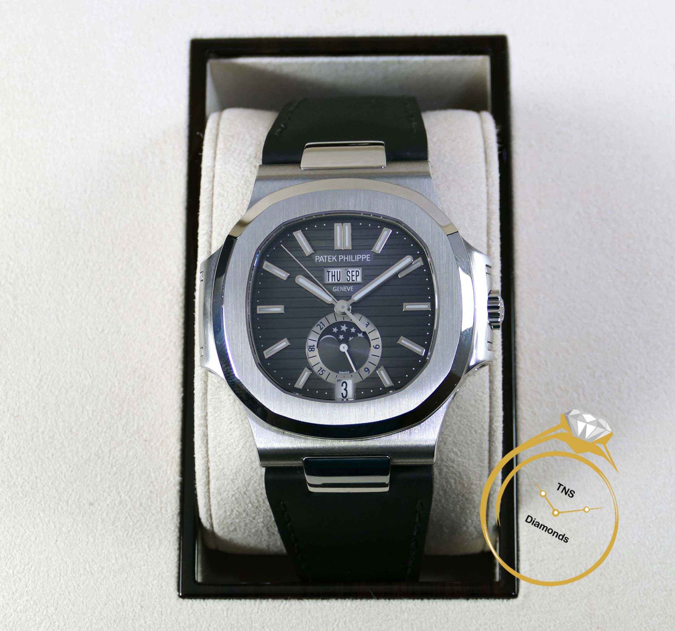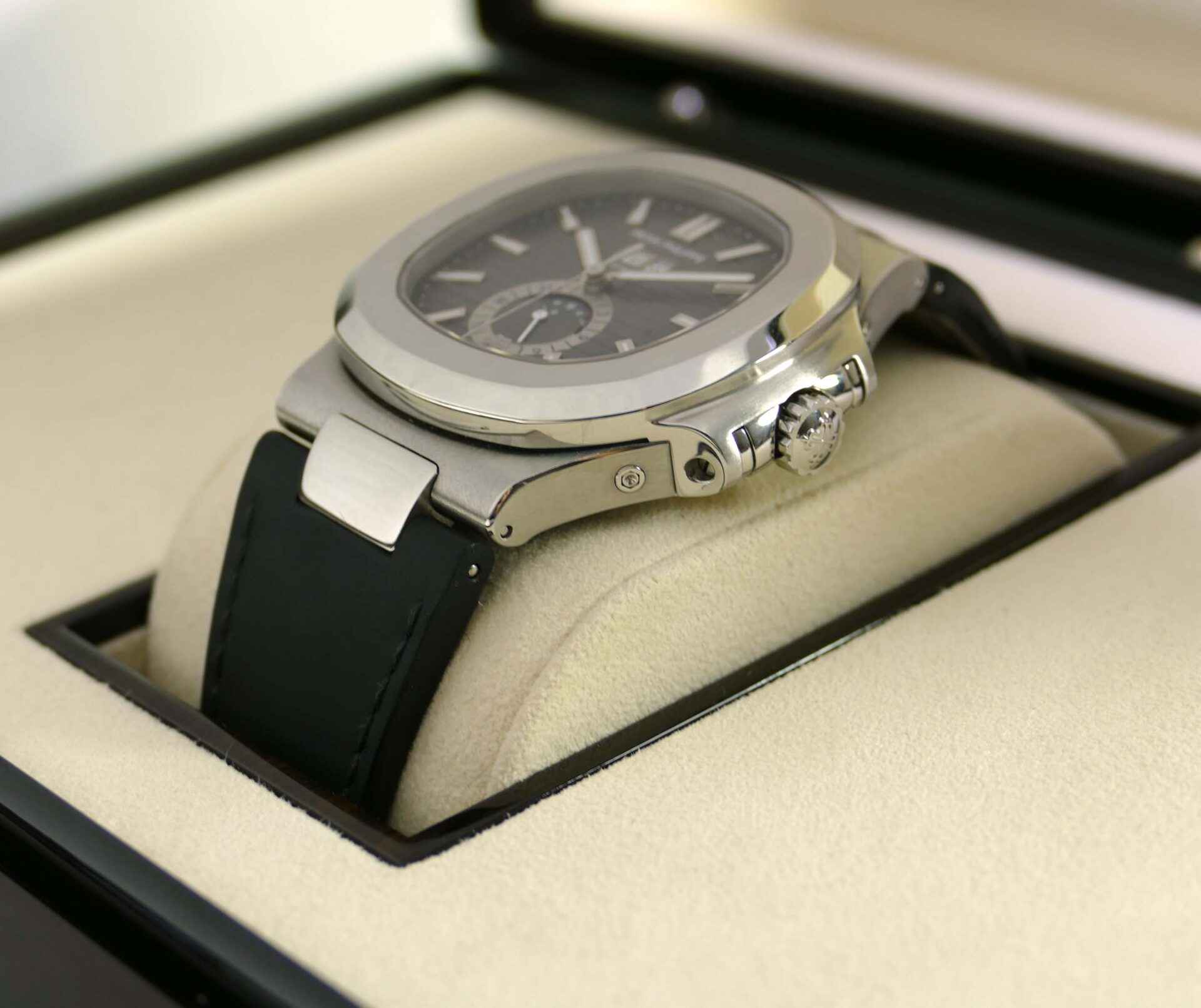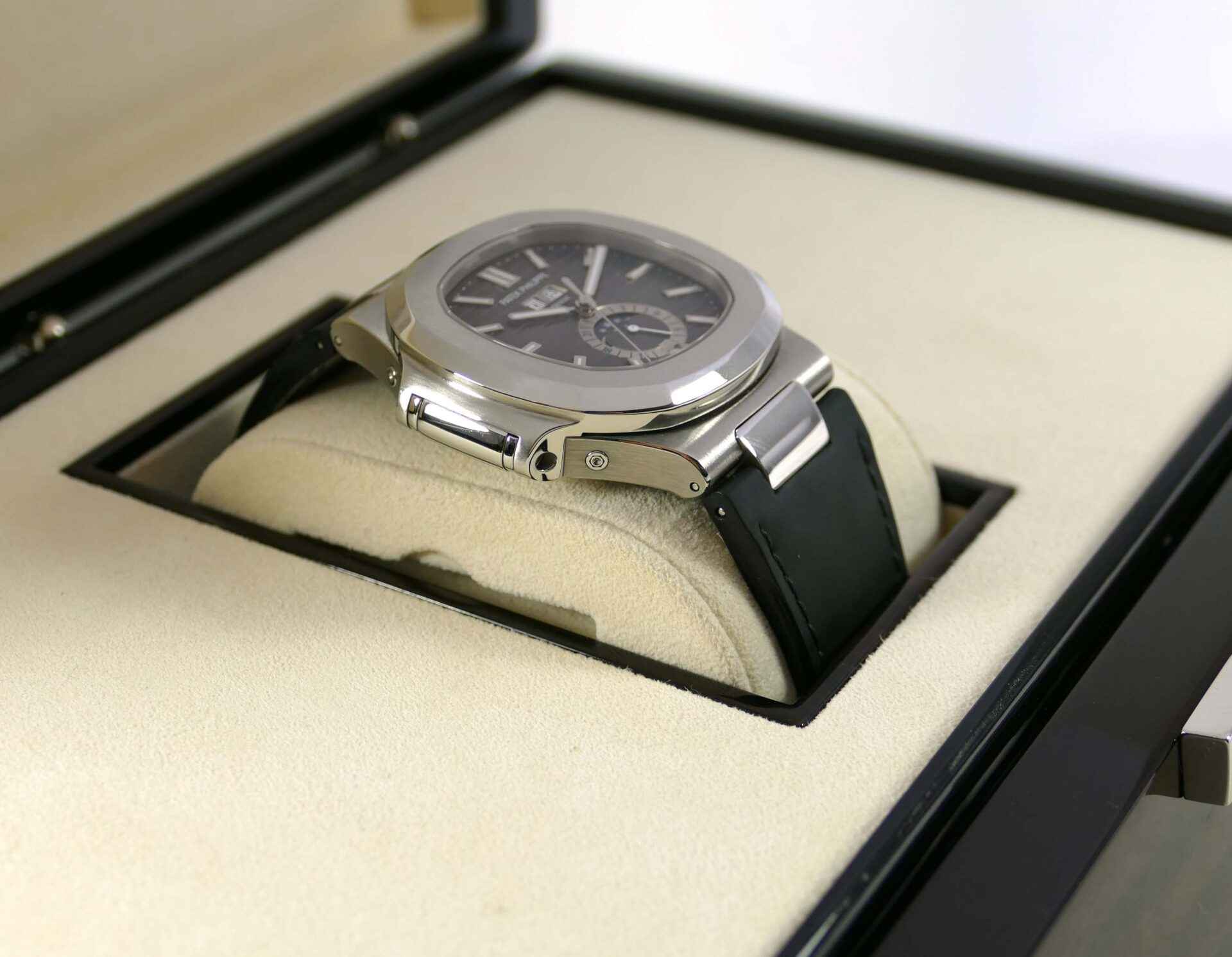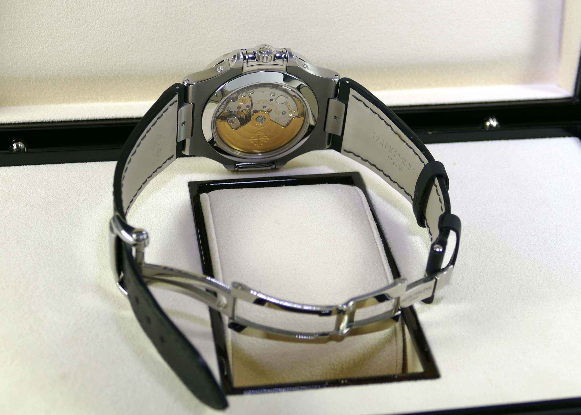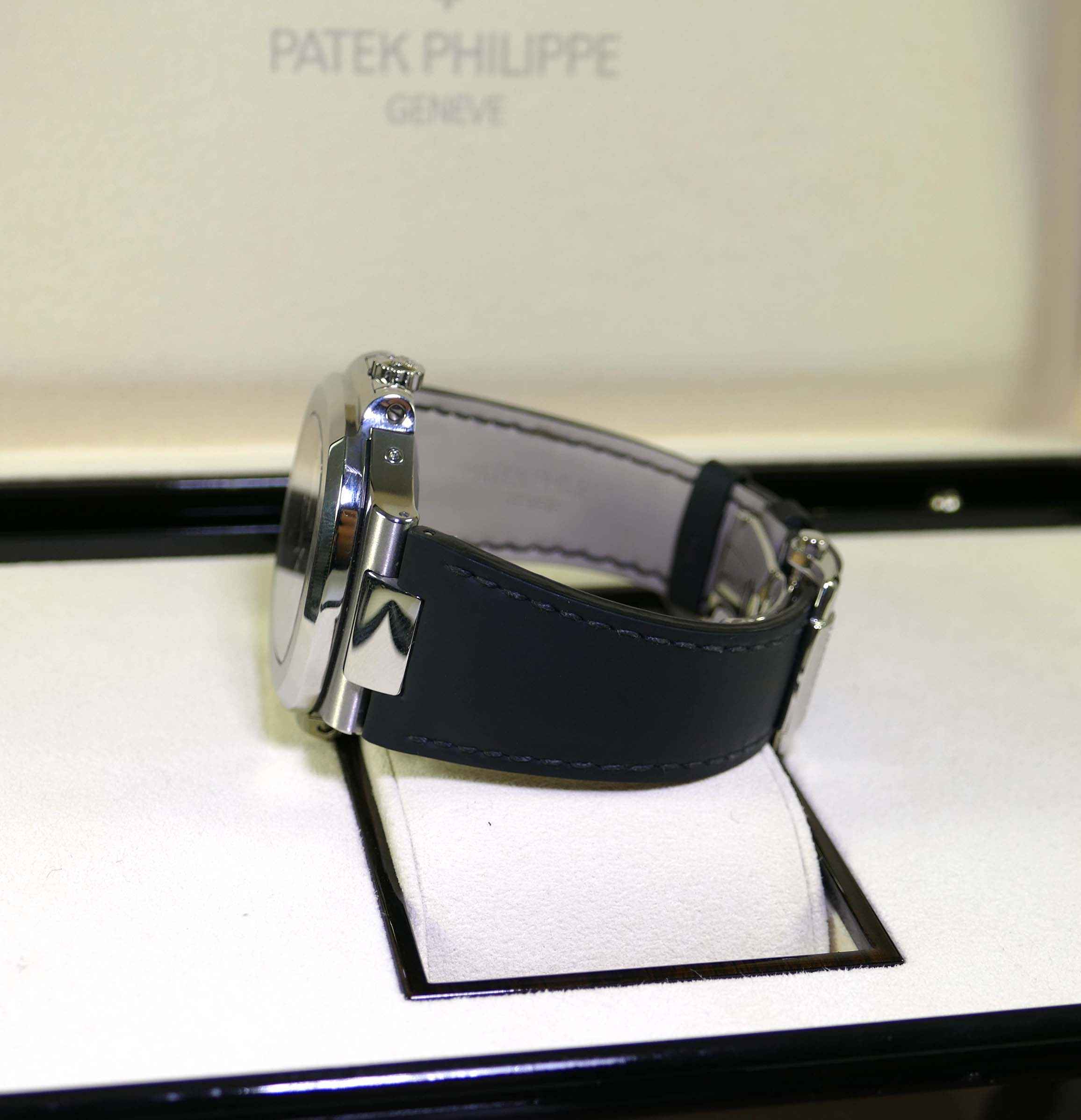 this patek philippe watch is in excellent condition and comes with its original box and papers dated april 2015. The strap is in near-mint condition and does not need to be replaced.