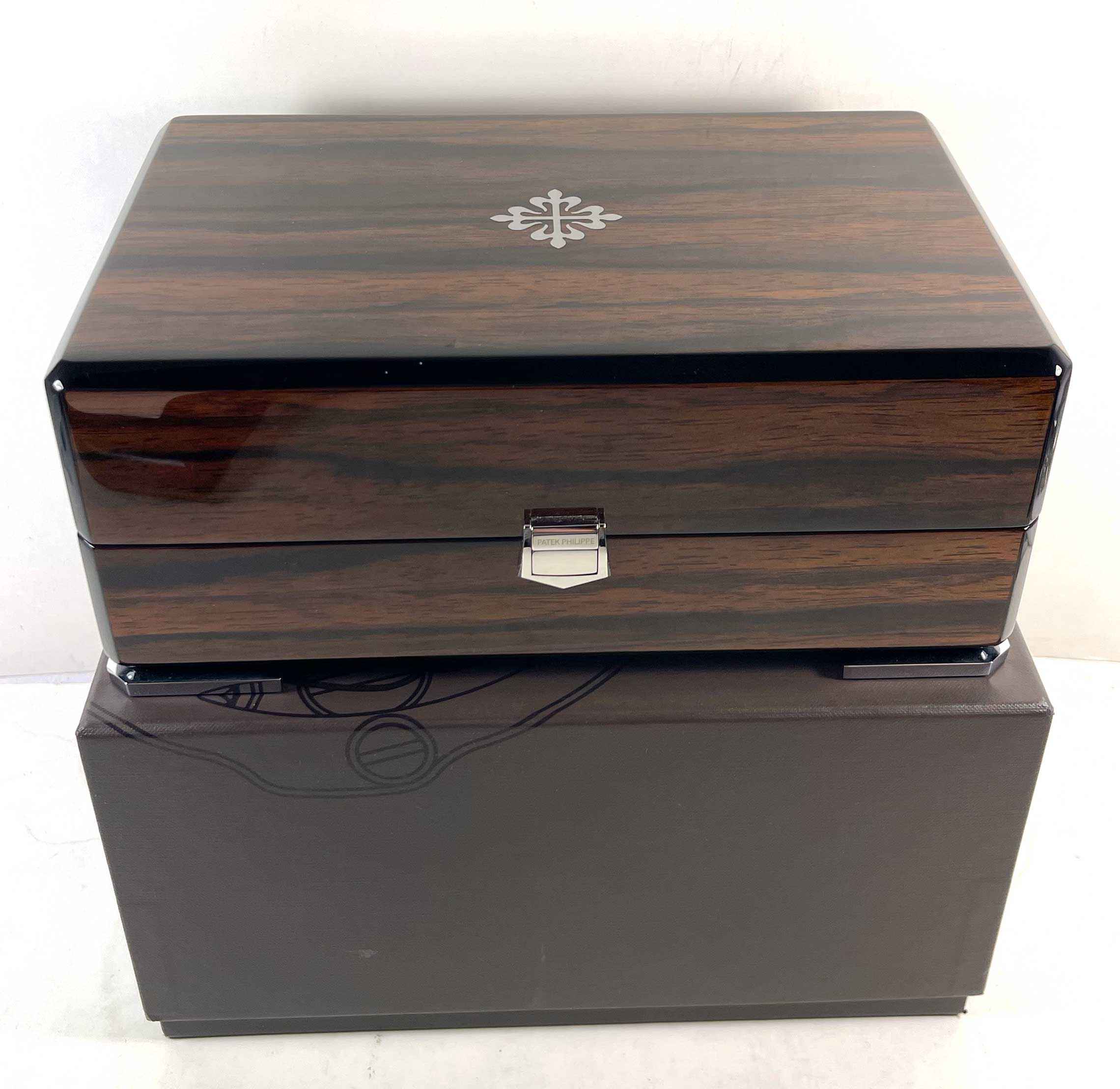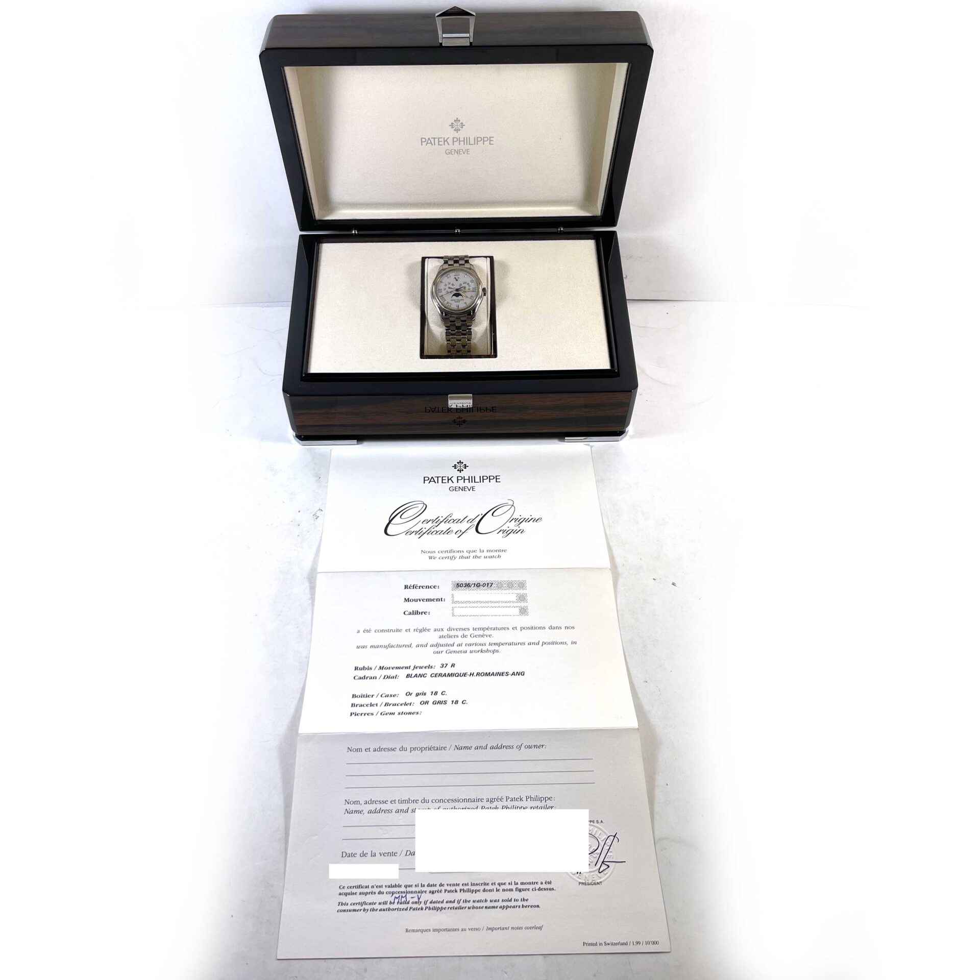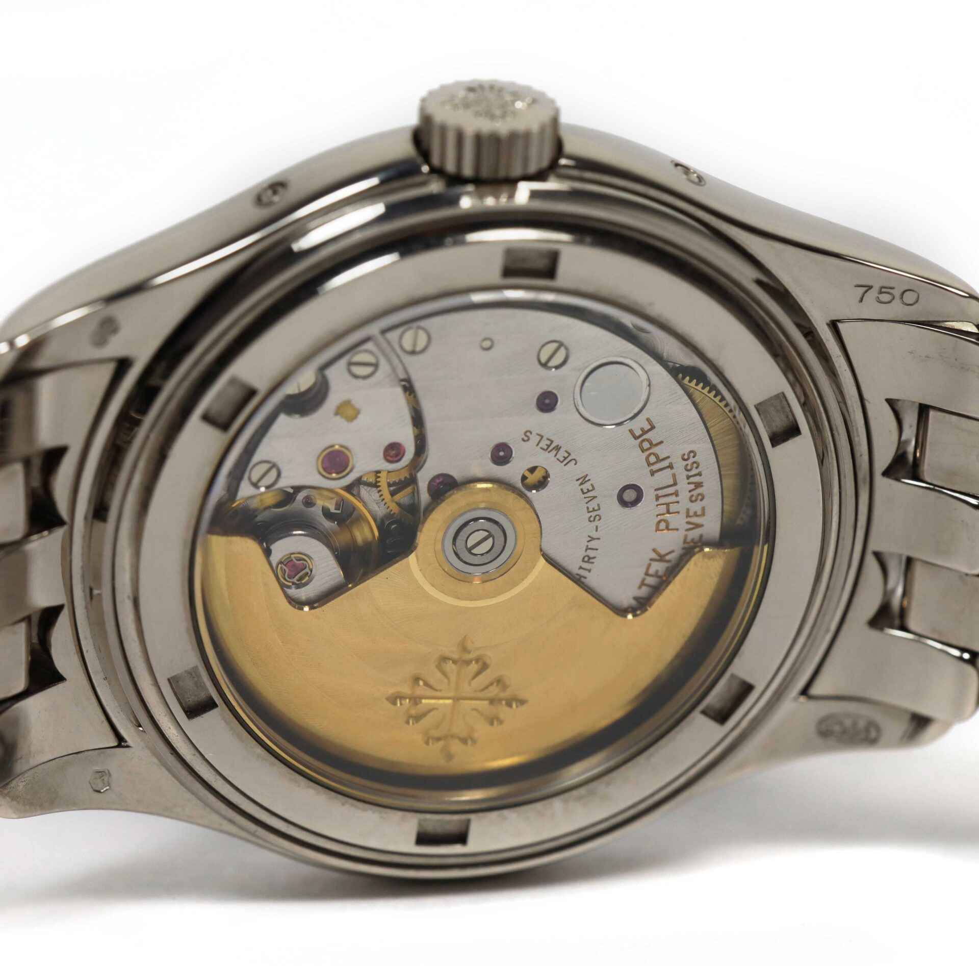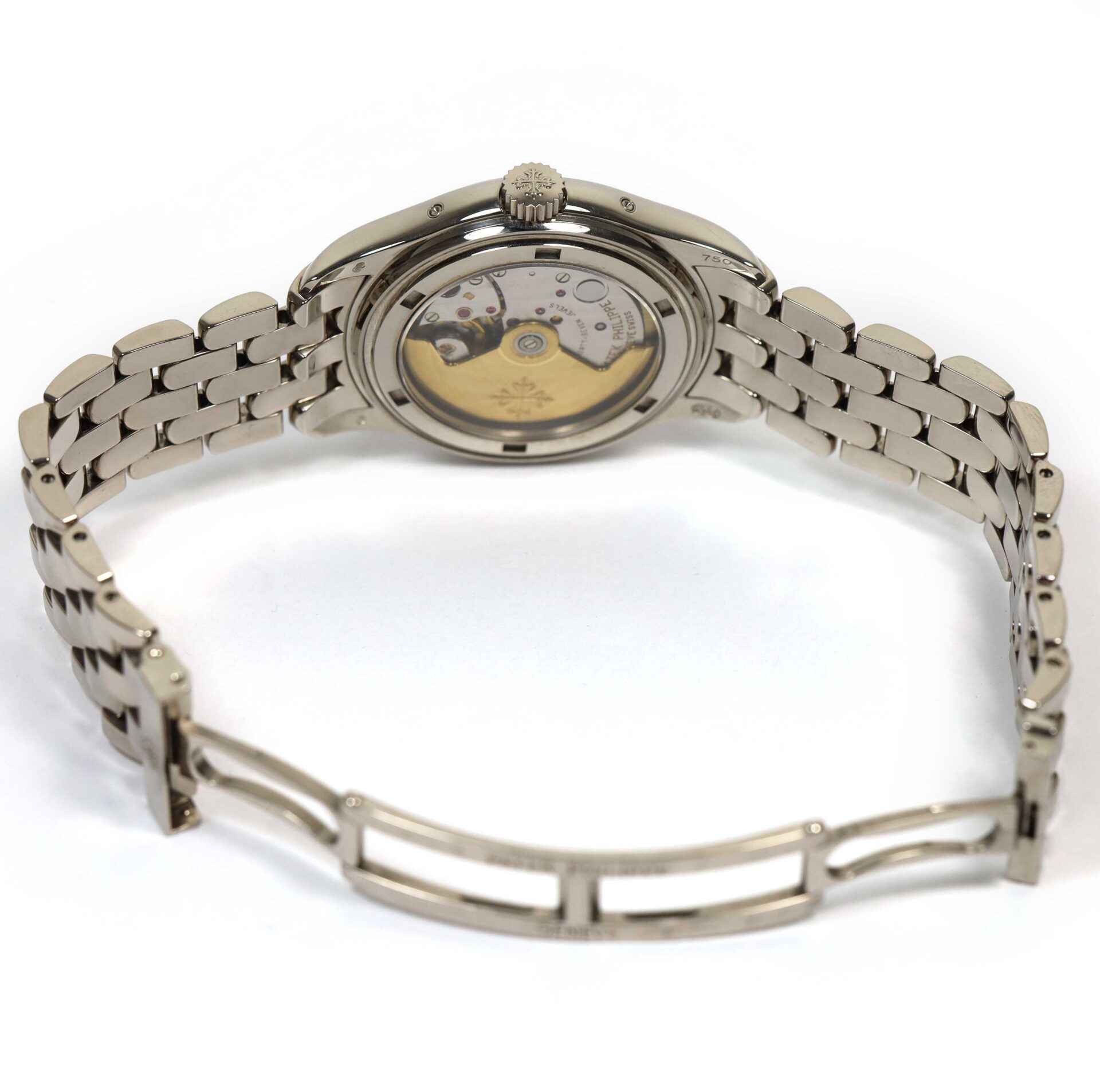 This Patek is in excellent condition and comes with its box and warranty paper as shown in the pictures attached. This watch features a 37mm white gold case that surrounds a silver dial and comes on an 18k white gold bra...