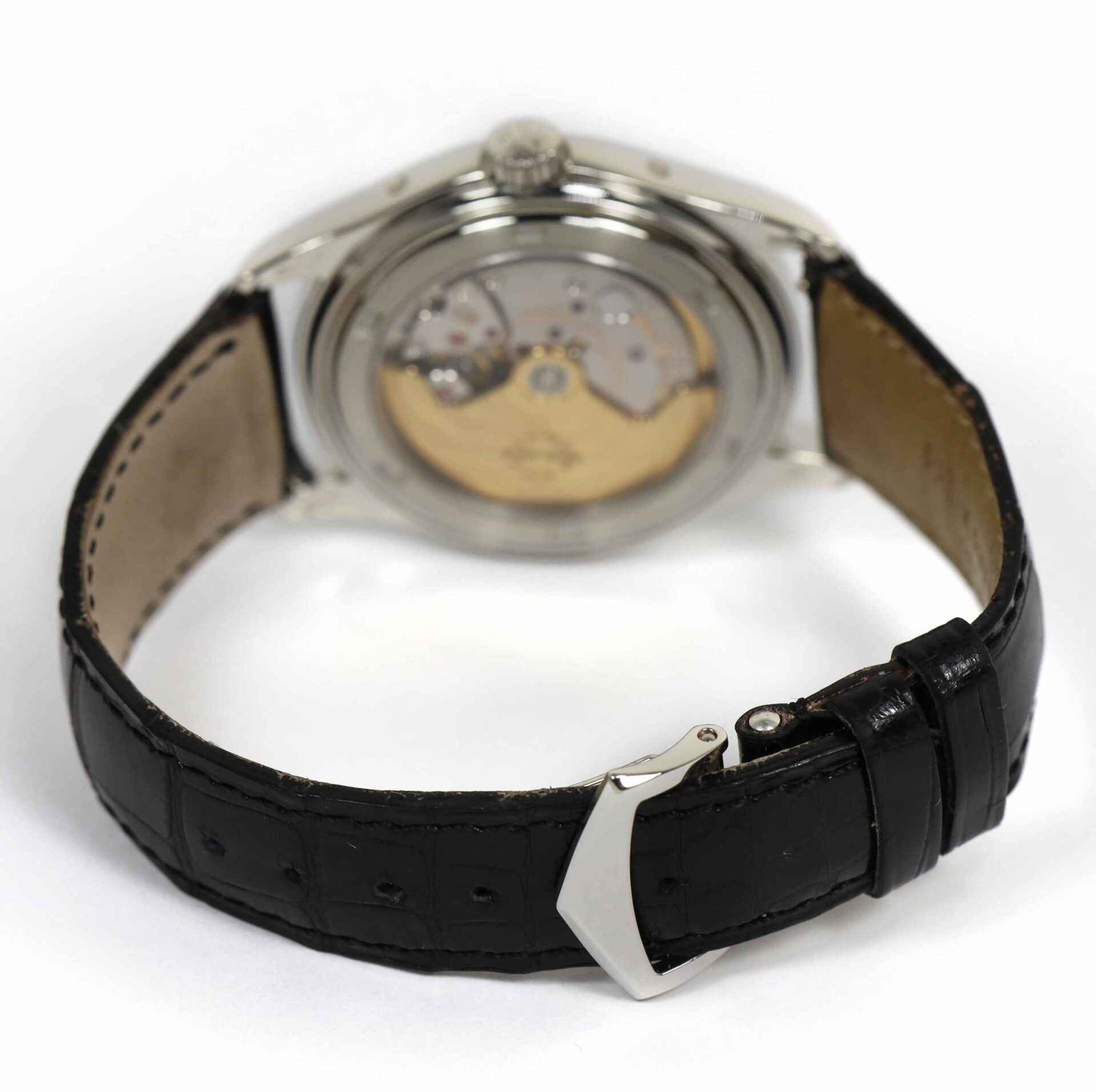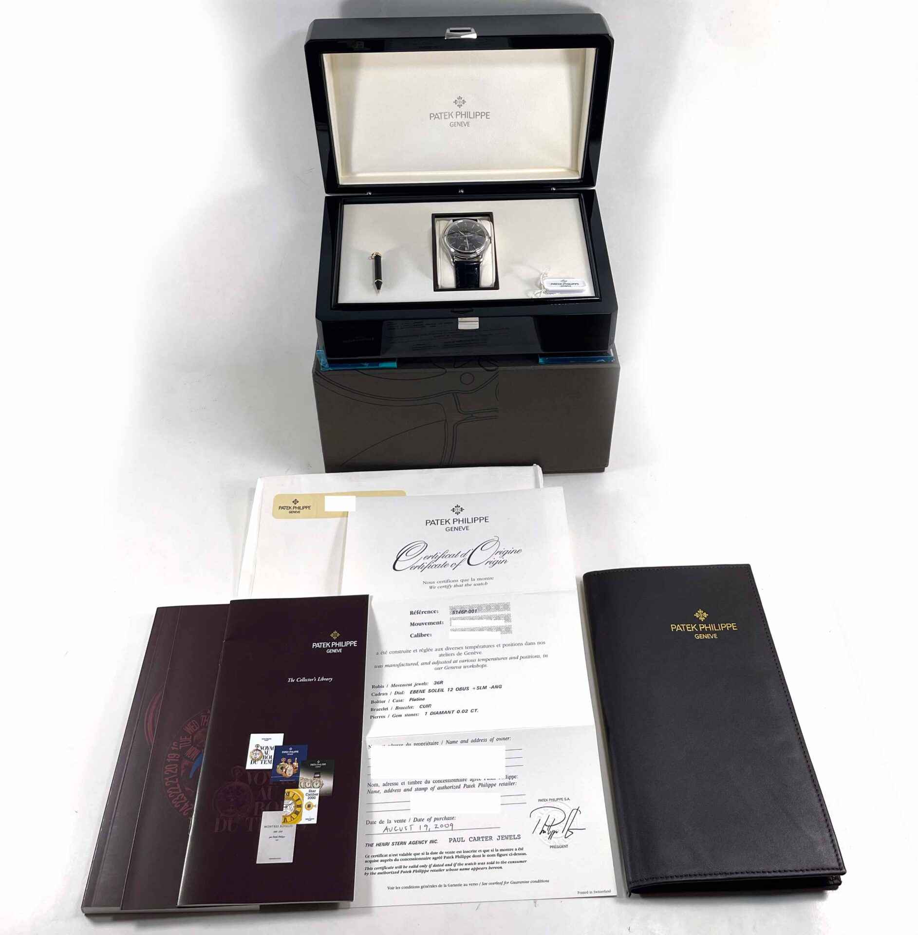 This Patek Philippe is in excellent condition and comes with its box, papers, Patek tool, hang tag, and warranty papers dated August 19th, 2009. This watch features a platinum case that surrounds a grey dial displaying th...