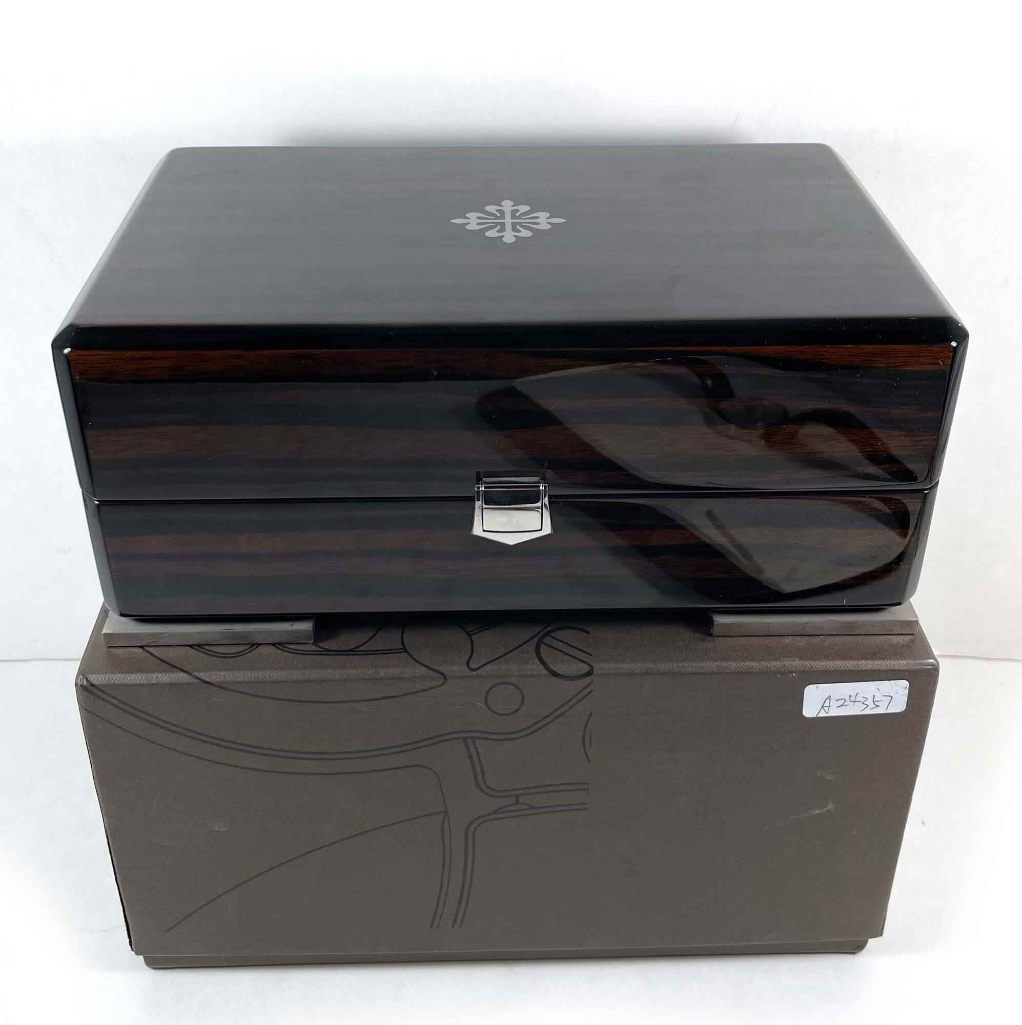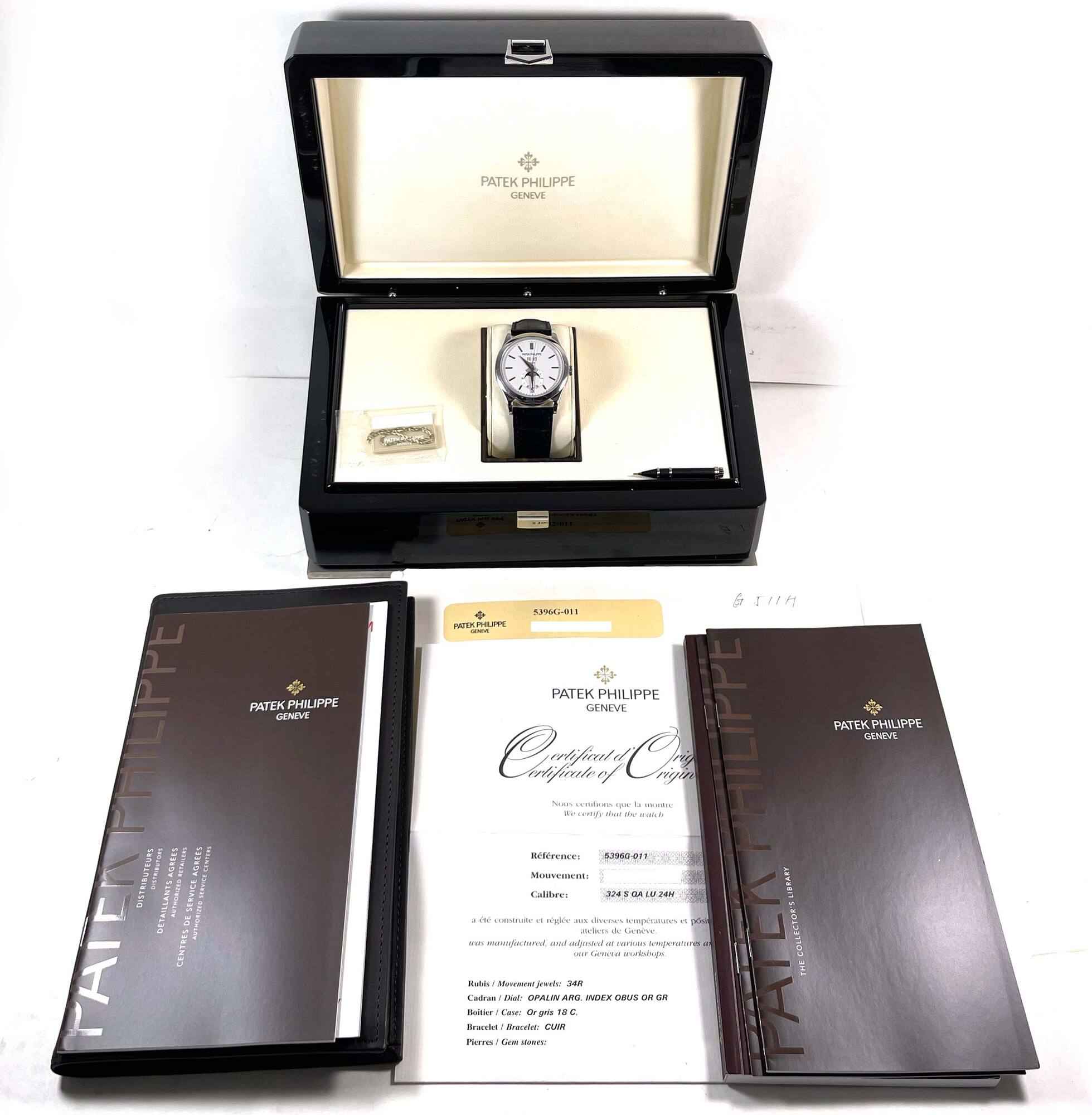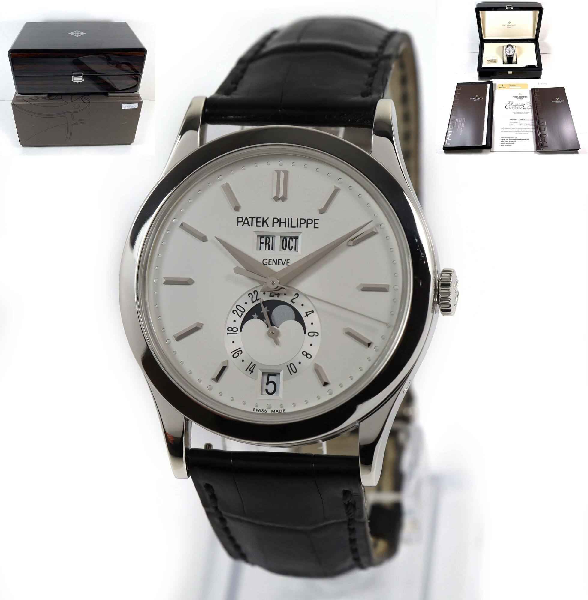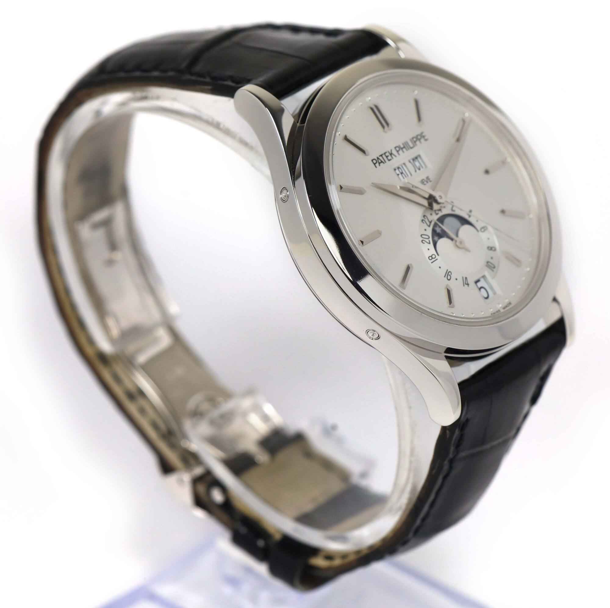THIS PATEK IS IN EXCELLENT CONDITION AND COMES WITH ITS BOX, BOOKLETS, PATEK TOOL, AND WARRANTY CARD DATED MAY 11TH, 2011. THIS WATCH FEATURES A 38.5MM 18K WHITE GOLD CASE SURROUNDING A SILVER DIAL AND COMES ON A BLACK ALLIGATOR STRAP WITH AN 18K WHITE GOLD...