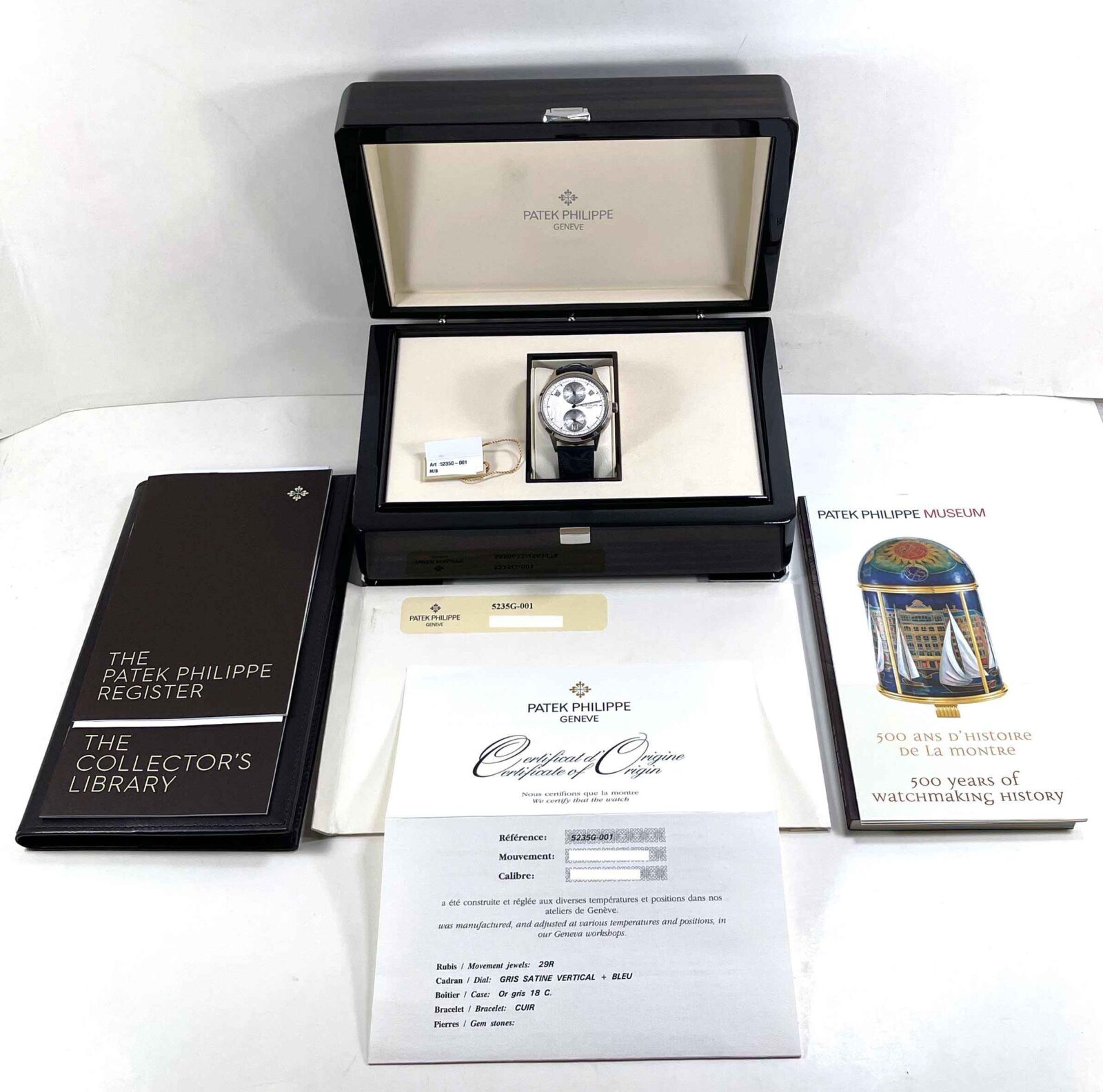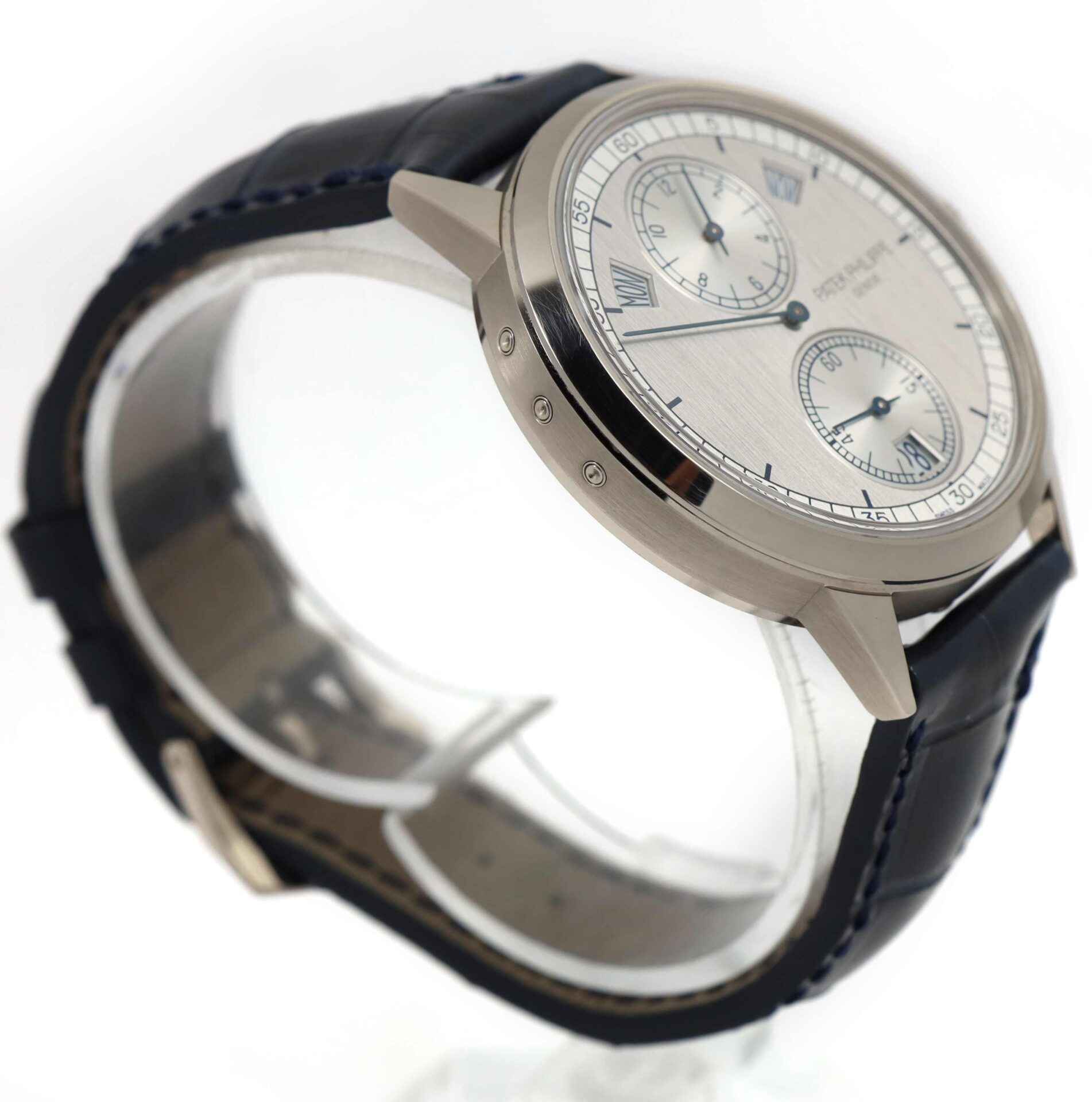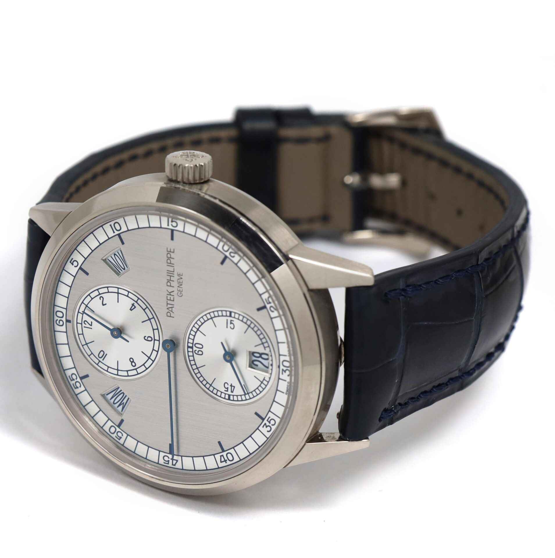 this patek philippe is in excellent condition and comes with its box, booklets, hang tag, and warranty paper dated october 11th, 2015. This watch is in stock and available to ship immediately!