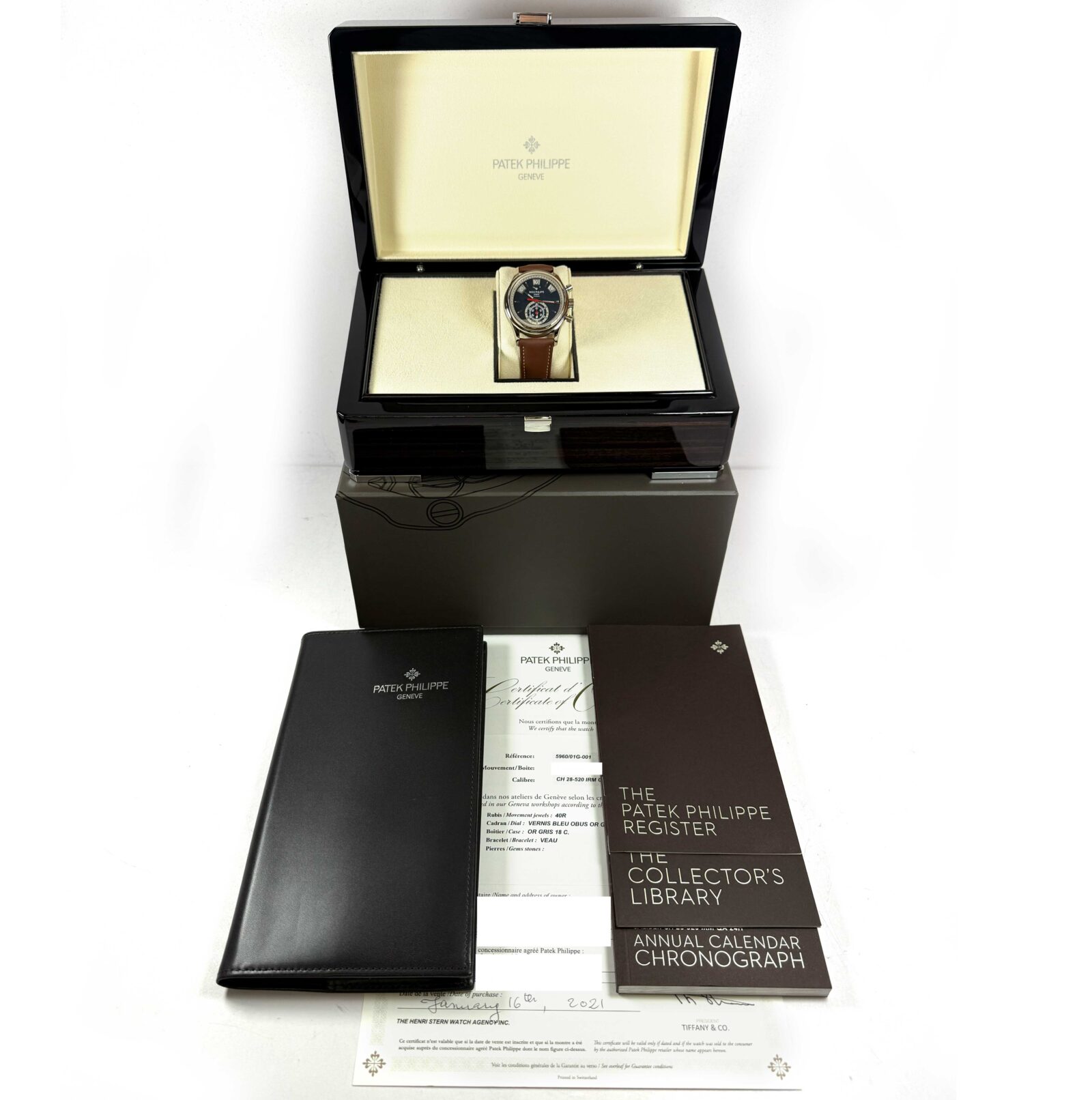 This Patek Philippe watch is new and comes with its box, booklets, and warranty paper dated January 16th, 2021 as shown in the pictures attached. This watch is in stock and available to ship immediately!