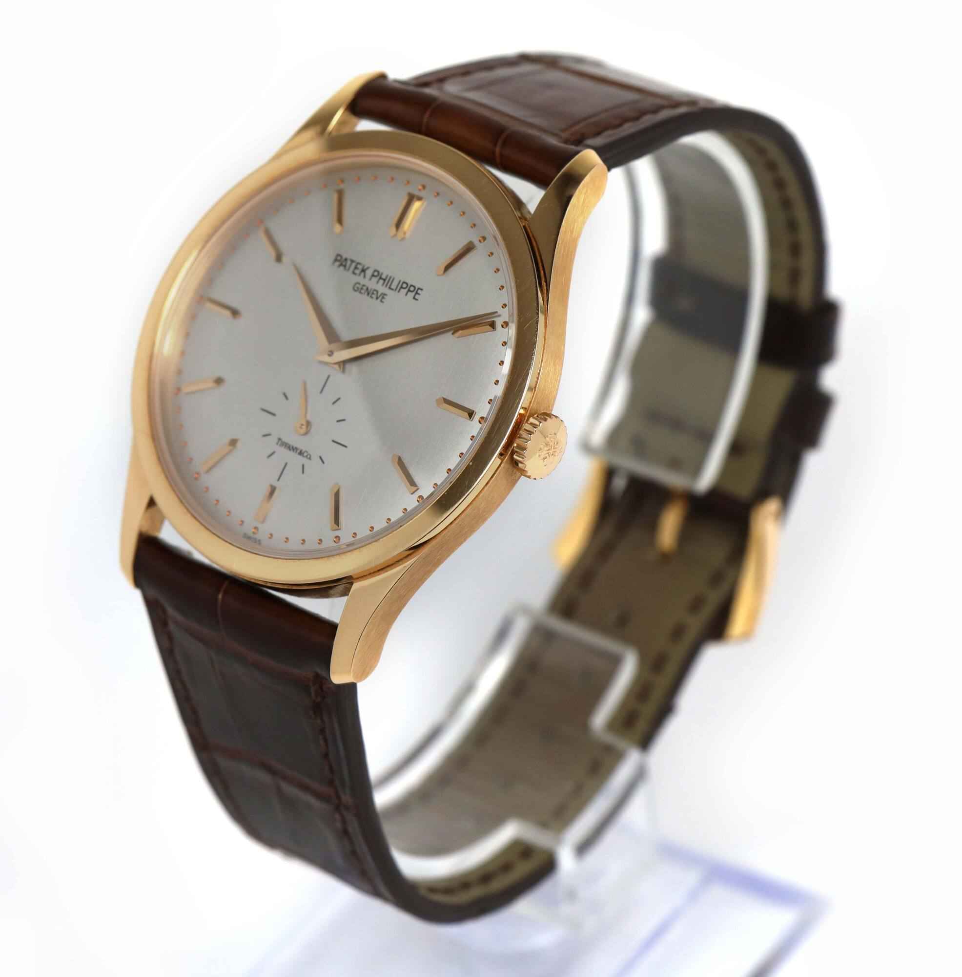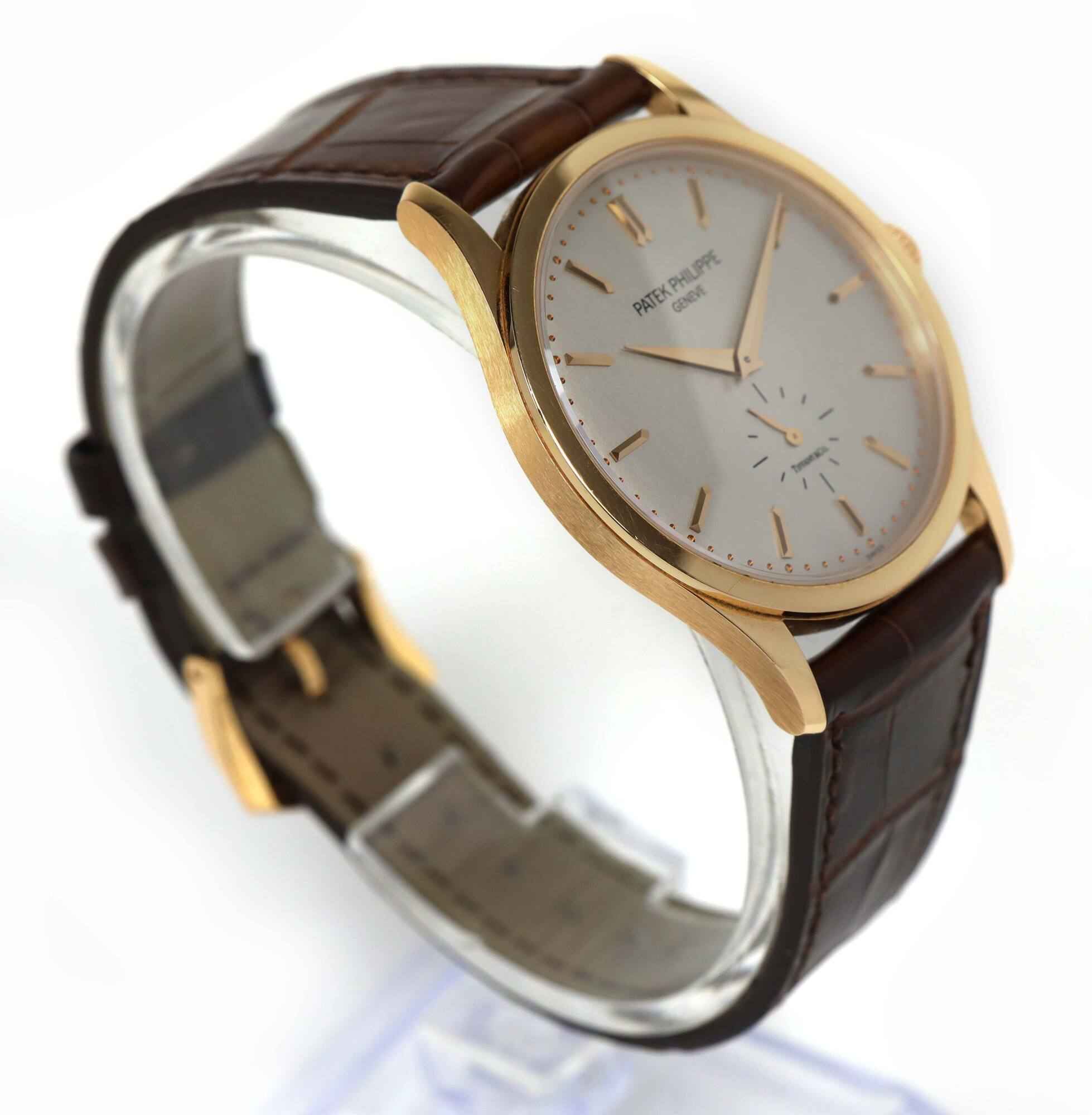 THIS PATEK PHILIPPE IS IN EXCELLENT OVERALL CONDITION WITH THE CASEBACK STICKER STILL ATTACHED AND SHOWS SOME MINOR SIGNS OF WEAR ON THE CASE AND BEZEL CONSISTENT WITH PREOWNED WATCHES. THIS WATCH FEATURES A 37MM 18K ROSE GOLD CASE THAT SURROUNDS A SILVER D...