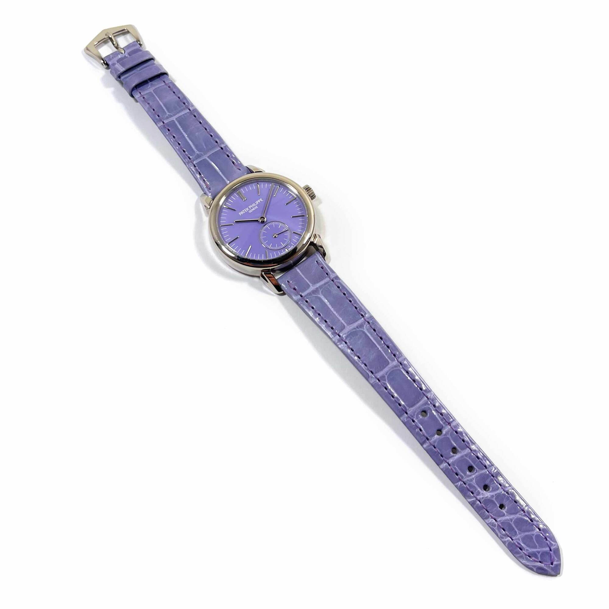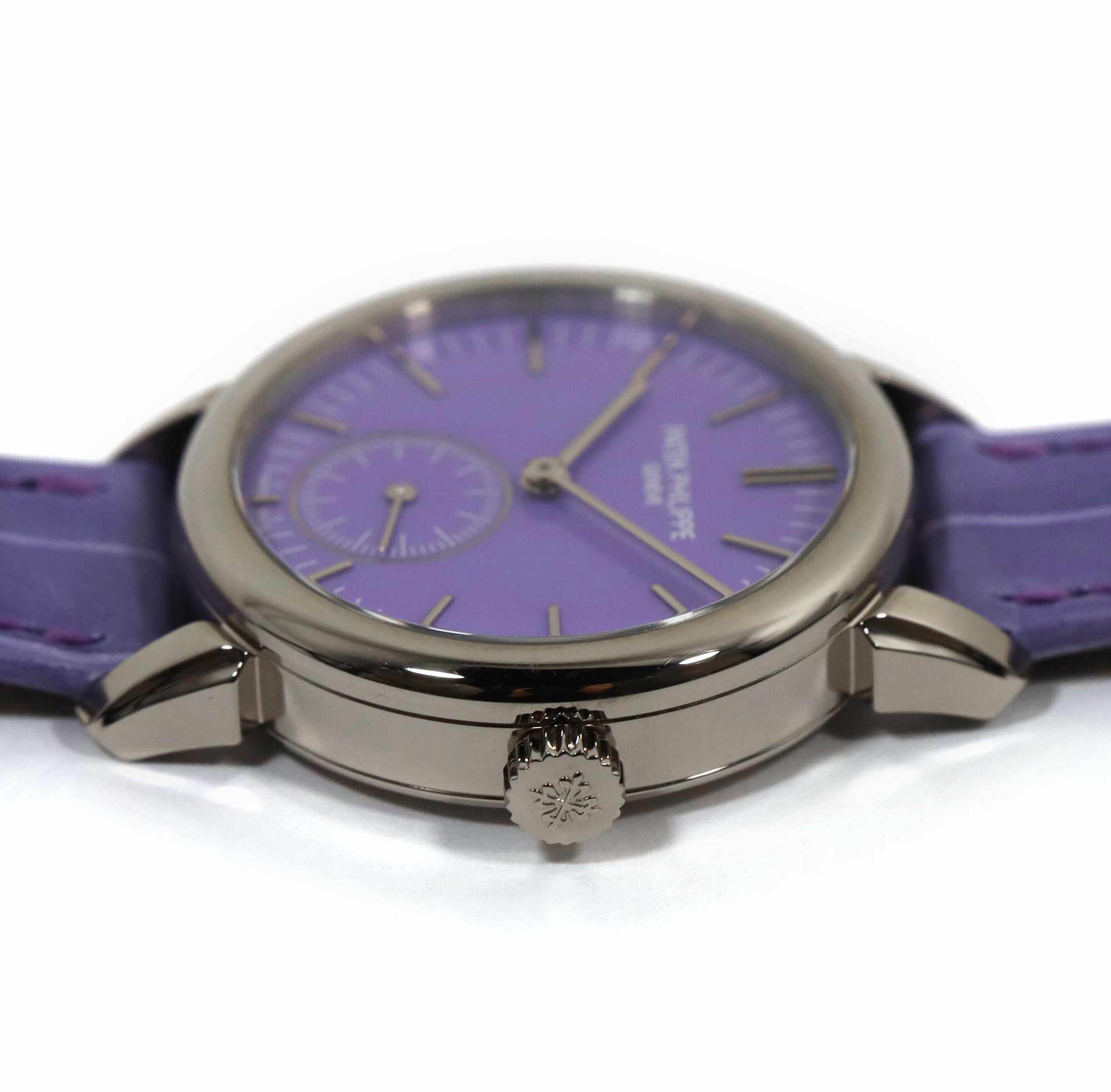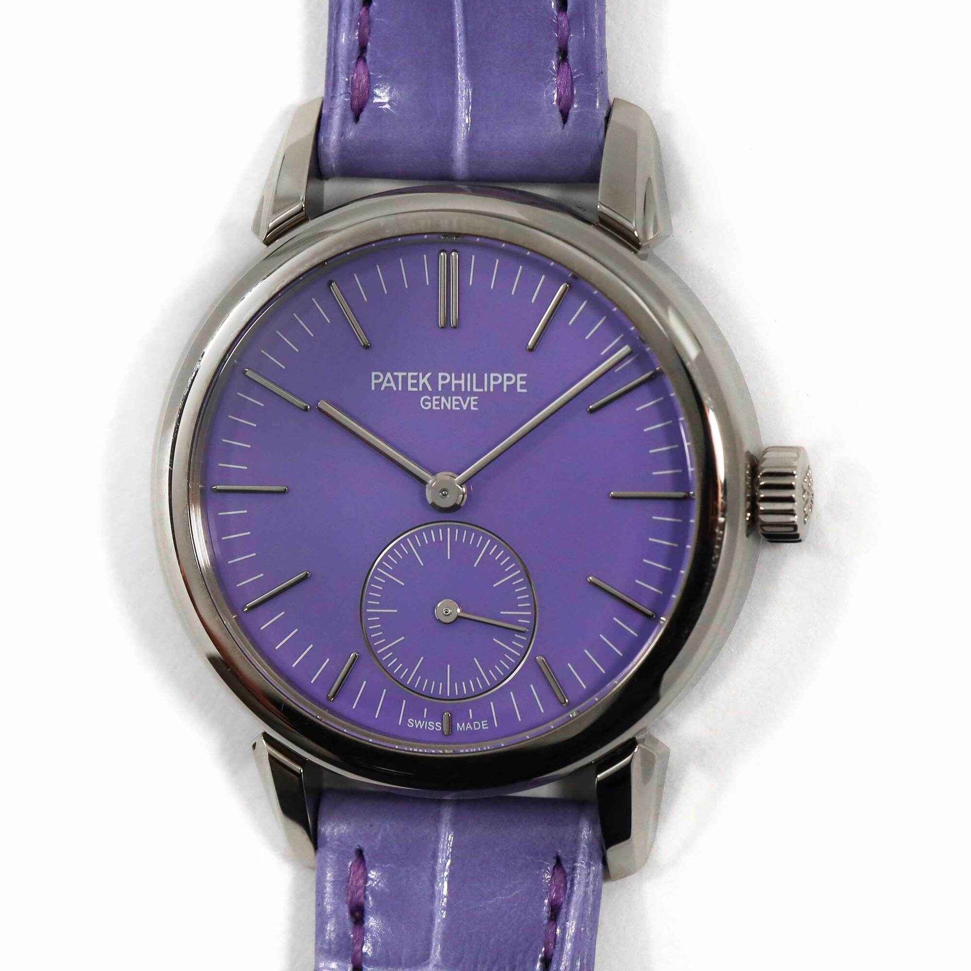 Read Morethese patek philippe watches are both unworn and come with the box and booklets as shown in the pictures attached. This set of “pair watches” were exclusively reserved for the watch art grand exhibition in tokyo 2023 while patek philippe created this limited series that were made available exclusively for the japanese market in late 2022. The 6127g watch features a 36mm white gold case that surrounds a blue dial and comes on a blue leather strap. The 7127g features a 31mm white gold case that surrounds a purple dial and comes on a purple leather strap. This pair of watches is in stock and available to ship immediately!