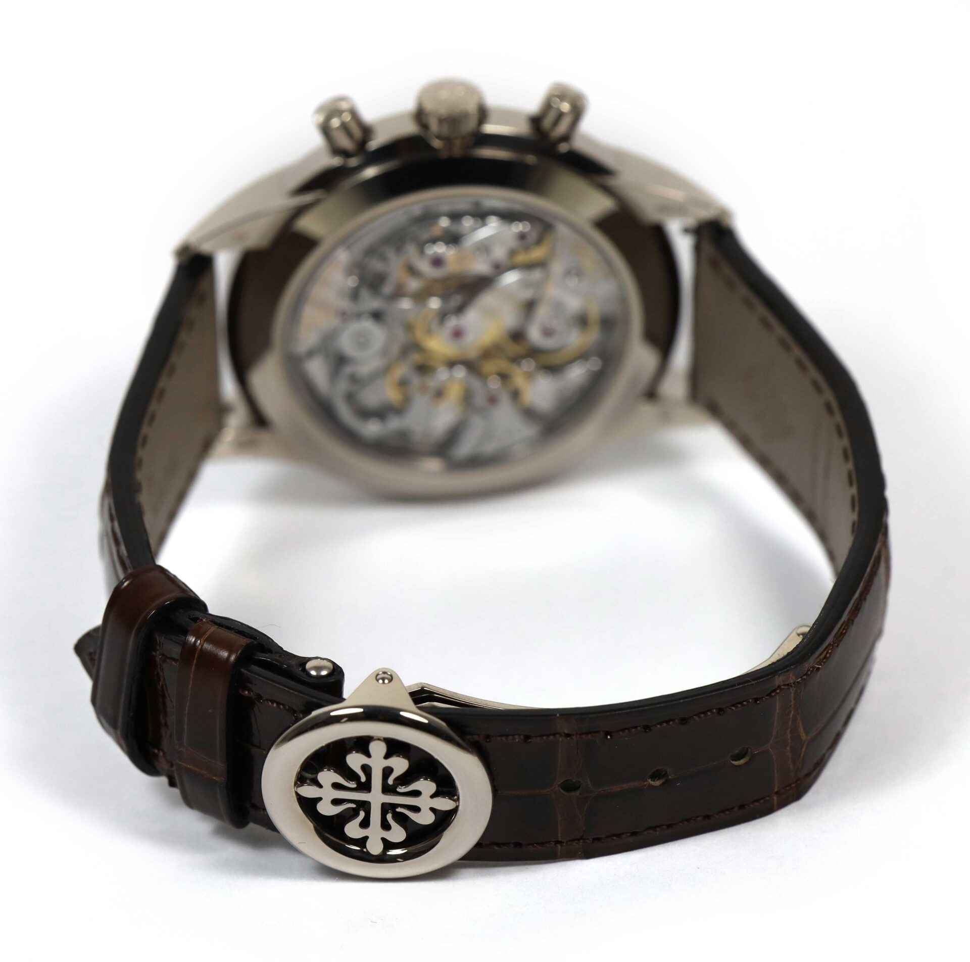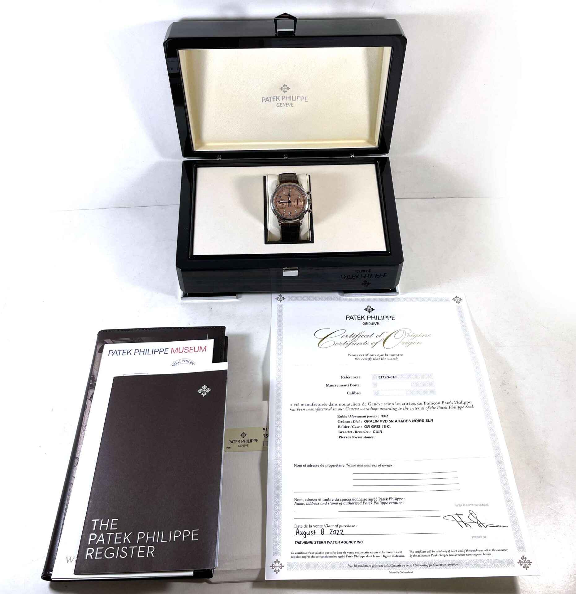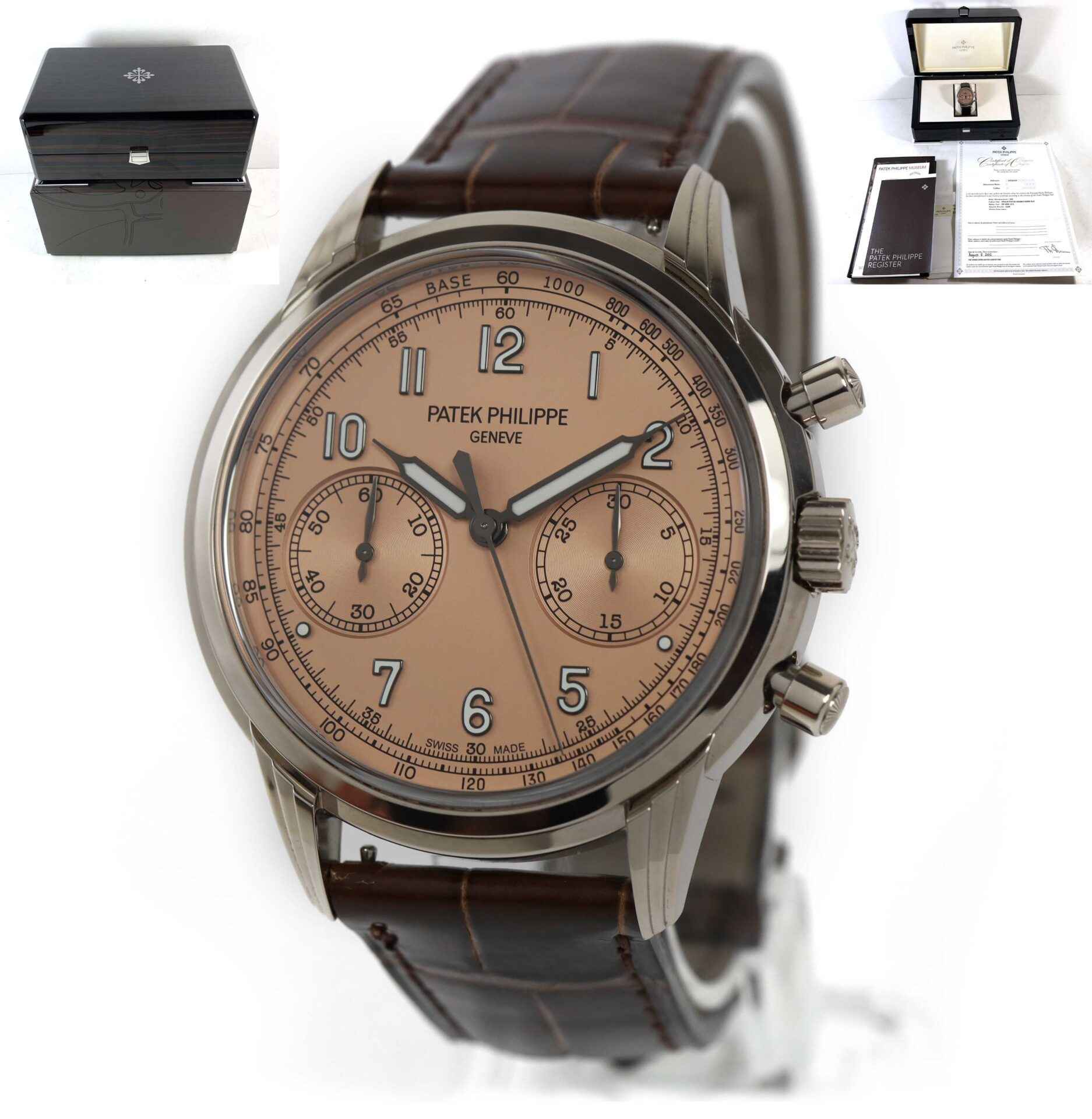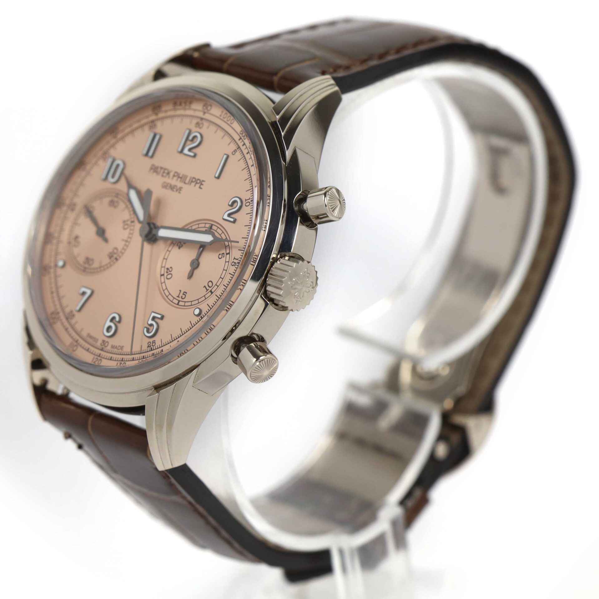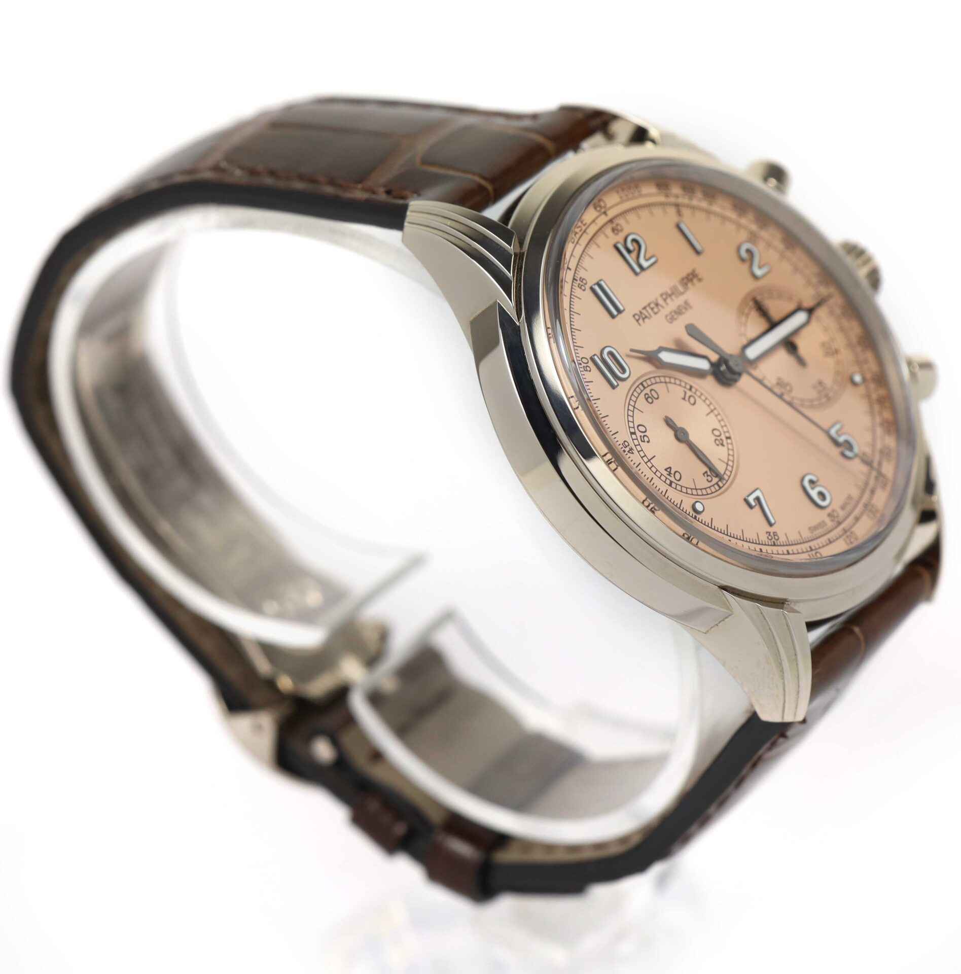 This Patek Philippe is in excellent condition and comes with its box, booklets, and warranty paper dated August 8th, 2022. This watch features a 41mm white gold case that surrounds a Rose-gilt opaline dial and comes on a...