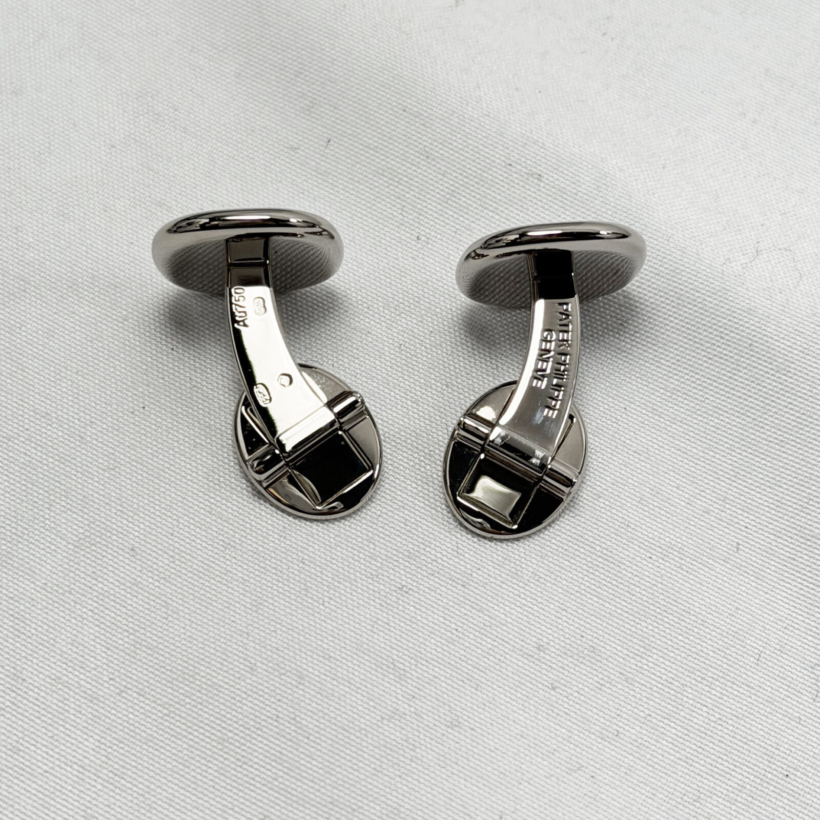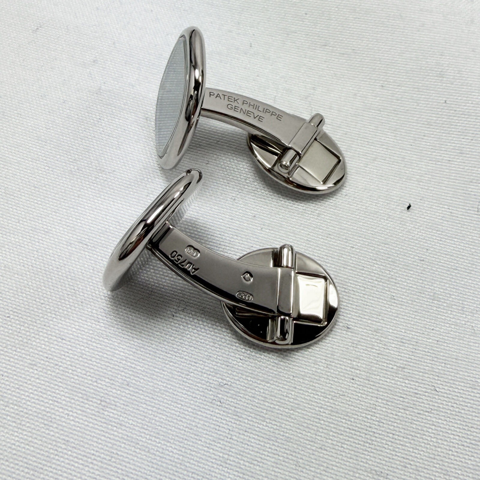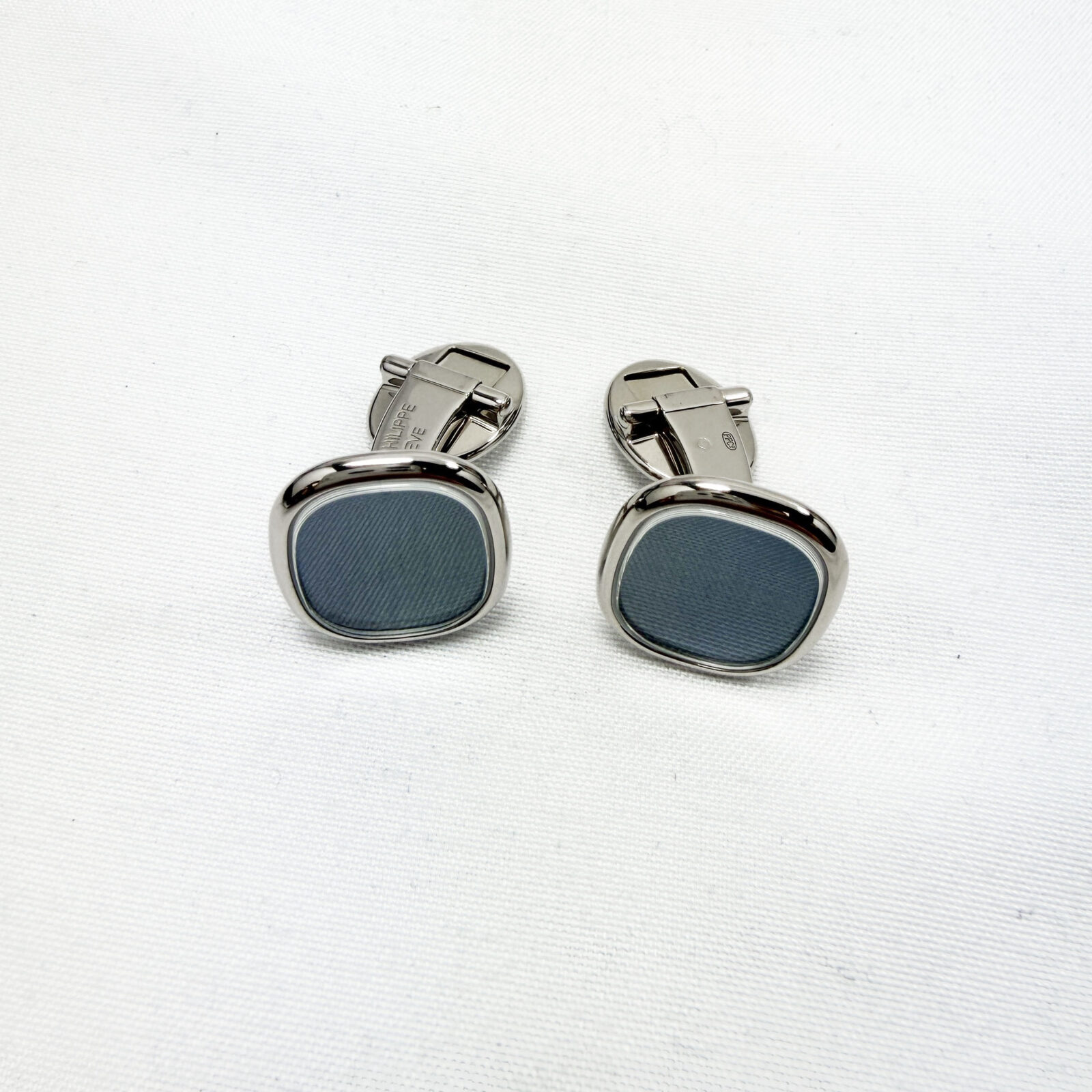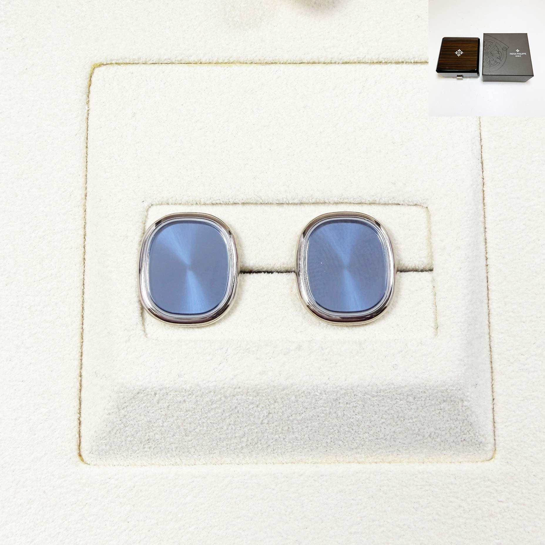 These Patek Philippe cuff links come with their original box. The photos shown are of the exact item being sold and accurately represent its condition. This item is in stock and ready to ship immediately!