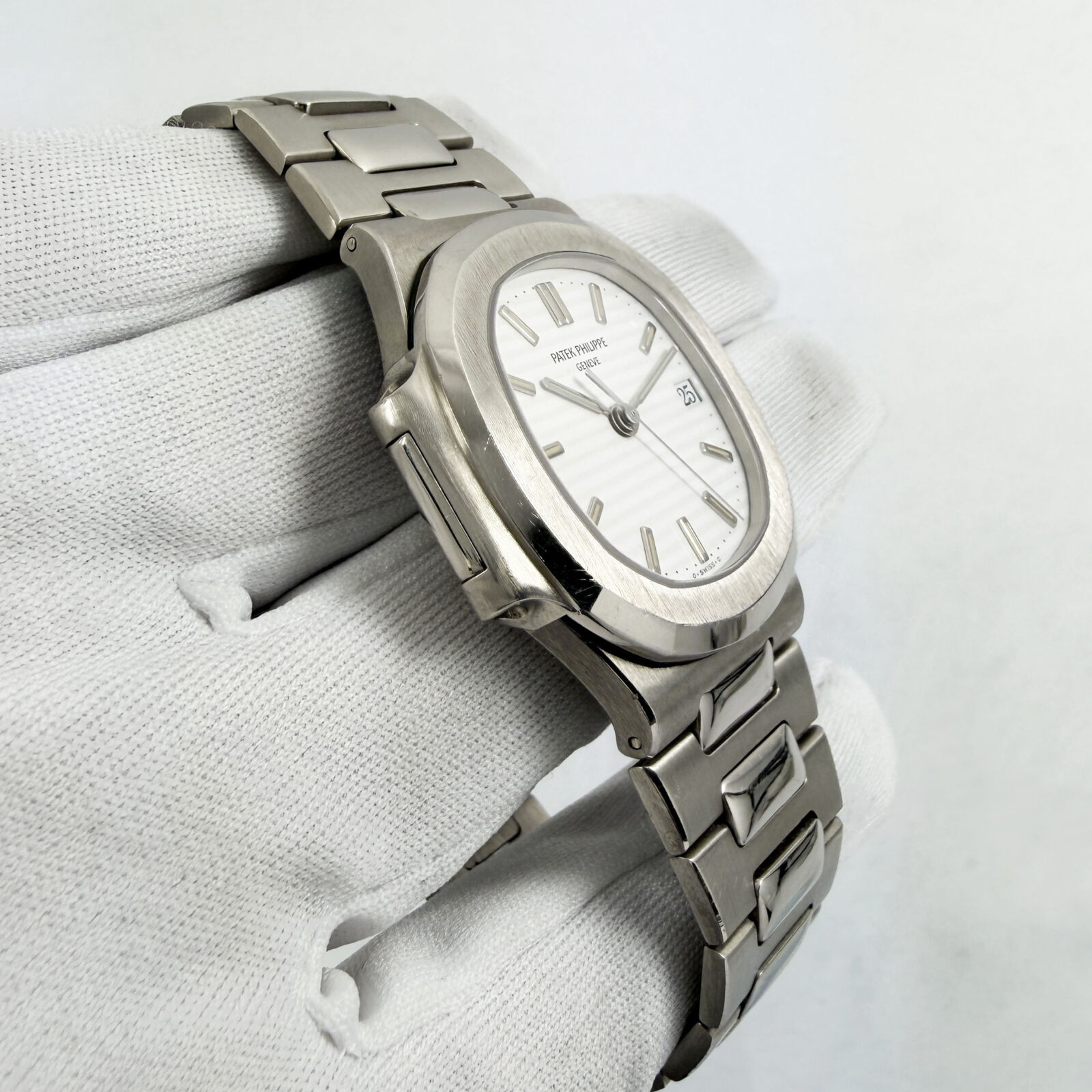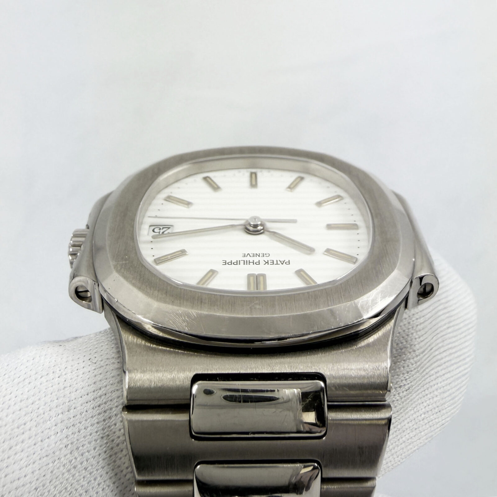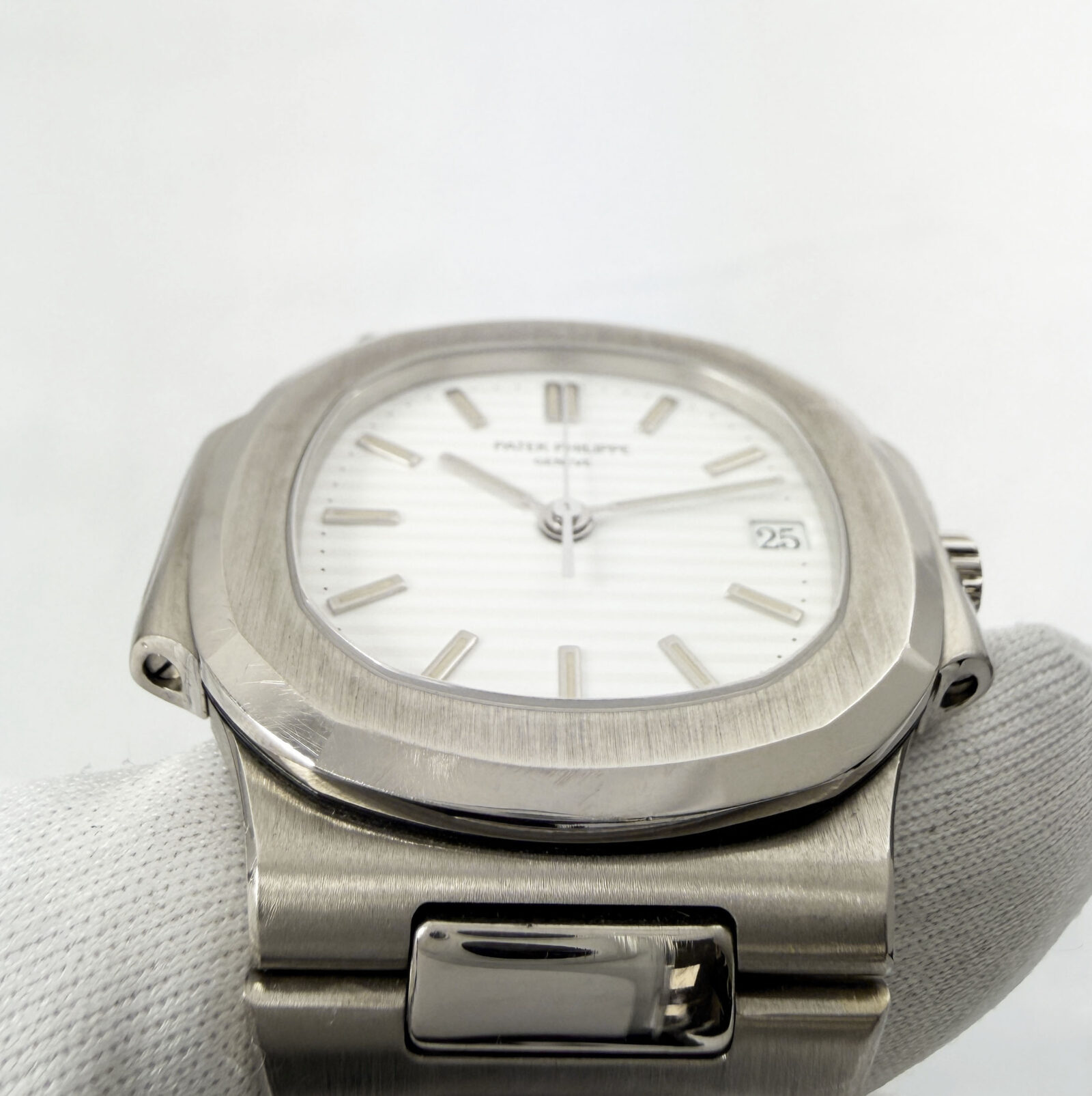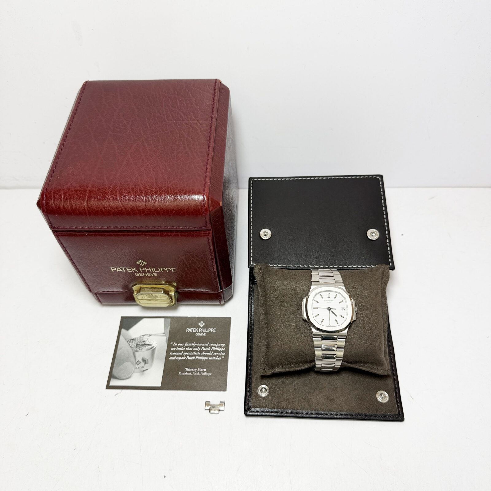 this patek philippe nautilus watch comes with its watch winder box, travel case, patek philippe service paper, and one extra link. This watch was fully serviced by patek philippe on october, 2025. The photos shown are of the exact watch being sold and accurately represent its condition. This watch is in stock and ready to ship immediately!