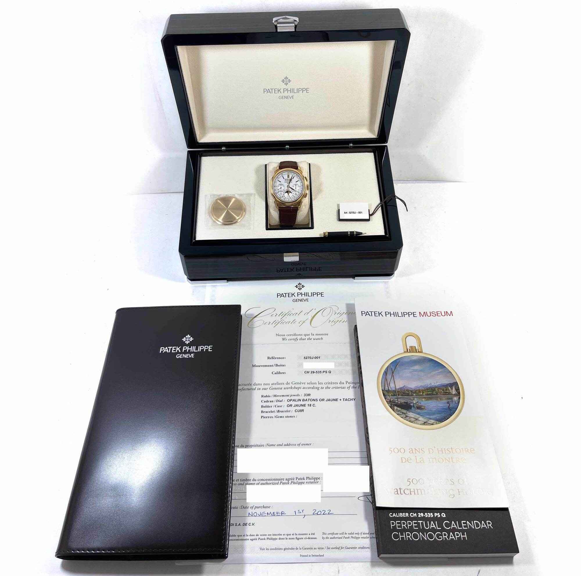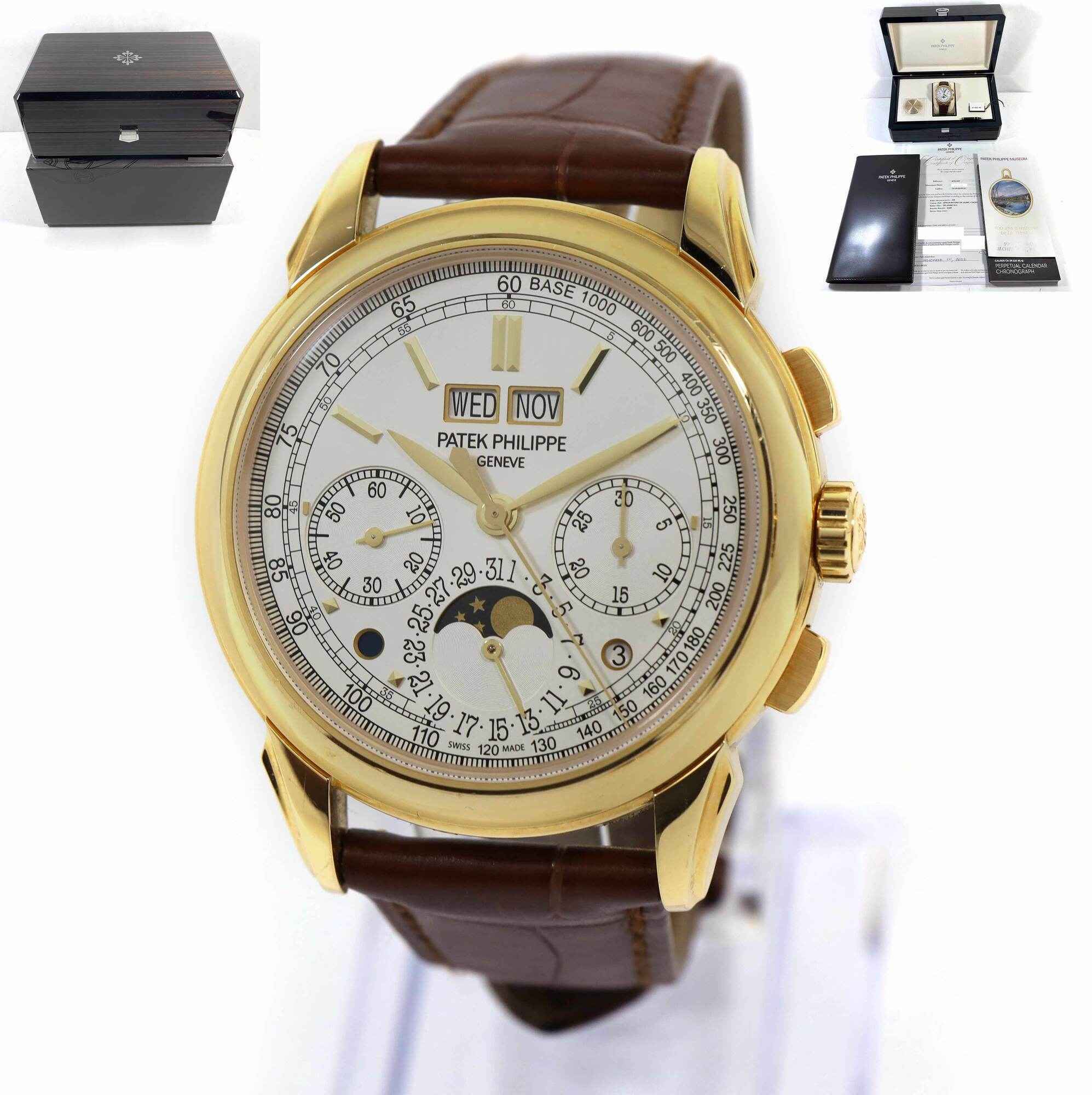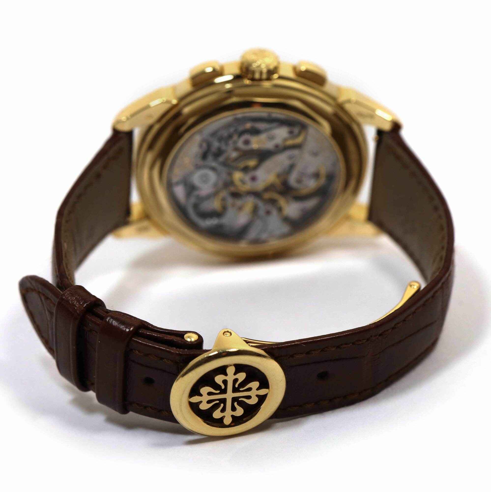 Read Morethis patek philippe is in excellent overall condition and shows some light wear on the case consistent with preowned watches. This comes with its box, booklets, hang tag, patek tool, one additional 18k yellow gold solid caseback, and warranty paper dated november 1st, 2022 as shown in the pictures attached. This watch features a 41mm 18k yellow gold case that surrounds a silver dial and comes on a brown alligator strap with an 18k yellow gold calatrava cross deployant buckle. The watch functions include hours, minutes, small seconds, date, chronograph, day, month, moon phase and perpetual calendar. This watch is in stock and available to ship immediately!