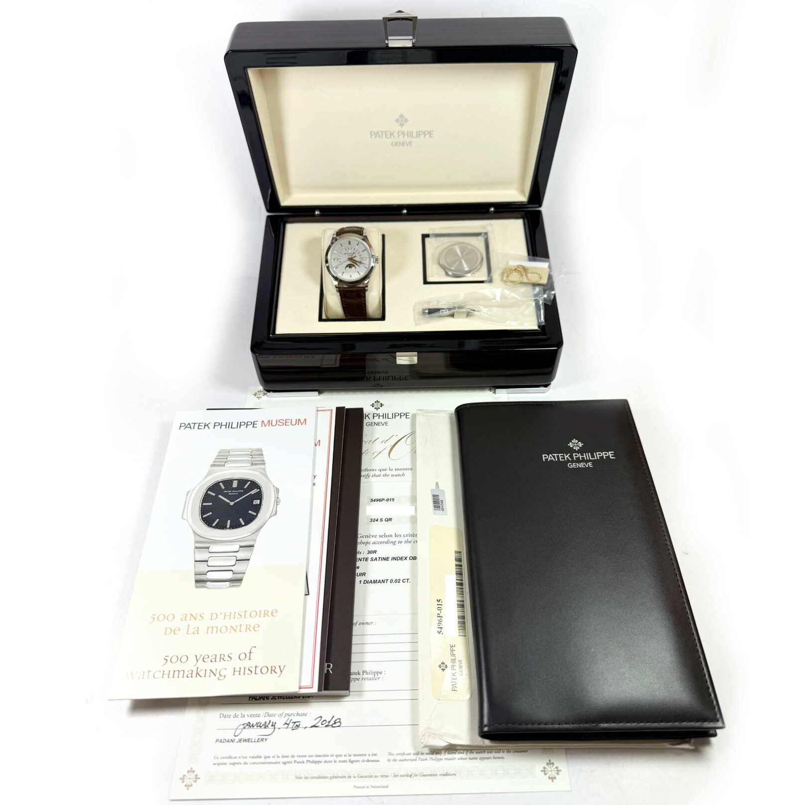 this patek philippe watch is in excellent condition and comes with its box, booklet, hang tag, patek philippe tool, solid caseback, and warranty paper dated january 4th, 2018 as shown in the pictures attached. This watch is in stock and available to ship immediately!