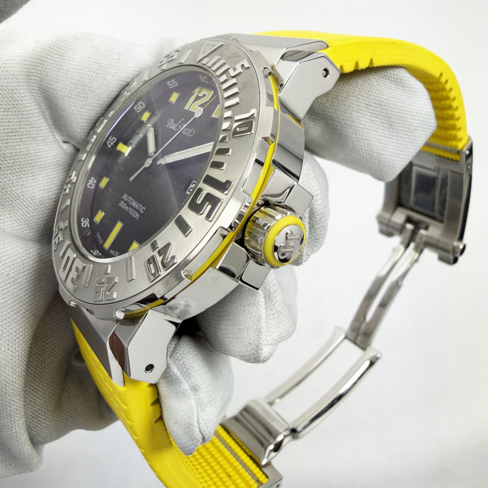 This Paul Picot watch comes with its box, extra link, and warranty paper. The photos shown are of the exact watch being sold and accurately represent its condition. This watch is in stock and ready to ship immediately!