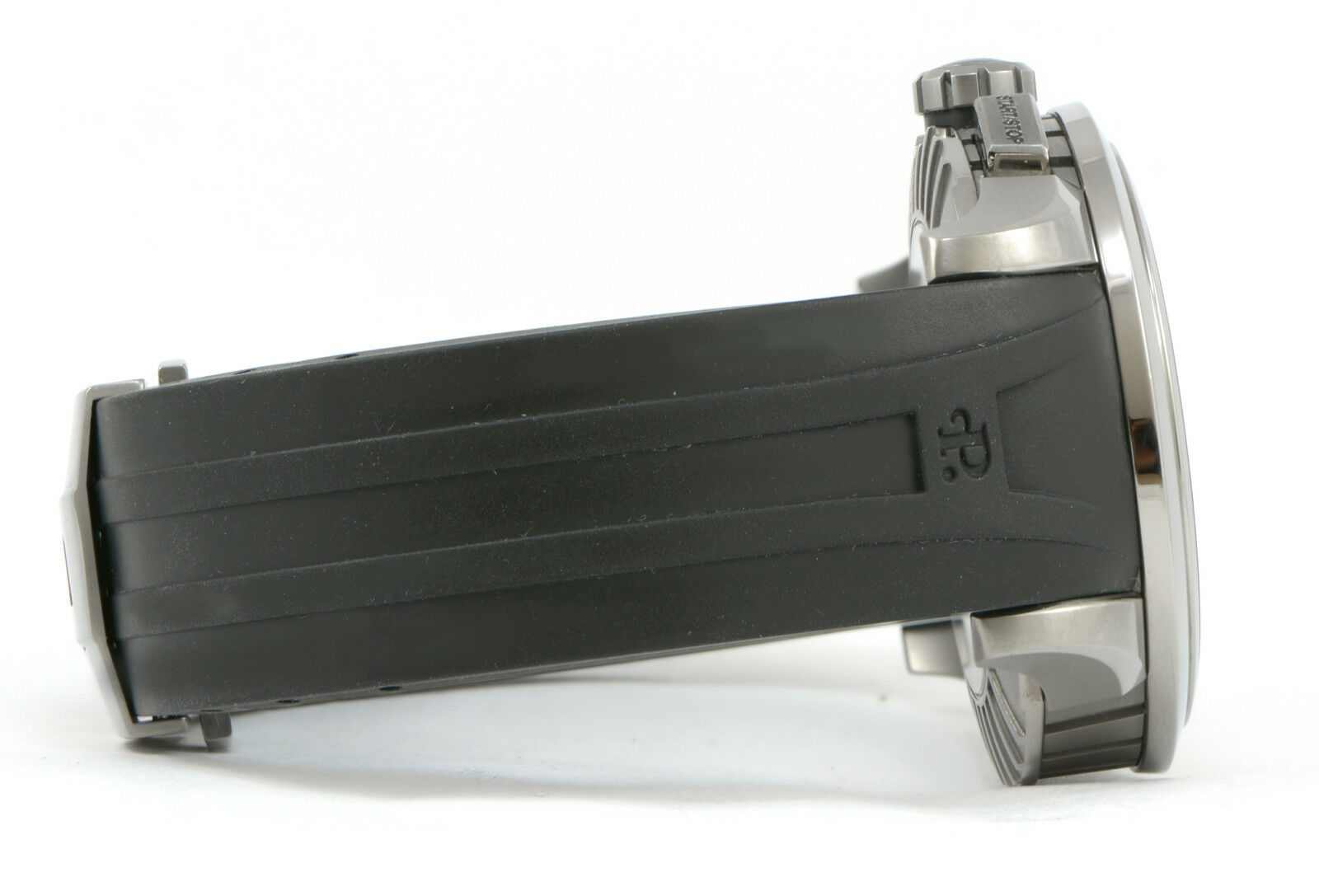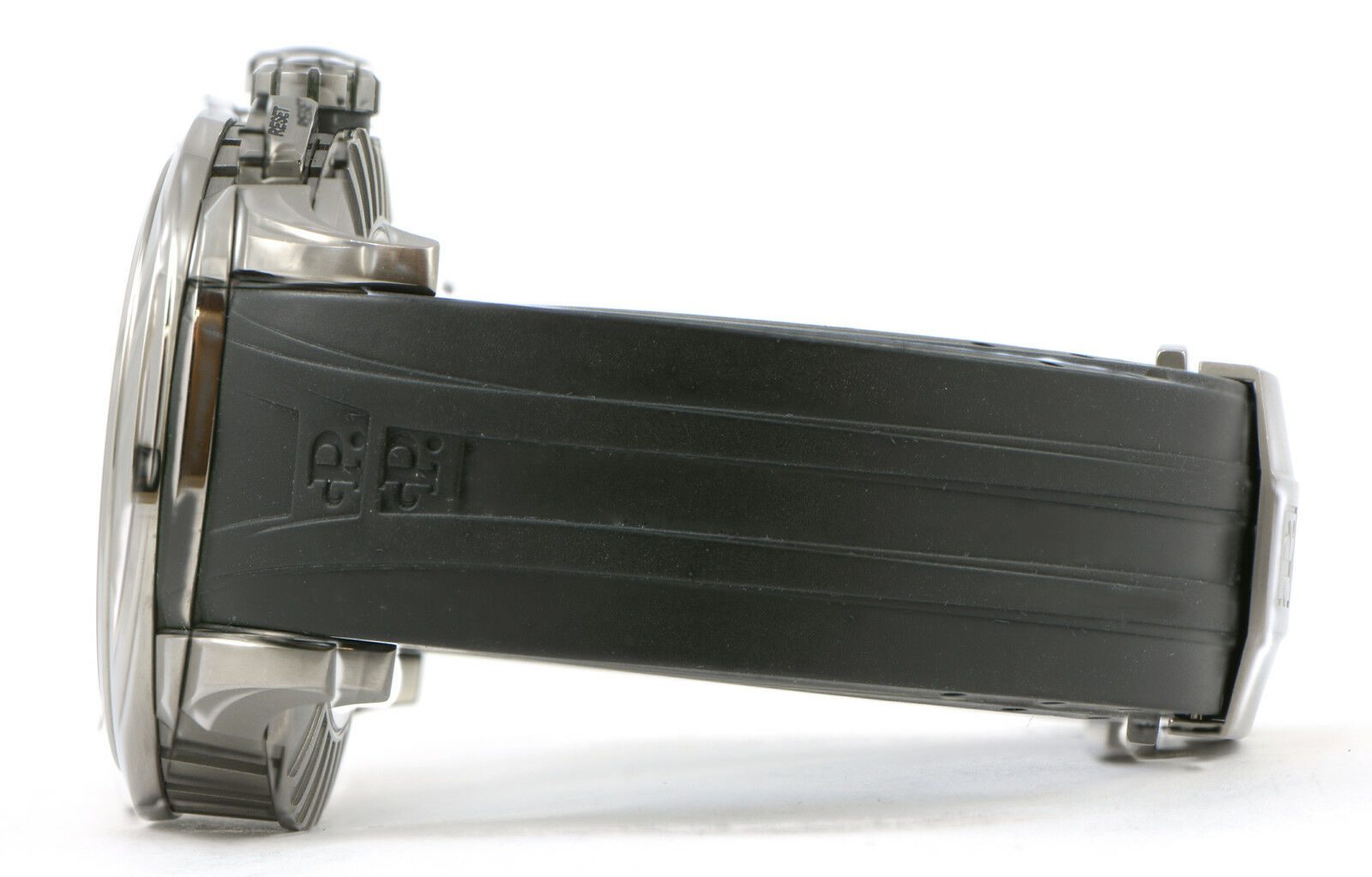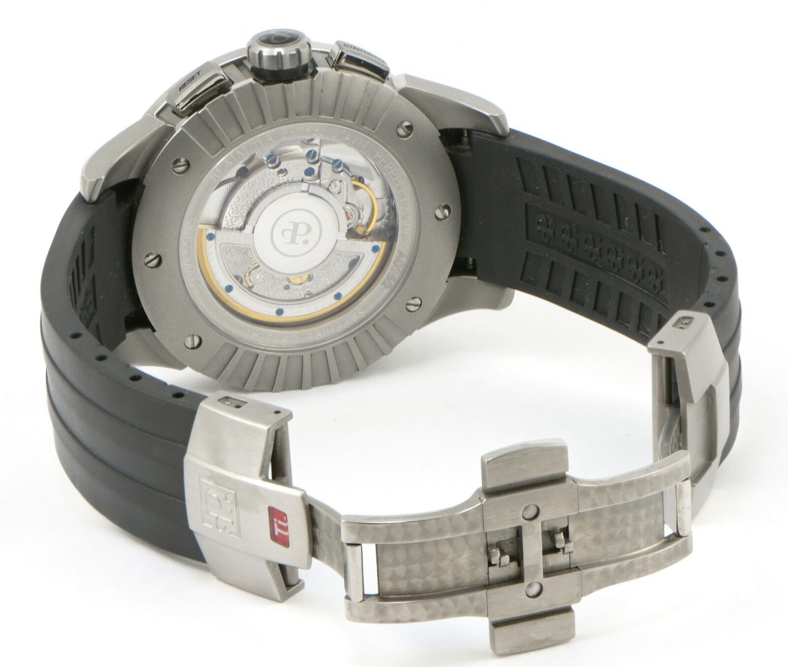 condition: pre-owned gender: men’s watches band: rubber deployment watches box: original box watches brand: perrelet watches case diameter (mm): 43mm watches caseback: exhibition watches crystal: sapphire watches dial: black watches functions: date/chronograph watches movement: automatic watches papers: no original papers watches series: titanium big date watches warranty: 12-month tns diamonds warranty