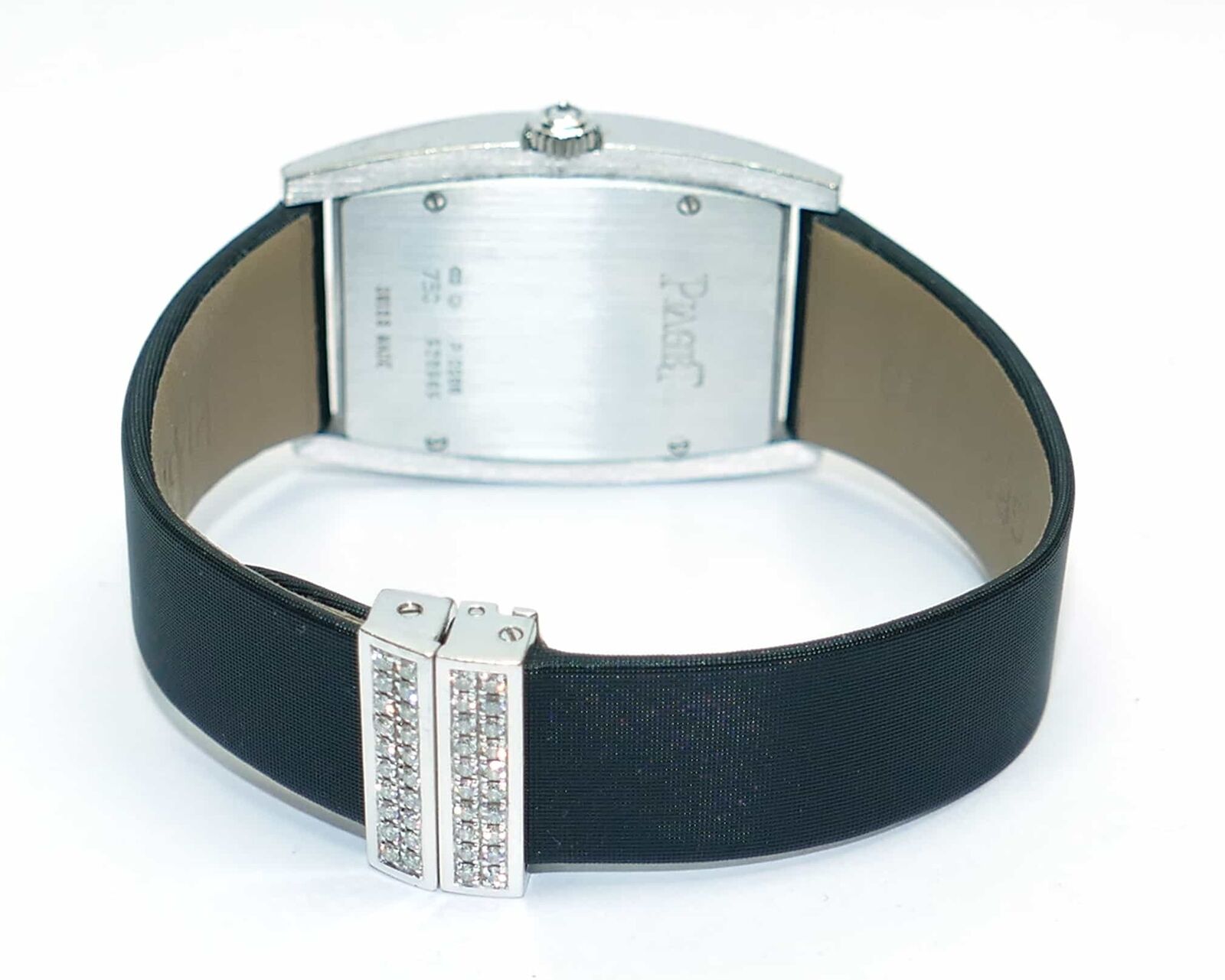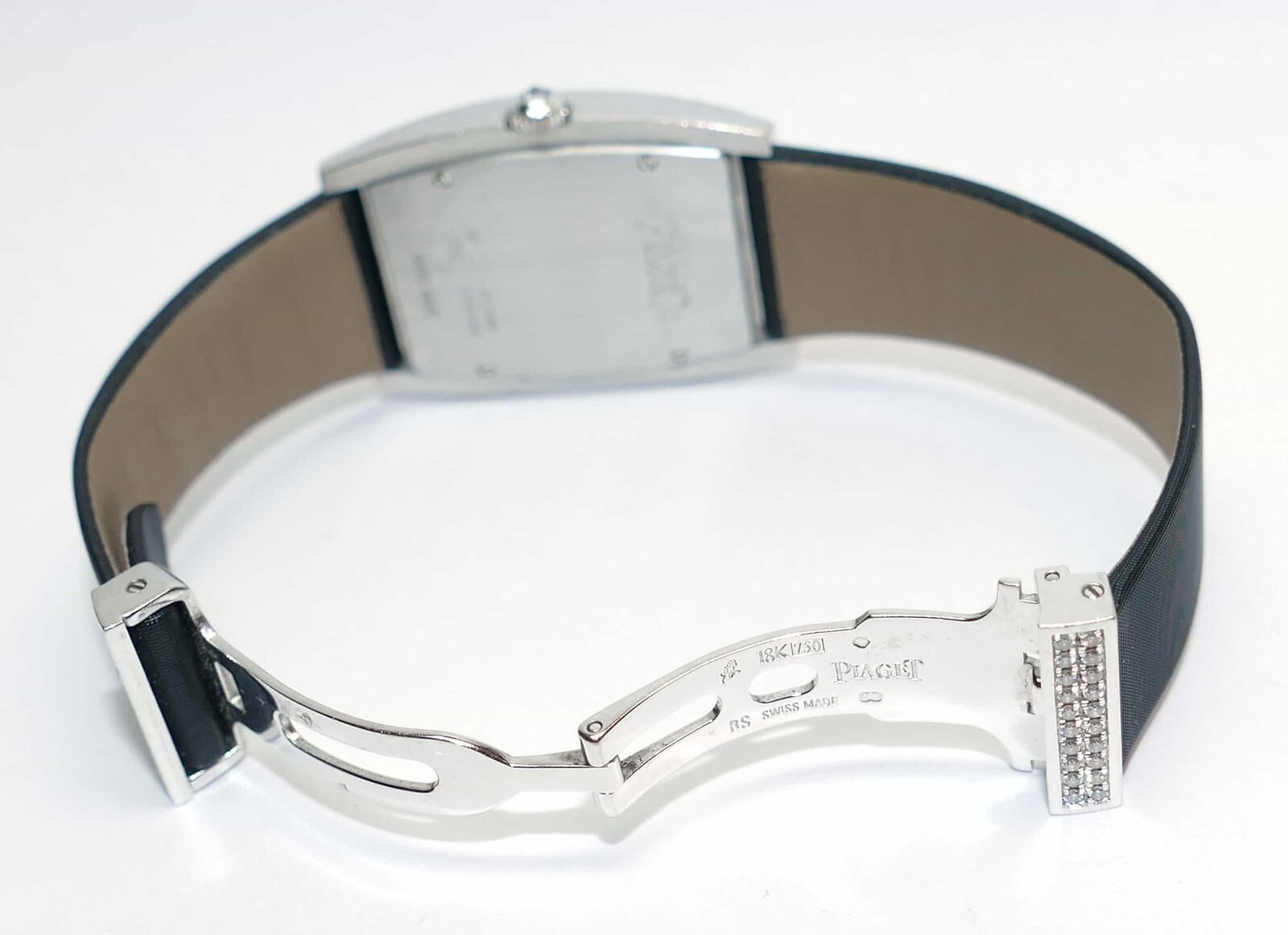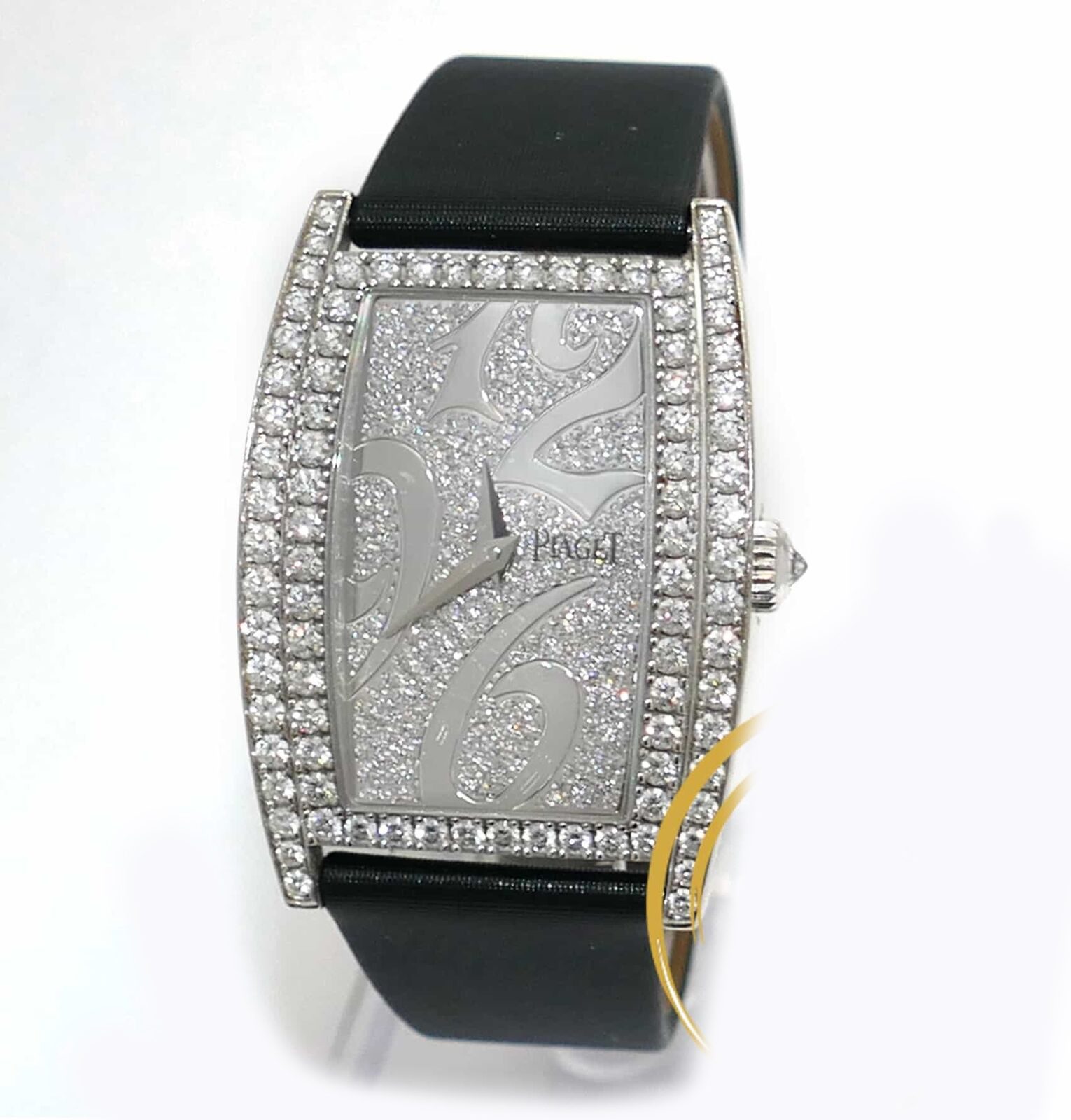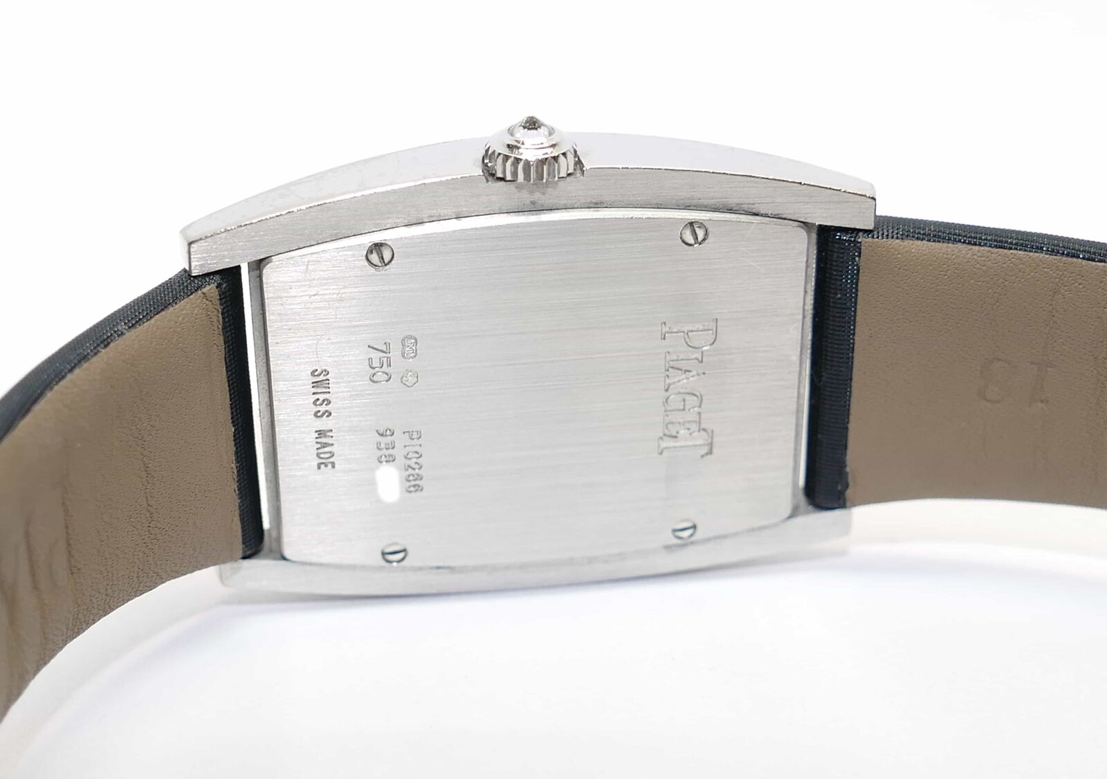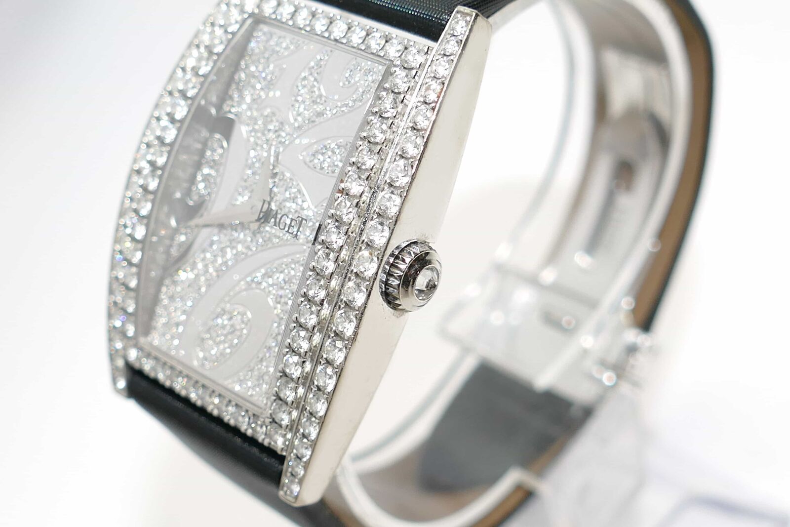 this beautiful piaget watch is 100% original. It features an 18k white gold case with diamonds set on the base and the dial. The crown also features one single diamond. This watch comes in a beautiful piaget presentation box.