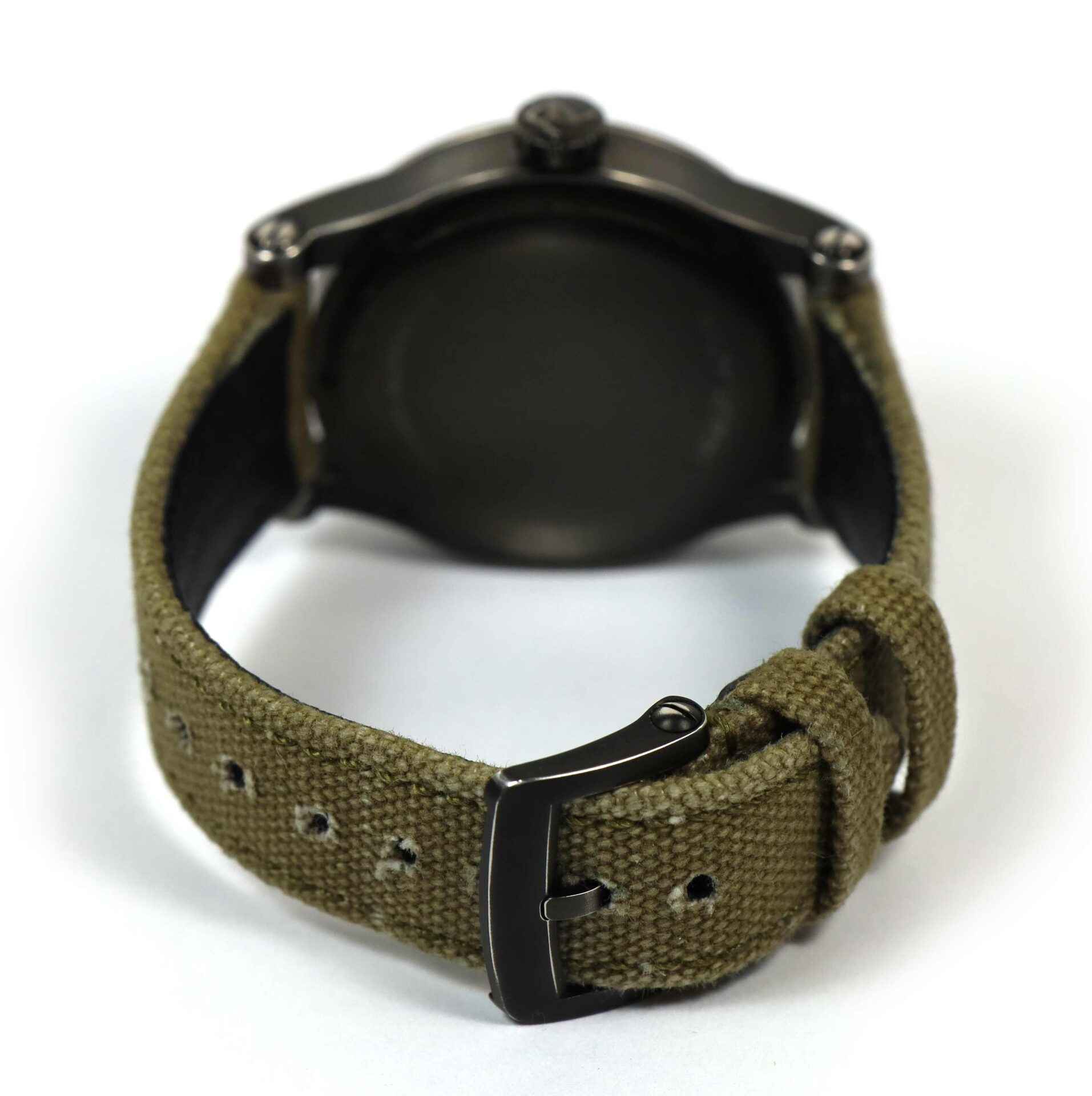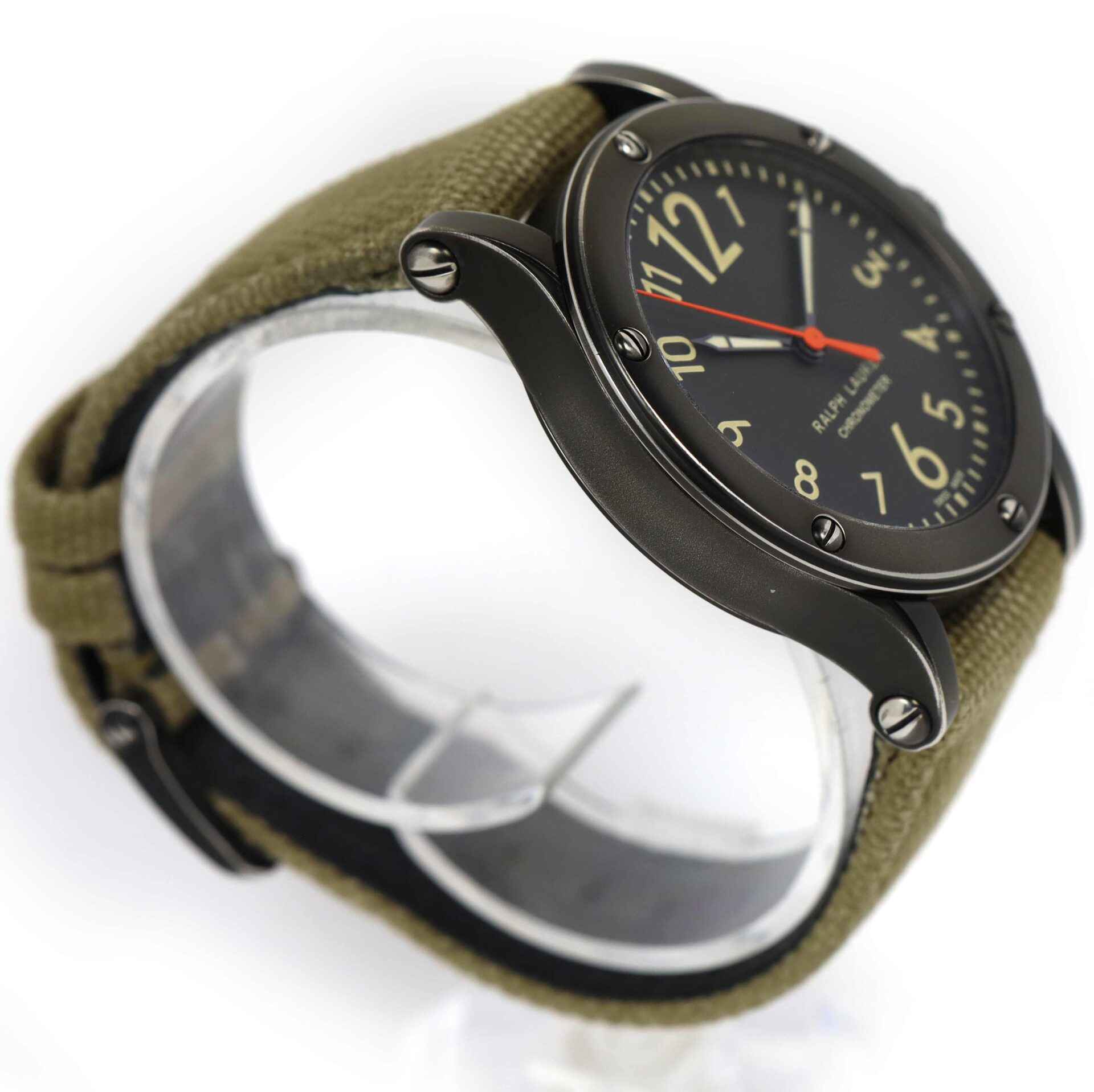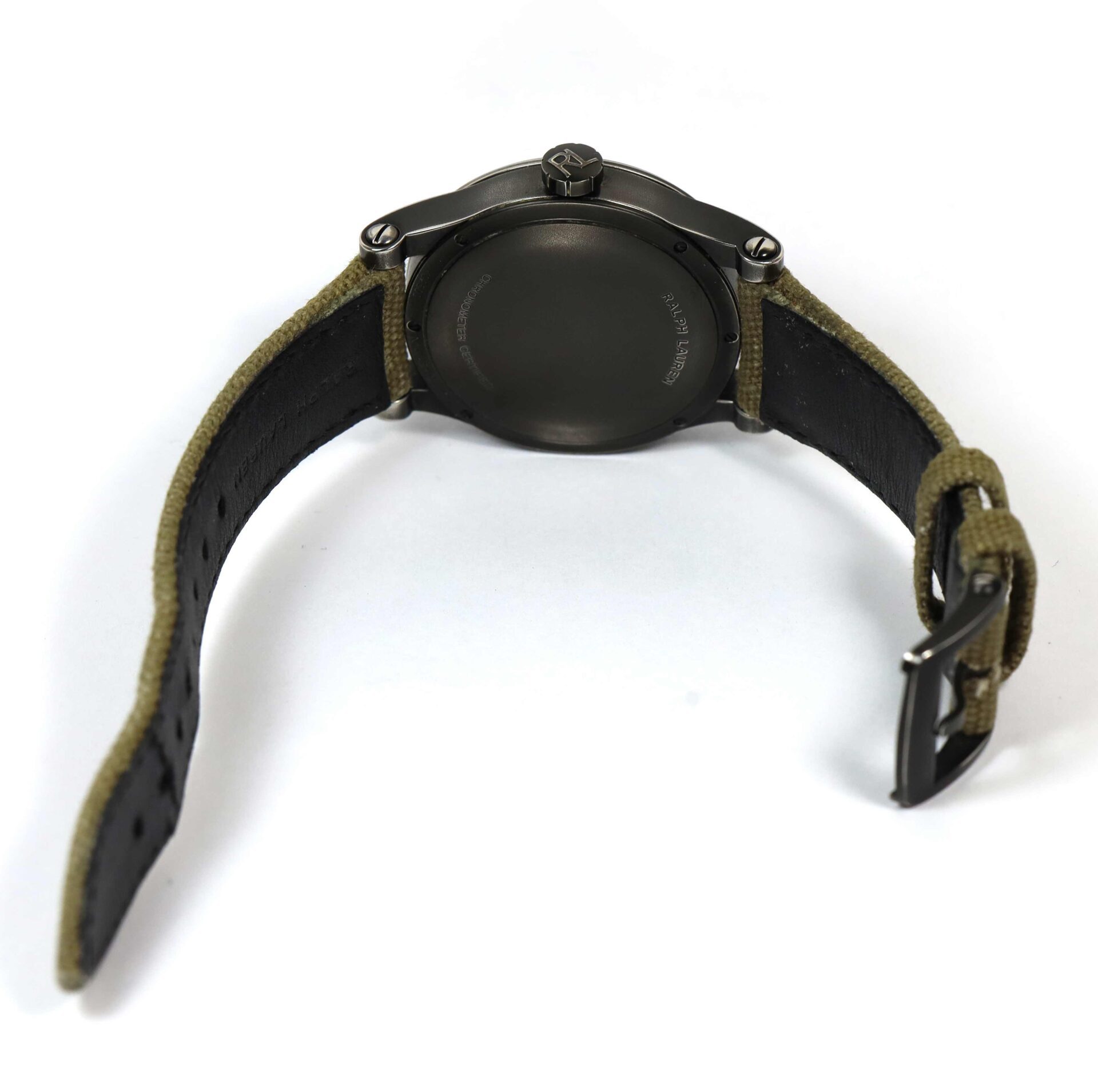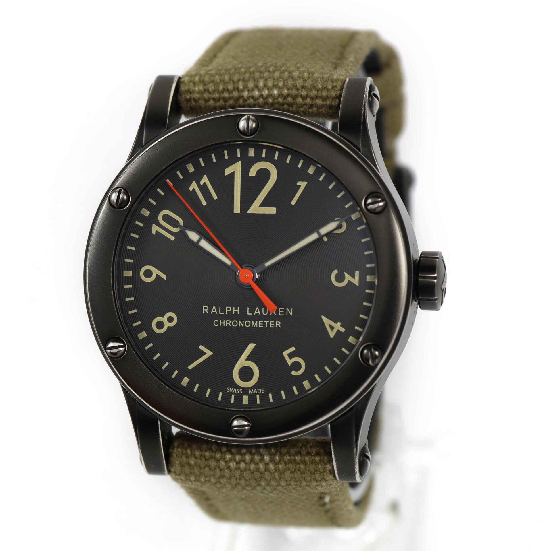Read Morethis ralph lauren safari watch is in excellent condition and comes as watch only as shown in the pictures attached. This watch features an aged steel case that surrounds a black arabic dial and comes on an army green strap. This watch is in stock and available to ship immediately!
