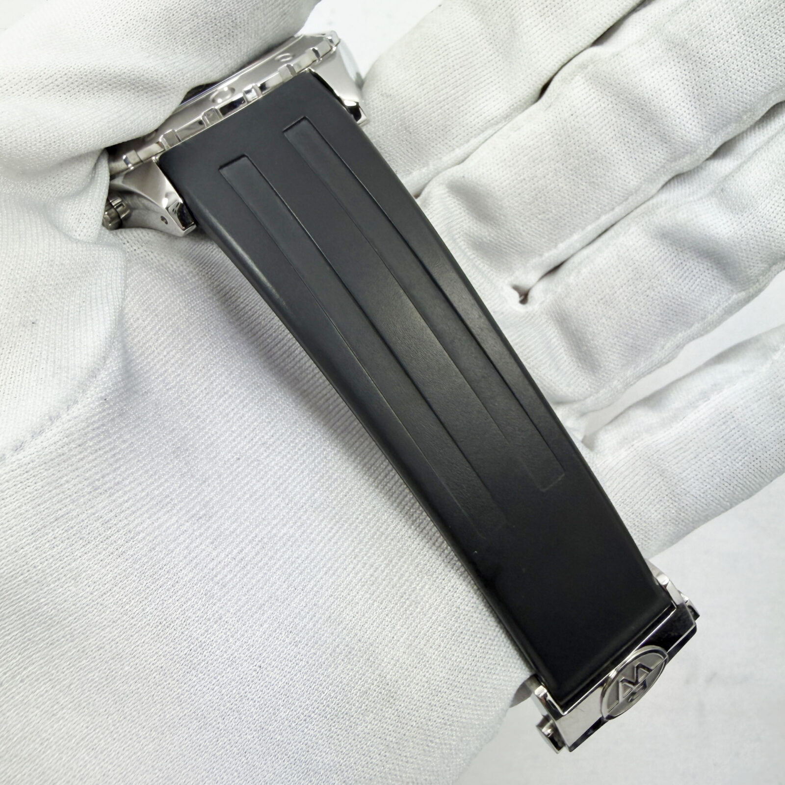 This Raymond Weil watch comes with its box, booklets, and service paper. The photos shown are of the exact watch being sold and accurately represent its condition. This watch is in stock and ready to ship immediately!