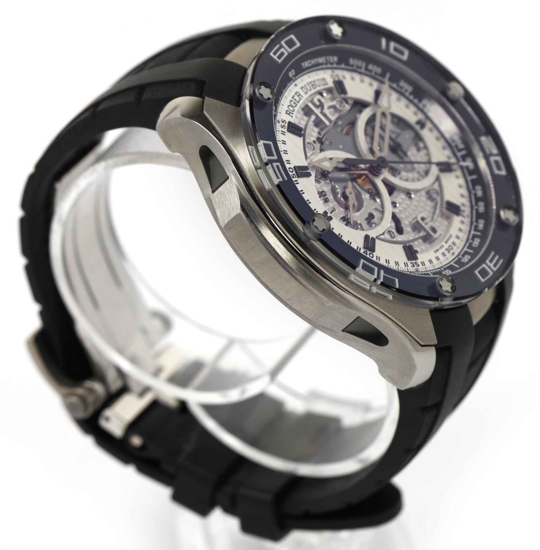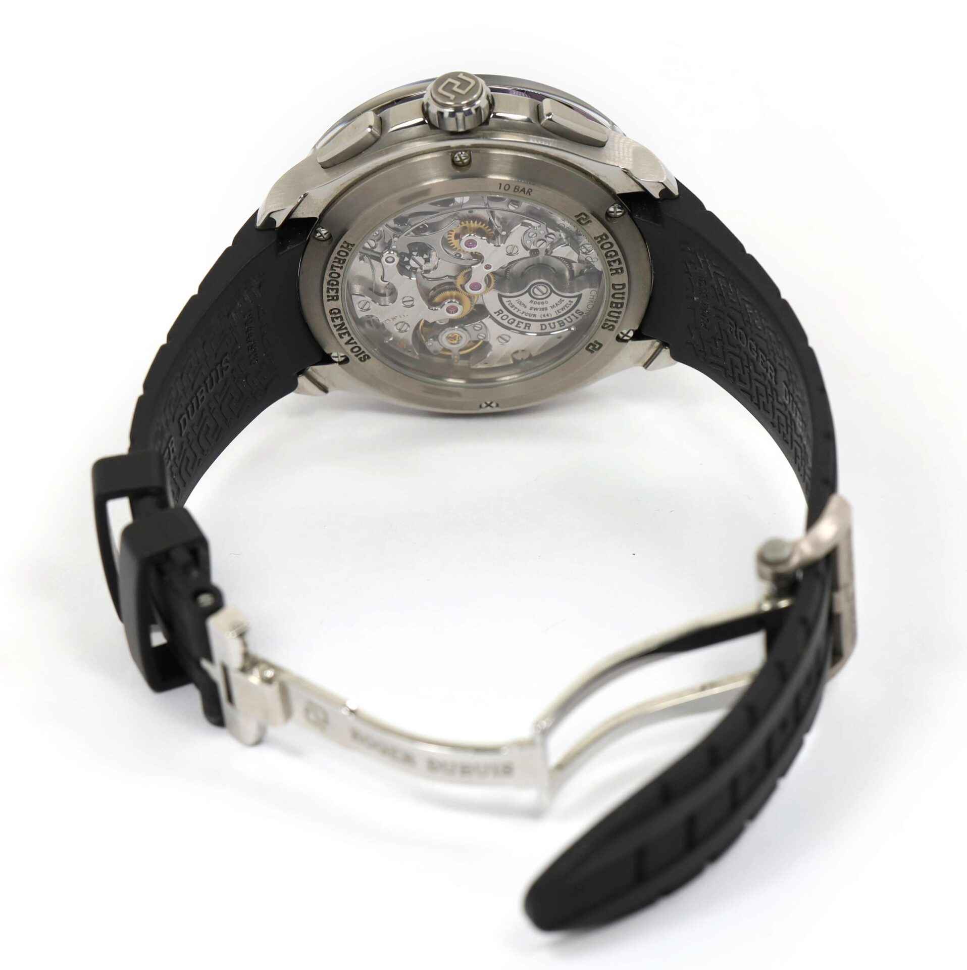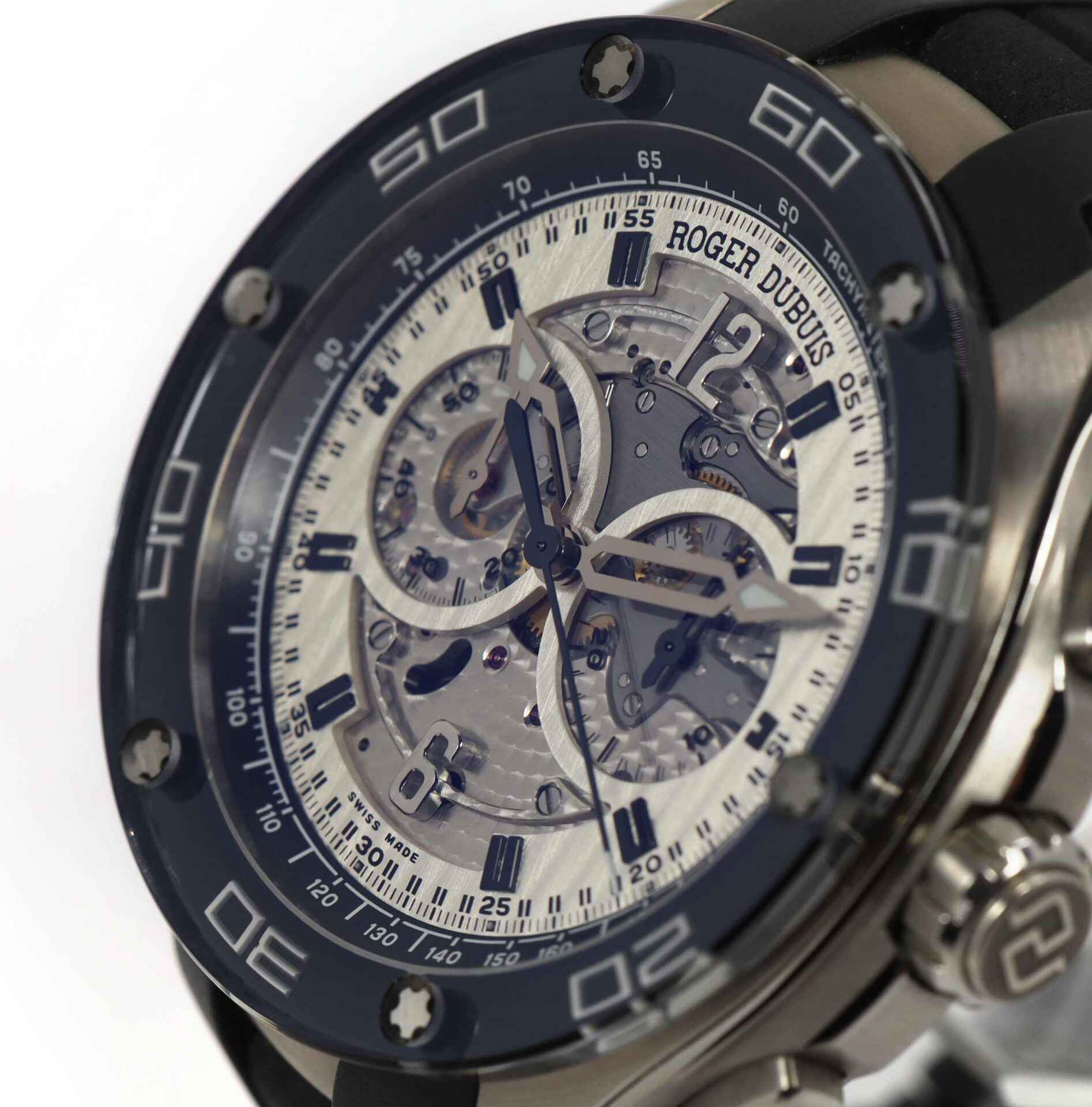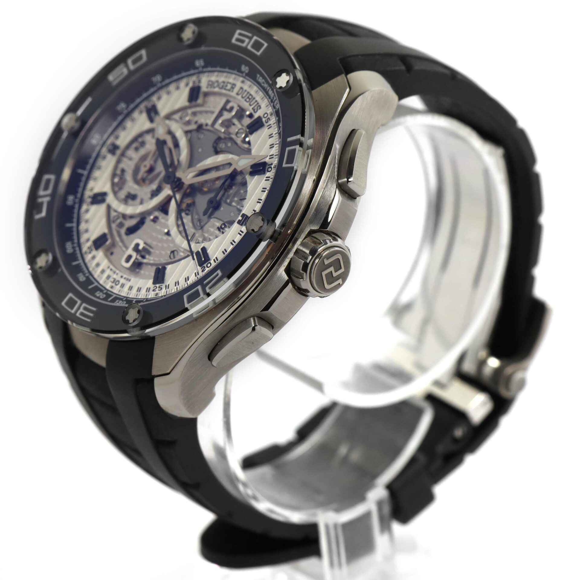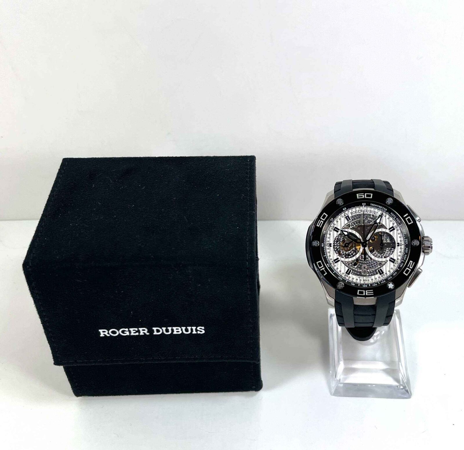Read Morethis roger dubuis is in excellent condition and comes with just the roger dubuis travel box as shown in the photos attached. Take notice to the crystal, it sits on top of the case as opposed to surrounded by a metal rim, it gives a very unique look in person and is a great conversation piece for watch enthusiasts! this watch is in stock and available to ship immediately!