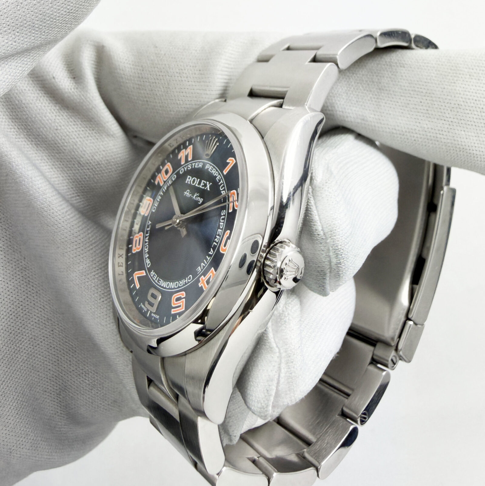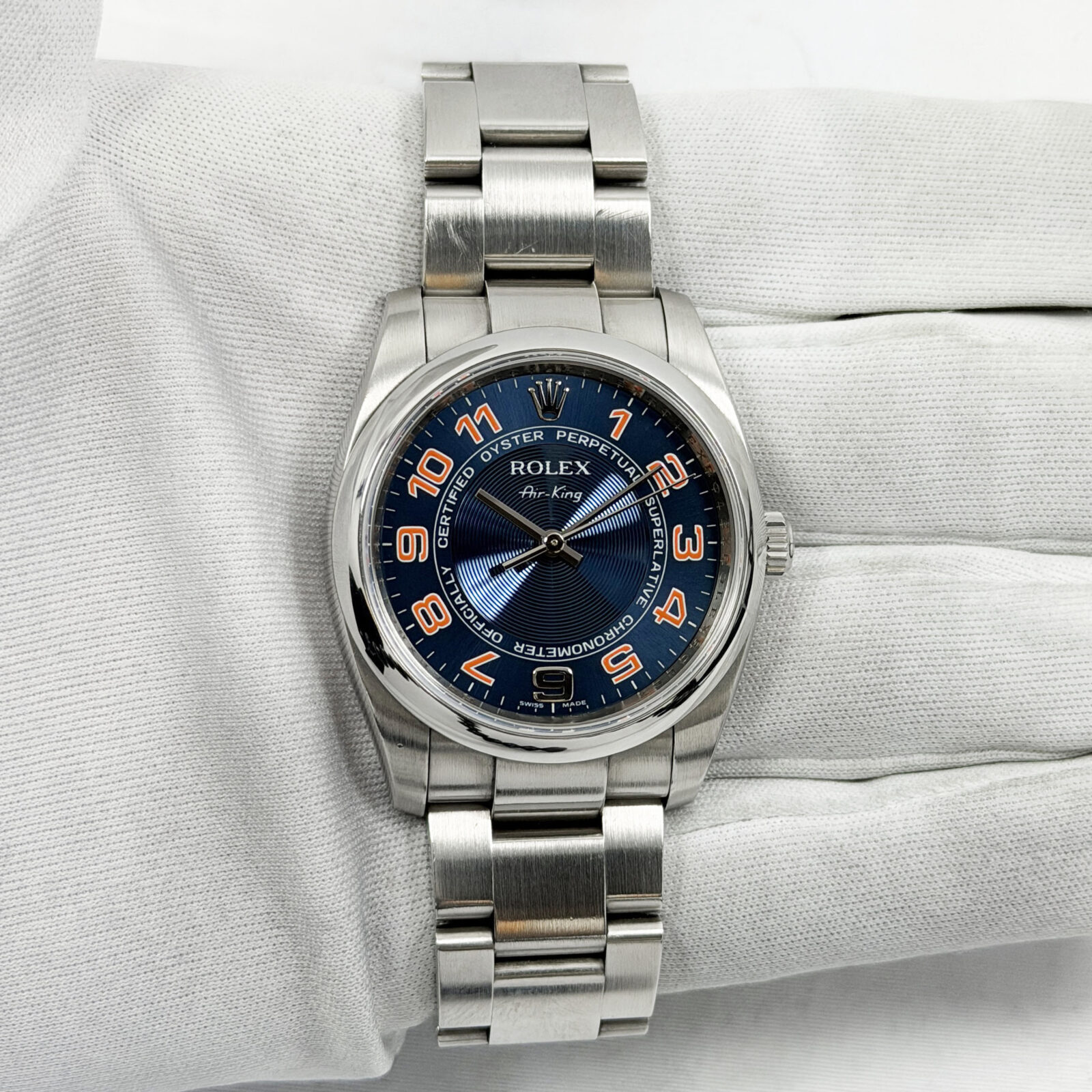 This Rolex Airking watch comes with watch only. The photos shown are of the exact watch being sold and accurately represent its condition. This watch is in stock and ready to ship immediately!