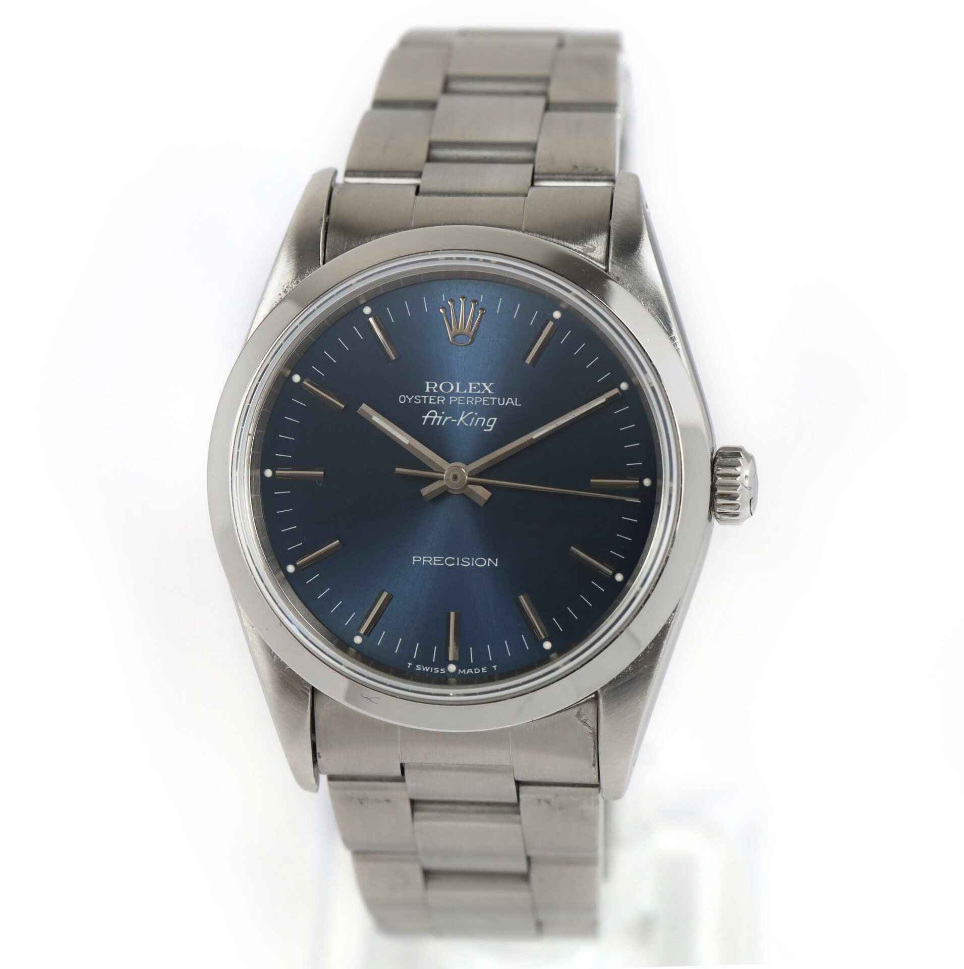 Read Morethis rolex air king 34mm is in excellent condition for the age of the watch and comes as watch only as shown in the photos attached. This watch has a serial number beginning with x which dates the year of production to be approximately 1991. This watch is in stock and available to ship immediately!