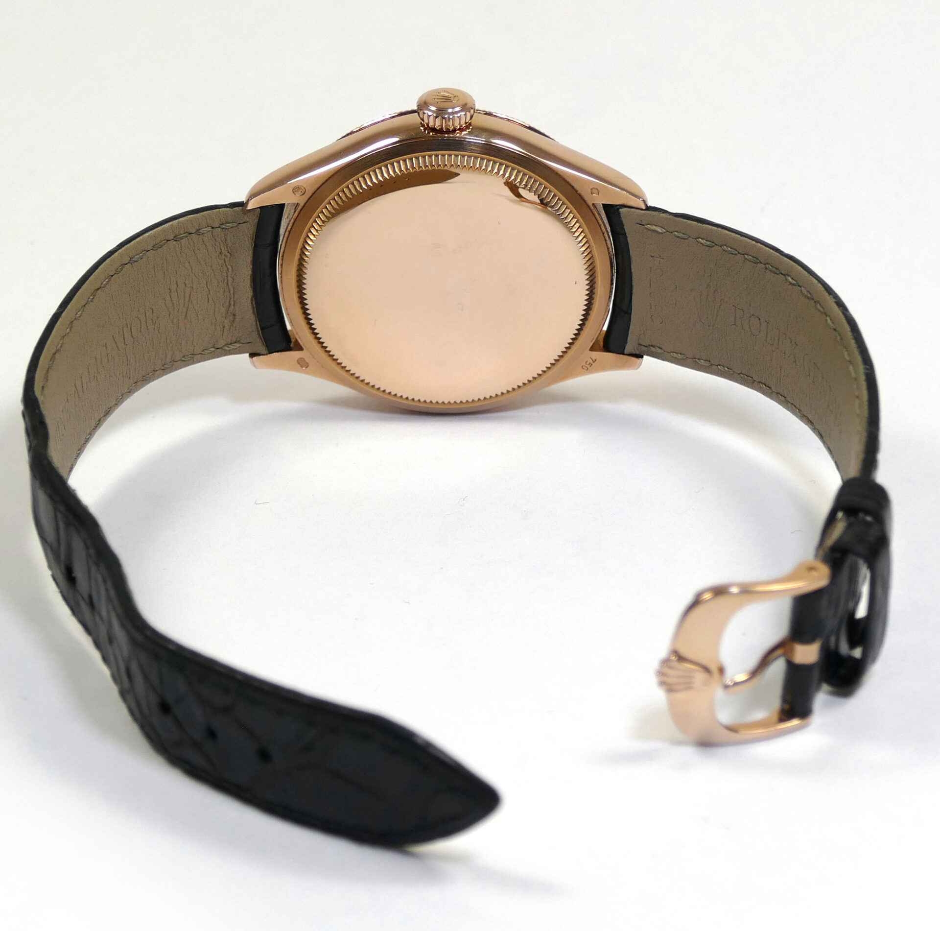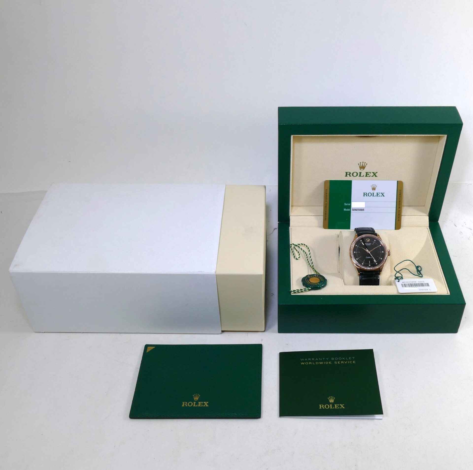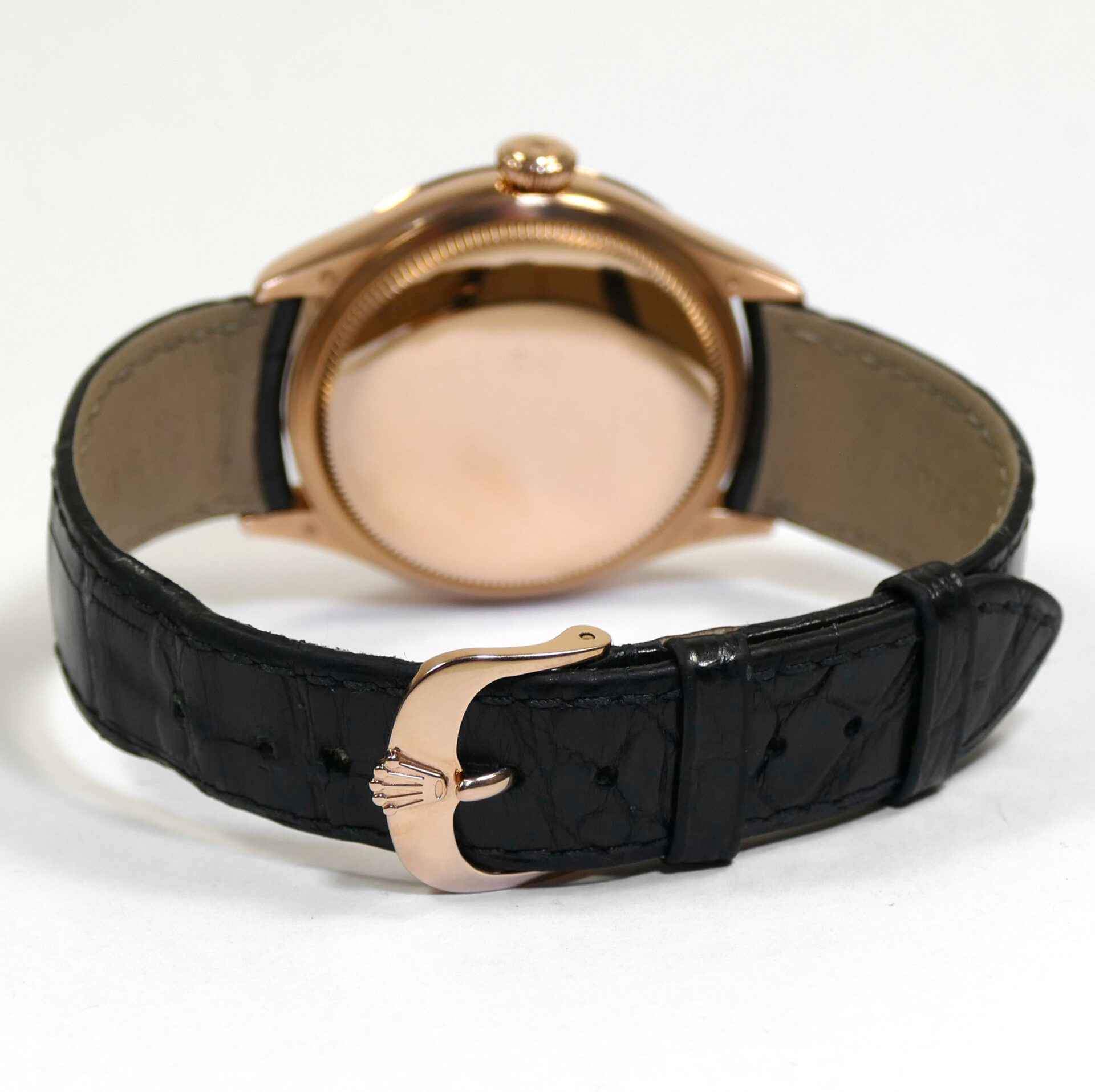 this rolex cellini is in excellent condition and comes with its complete set of box, papers, booklets, hang tags, and warranty card dated august 3rd, 2019. This cellini features a 18k everose gold case with factory set diamonds and also comes on a long strap. This watch is in stock and ready to ship immediately!