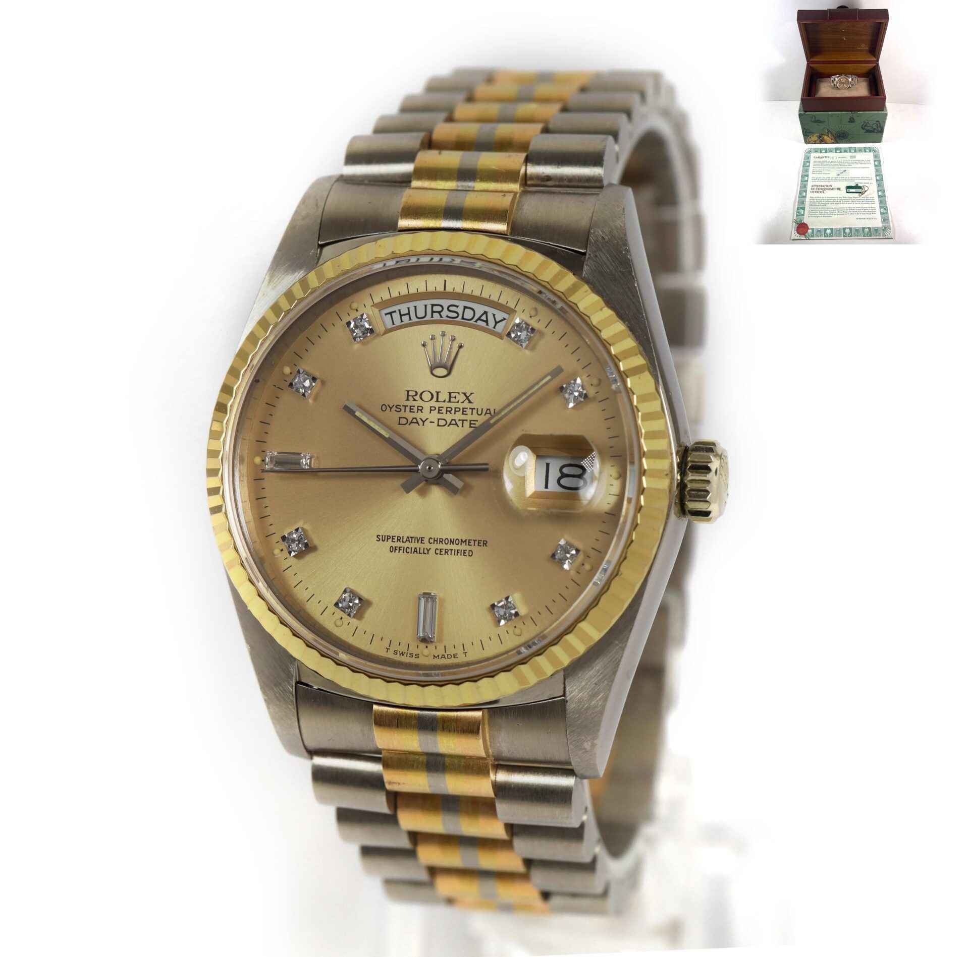 This watch is in excellent condition and is functioning properly. It comes with an original box and booklet, however no warranty certificate. The inner chapter ring is engraved (Rehaut), and it is a Z serial, indicatin...