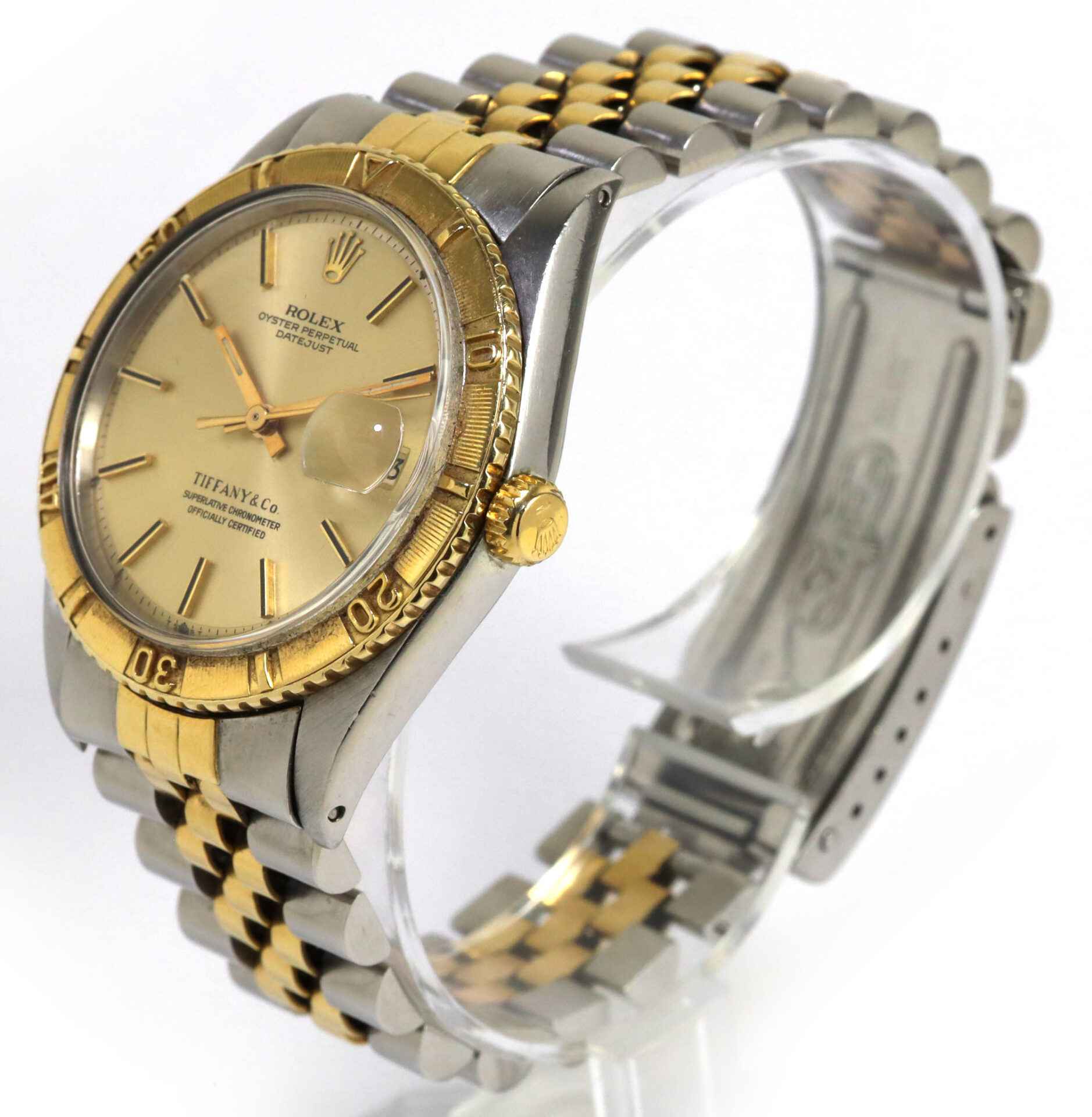 This rare Rolex is in excellent condition for the age of the watch. The serial number begins with "30" which dates the year of production to be approximately 1972/1973. This Datejust features the Tiffany & Co. stamp o...