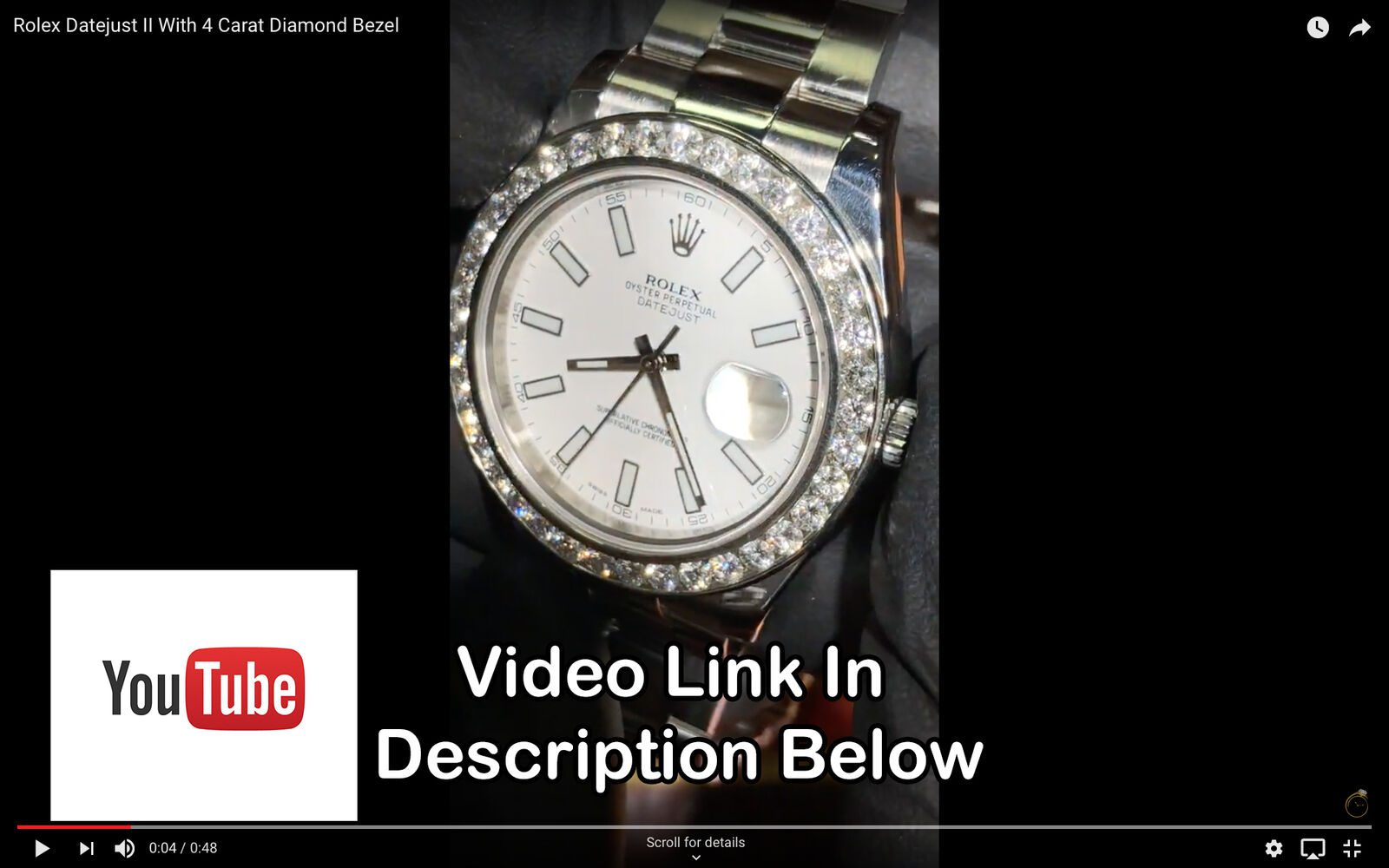 Product Description: This Rolex is in excellent condition and comes with a 12-Month Warranty. It features a Custom 4.5 Carat Diamond Bezel with G Color and SI Clarity Diamonds. Additional Information: Condition:Read More