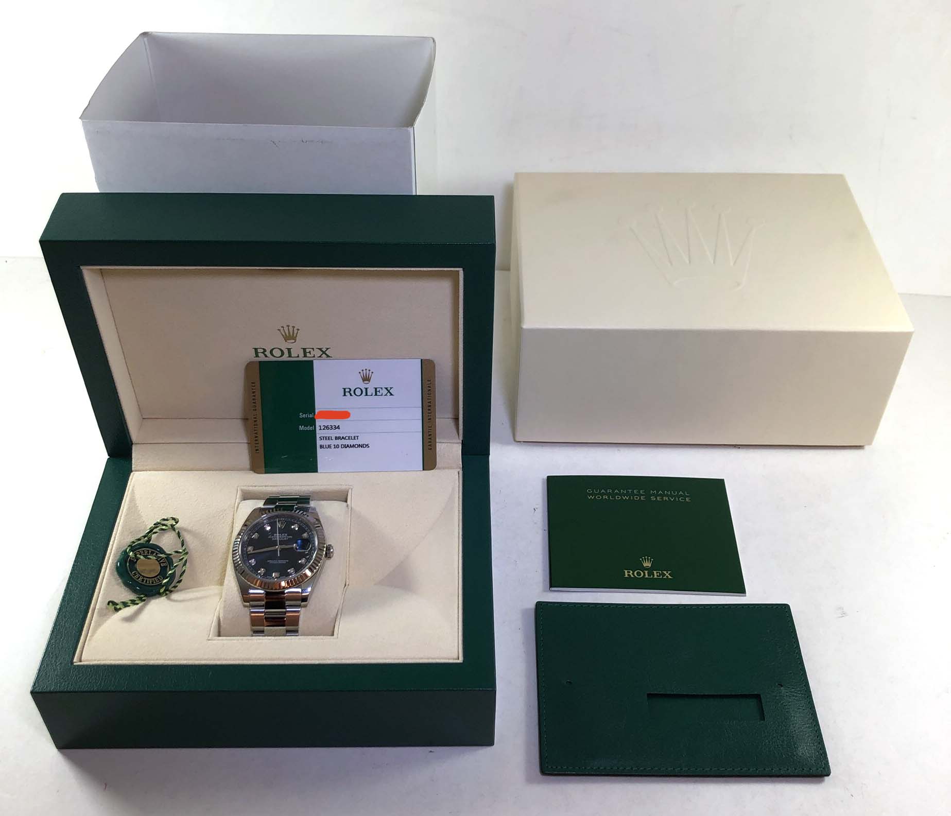 This watch is in great condition and comes with its complete set of box and papers, the warranty card is dated September 12th 2017. The dial is a factory Blue Diamond Dial as indicated on the card. This watch com...